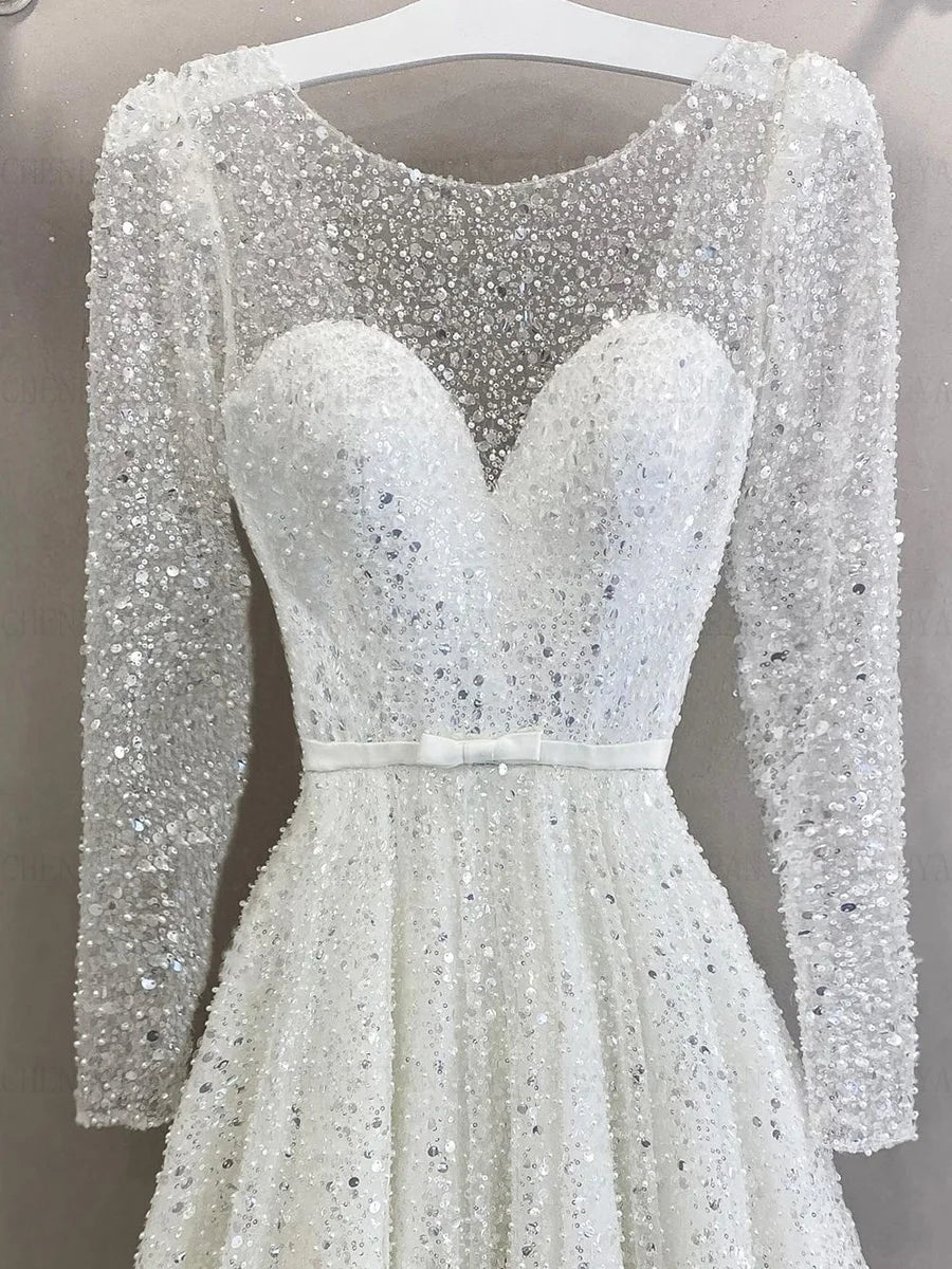 Runhufu Shinny Wedding Dresses Full Sleeves A-line Long Bride Gowns Illusion Beading Sexy Dress For Women 2024 Robe De Mari¨¦e