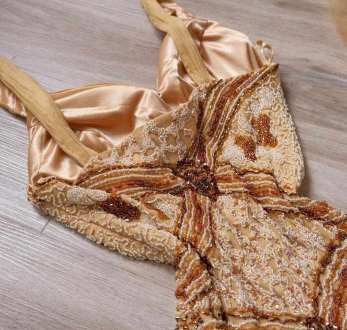 It is beautiful, I loved it... it is so beautiful the details of the chest part, I asked for it in white color and it is not very different from ivory.