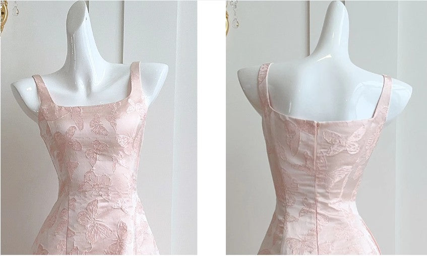 Pink A-Line Vintage Butterfly Embroidered Satin Prom Dress Birthday HZ1108