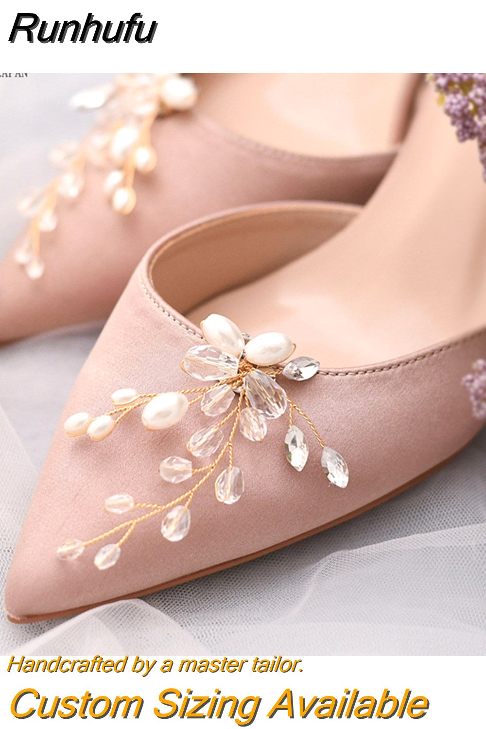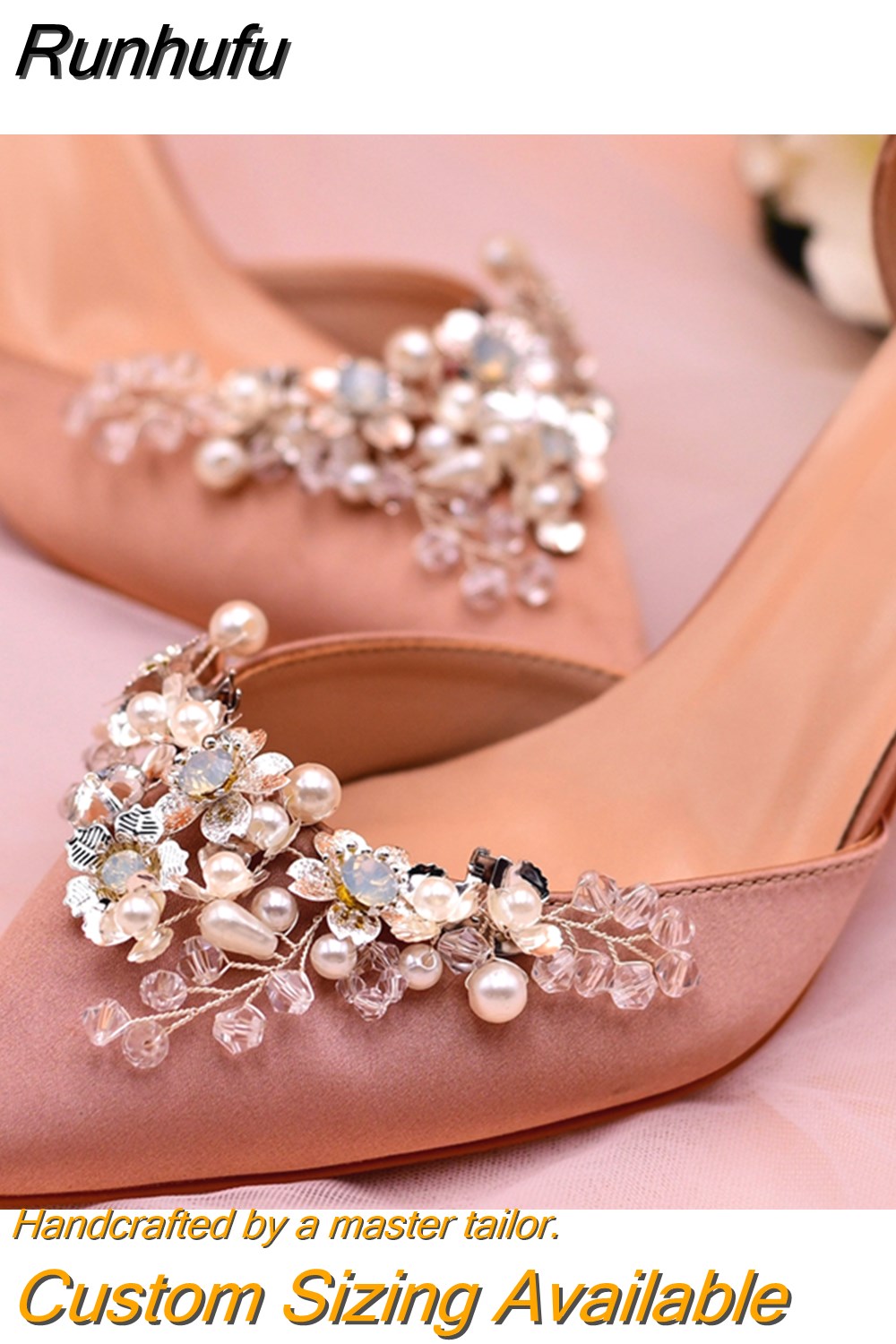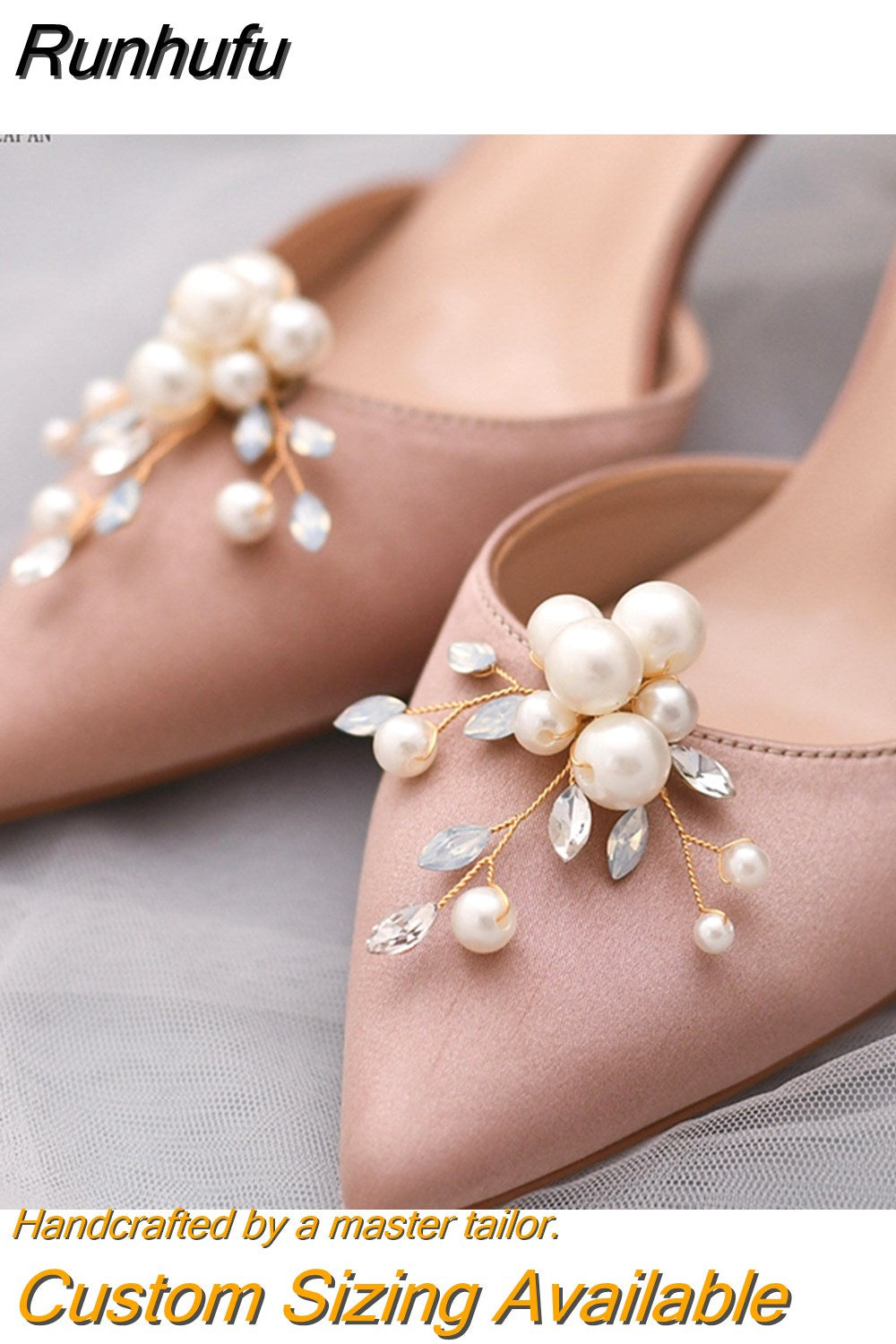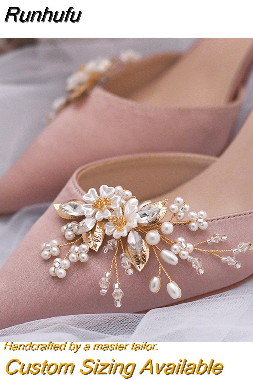 Runhufu 2pcs/lot Removable Bride High Heel Clip Rhinestone Wedding Shoes Buckle Women Decoration Pearls Floral Bead Shoe Clips