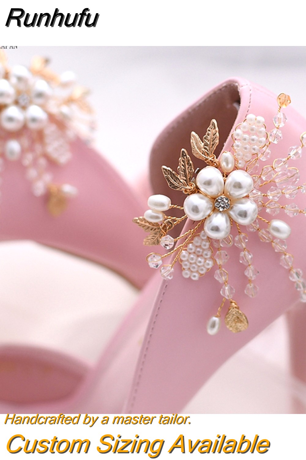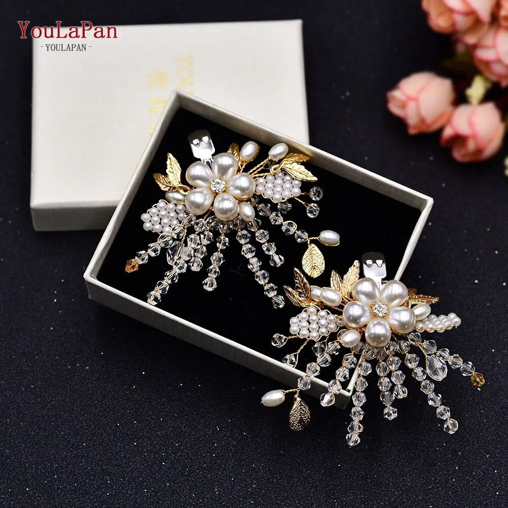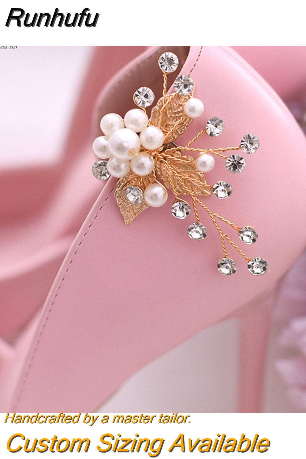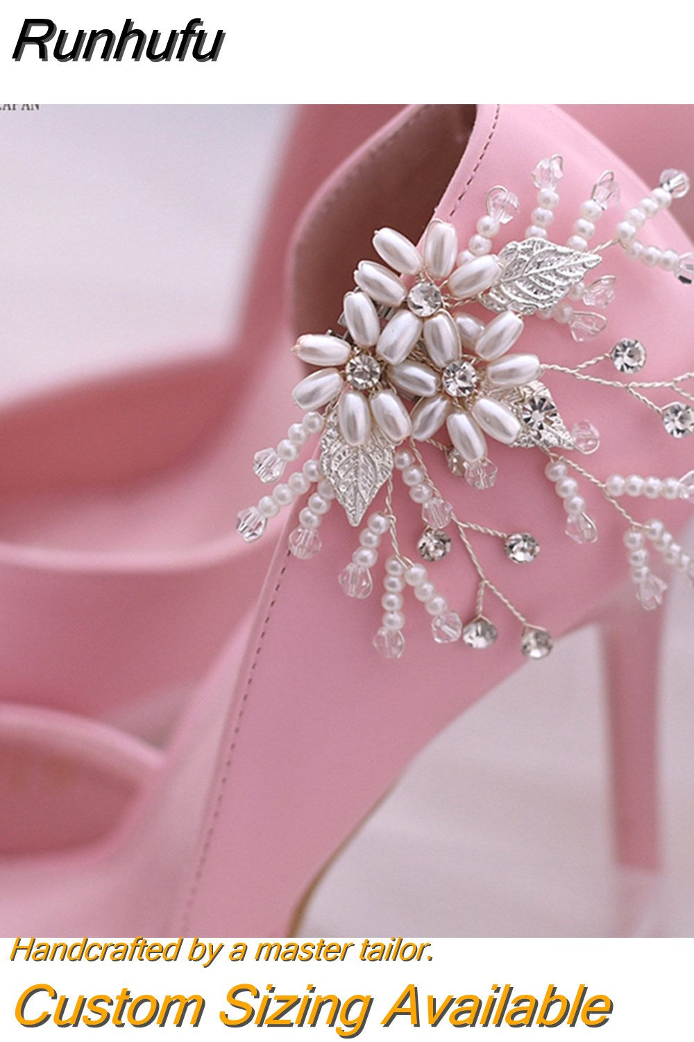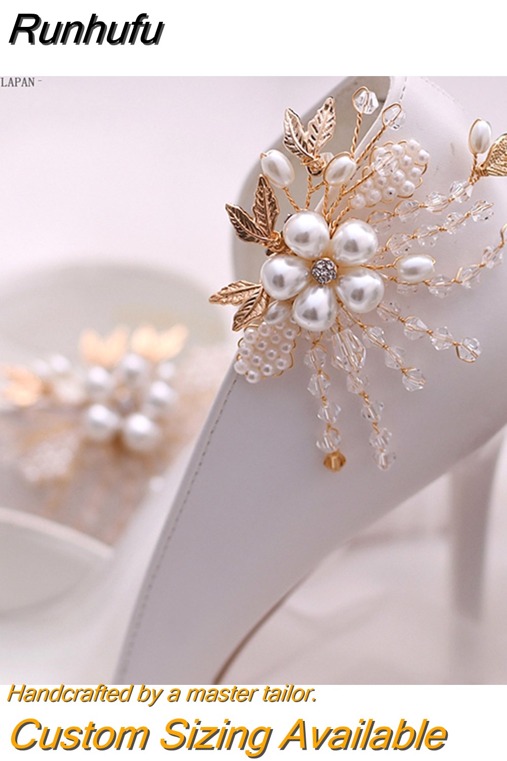 Runhufu 2pcs/lot Removable Bride High Heel Clip Rhinestone Wedding Shoes Buckle Women Decoration Pearls Floral Bead Shoe Clips