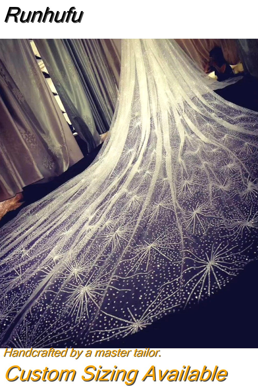Runhufu Accessories 2023 New Arrival The Champagne Chapel Veil Bling Bling Bridal Veils Beading Wedding Veil