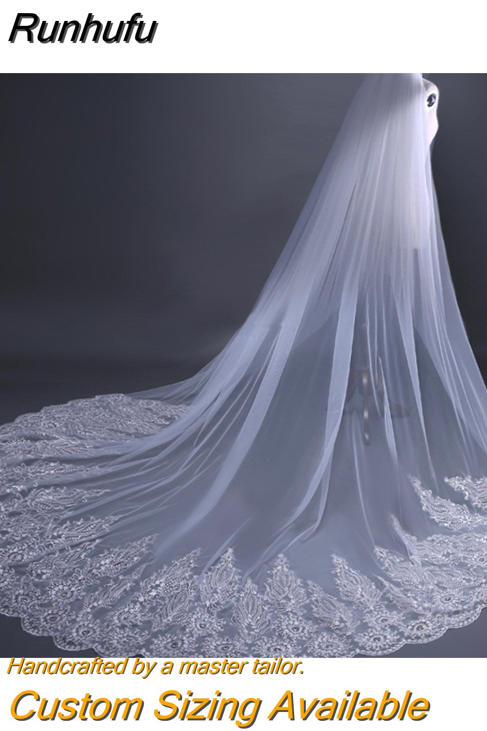 Runhufu Arrival Cathedral Lace Wedding Veil 2023 Luxury Long Bridal Veils Wedding Accessories