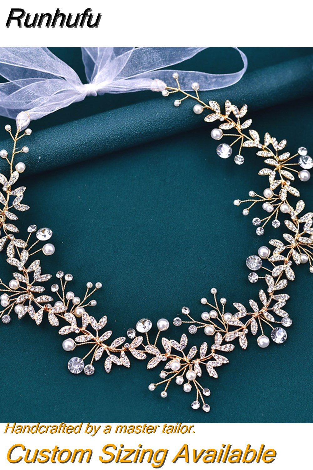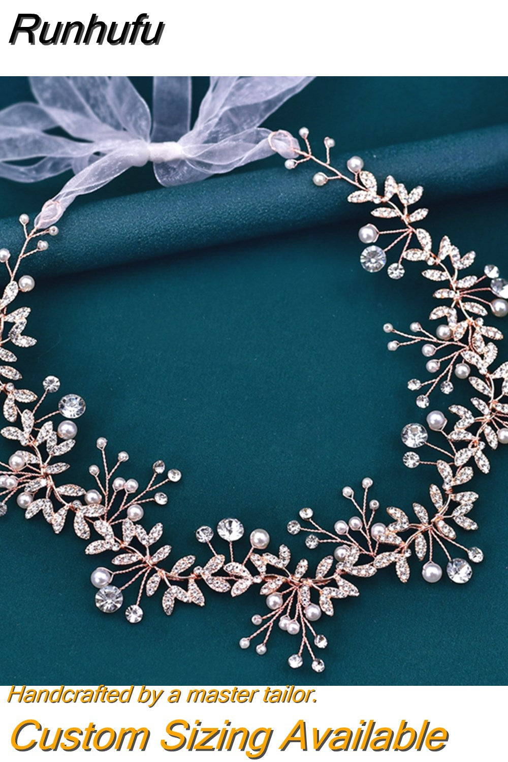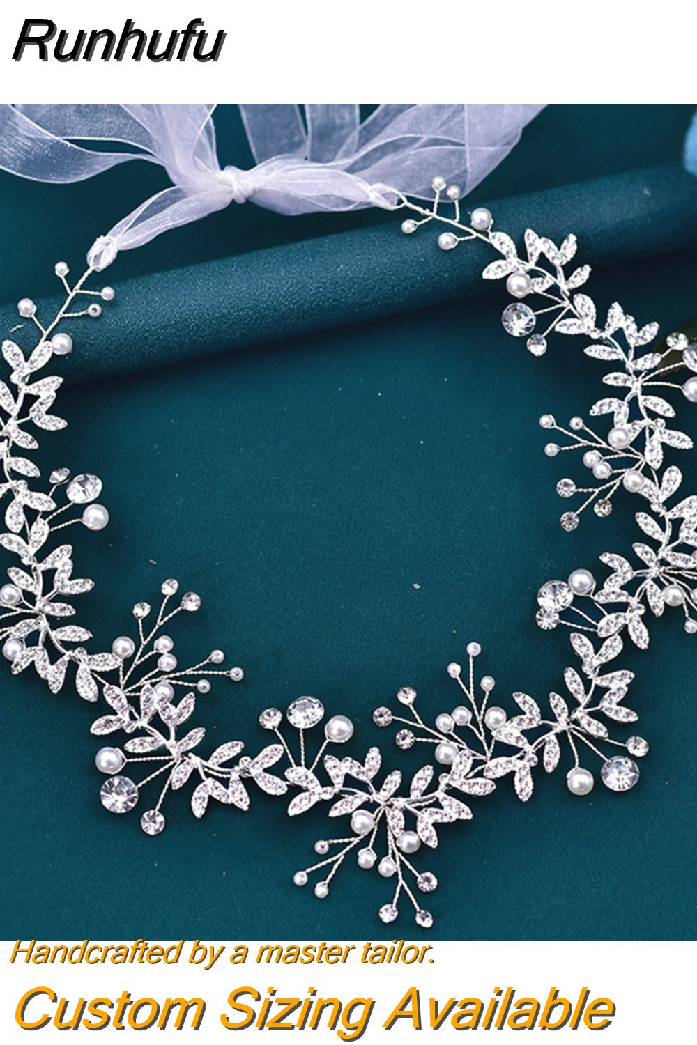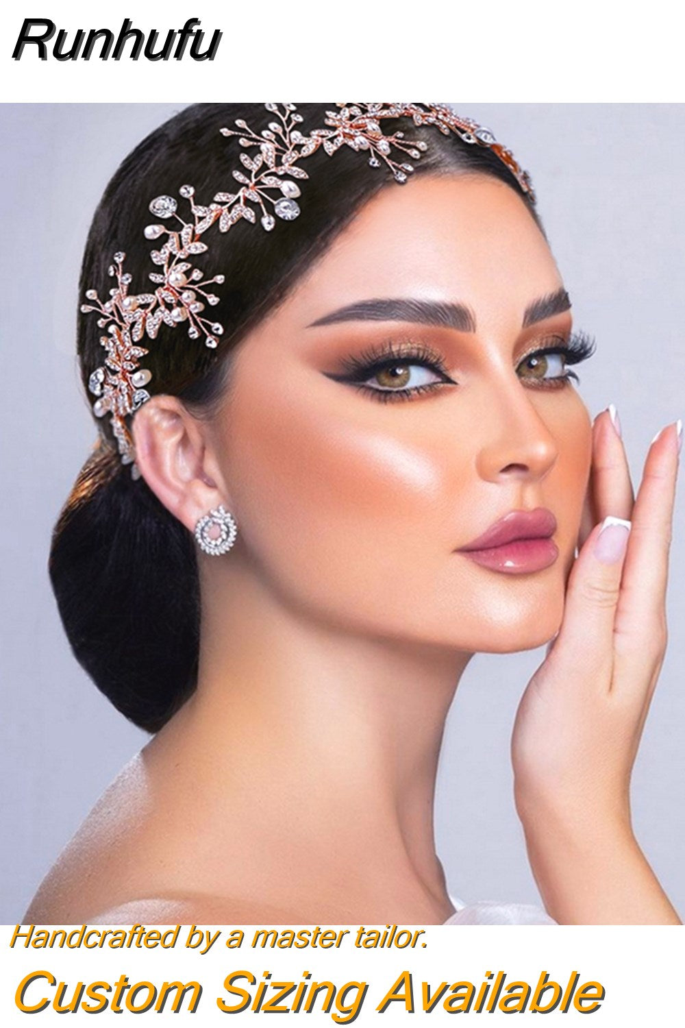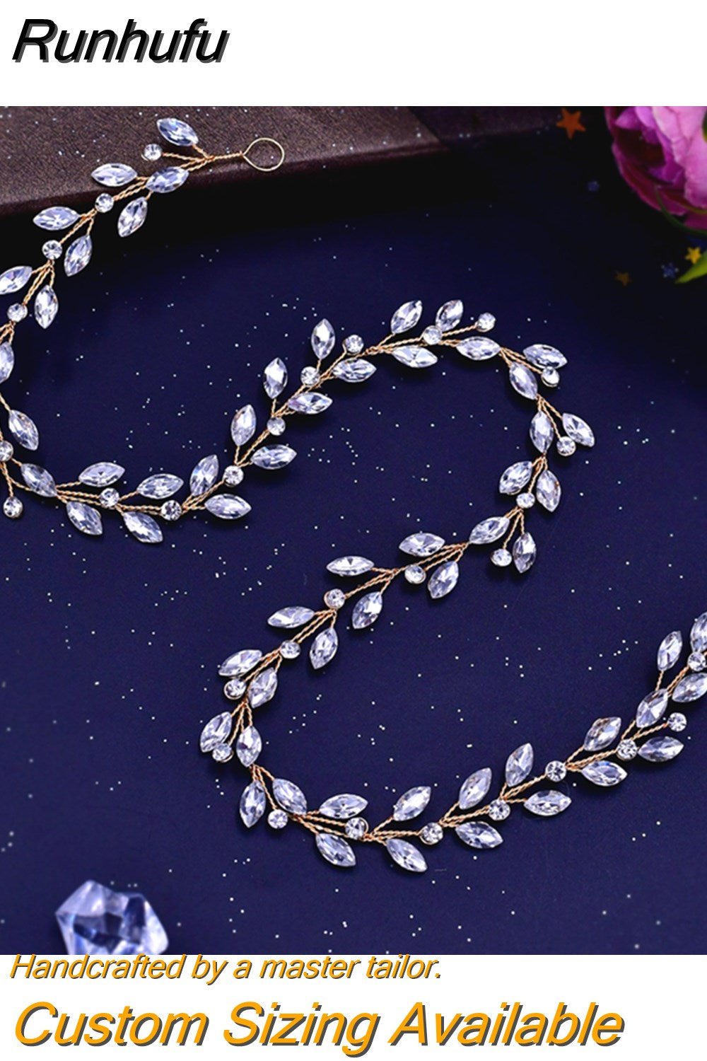 Runhufu Crystal Wedding Headpiece Shiny Rhinestone Bridal Headband Bridesmaid Alloy Leaf Tiara Woman Wedding Hair Accessories