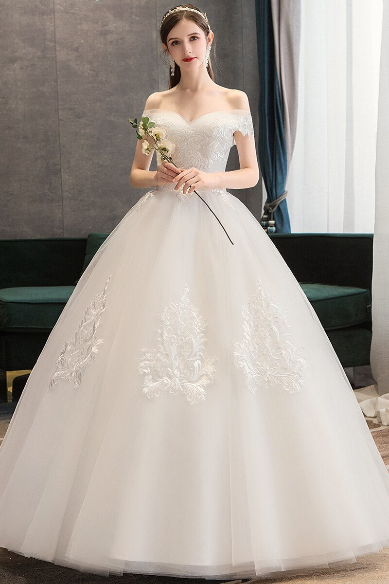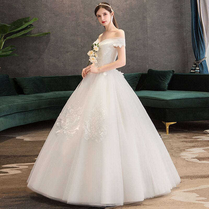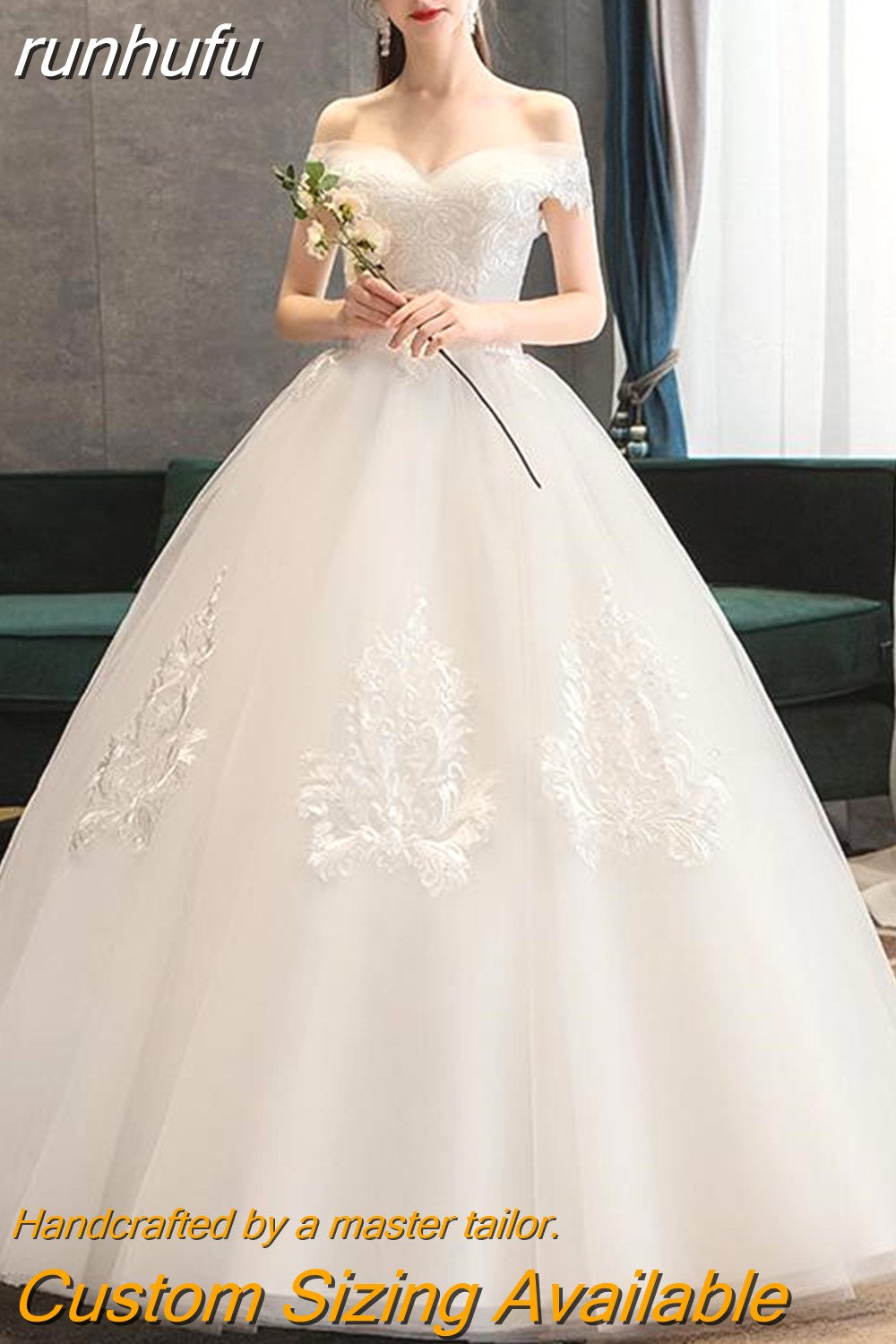 runhufu Dress 2023 New The Elegant Boat Neck Lace Up Ball Gown Off The Shoulder Sexy Vestido De Noiva Wedding Gown