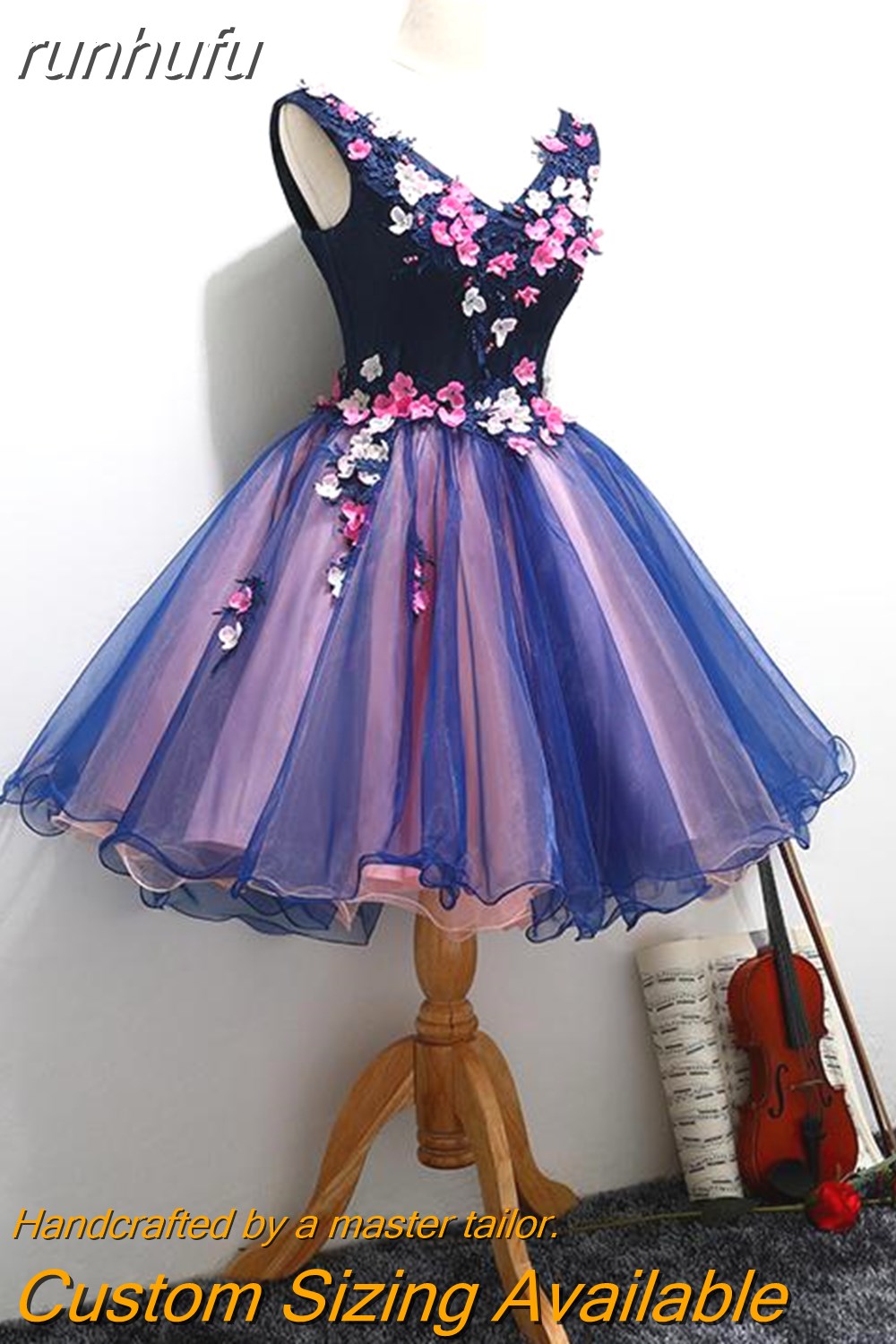 runhufu Dress 2023 V-neck Classic Flower Appliques Noble Mini Ball Gown Sweet Quinceanera Dresses Party Prom Formal Dress
