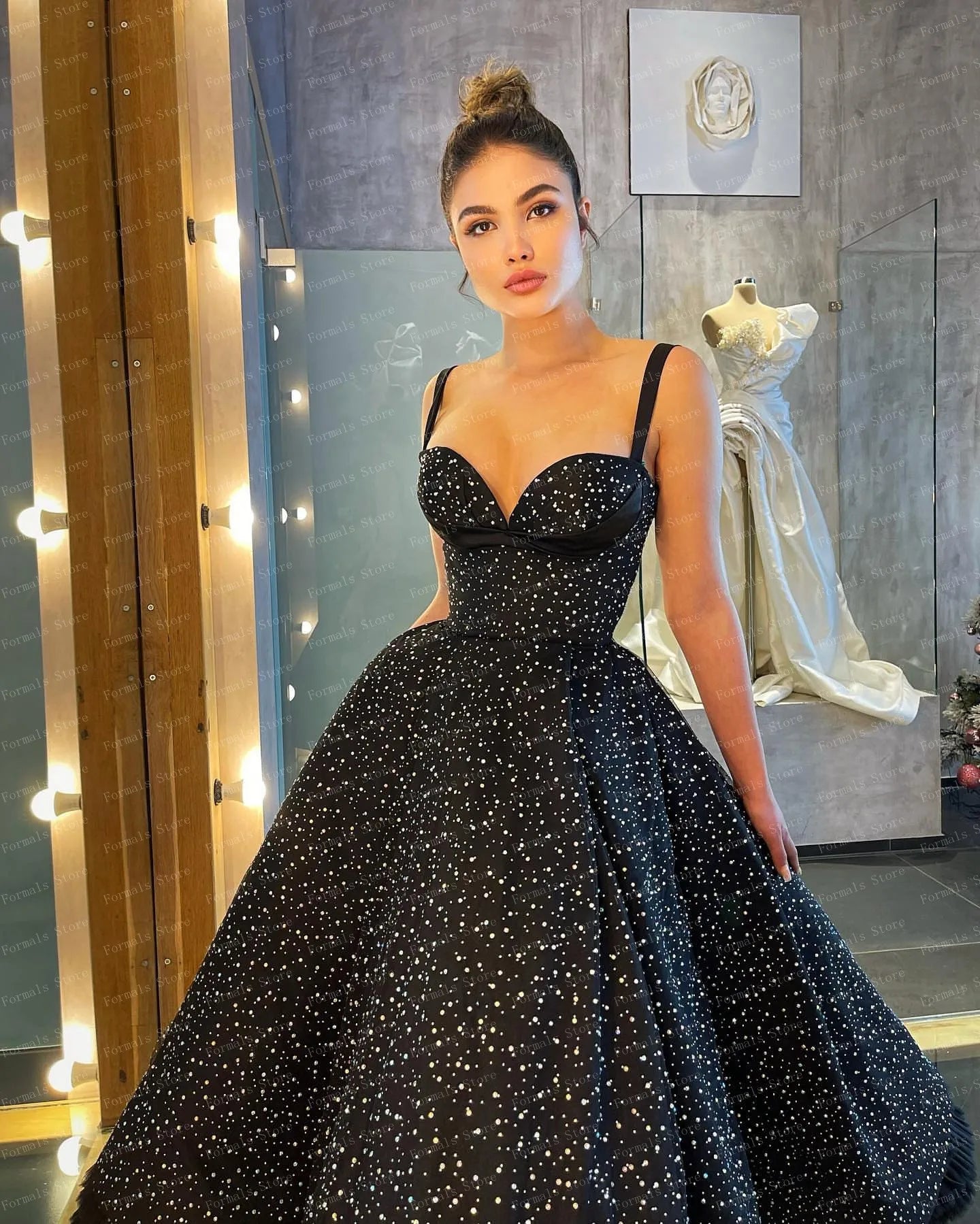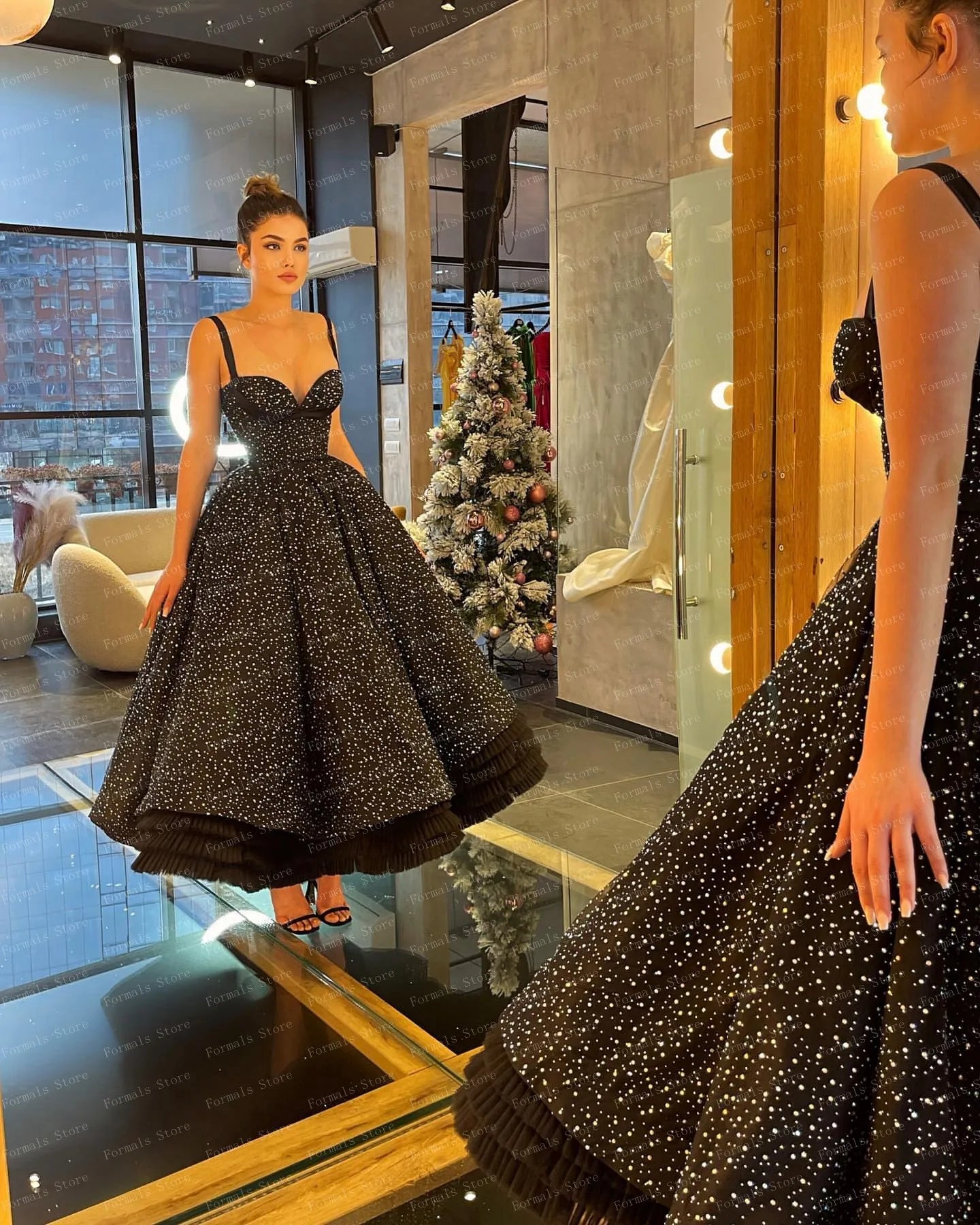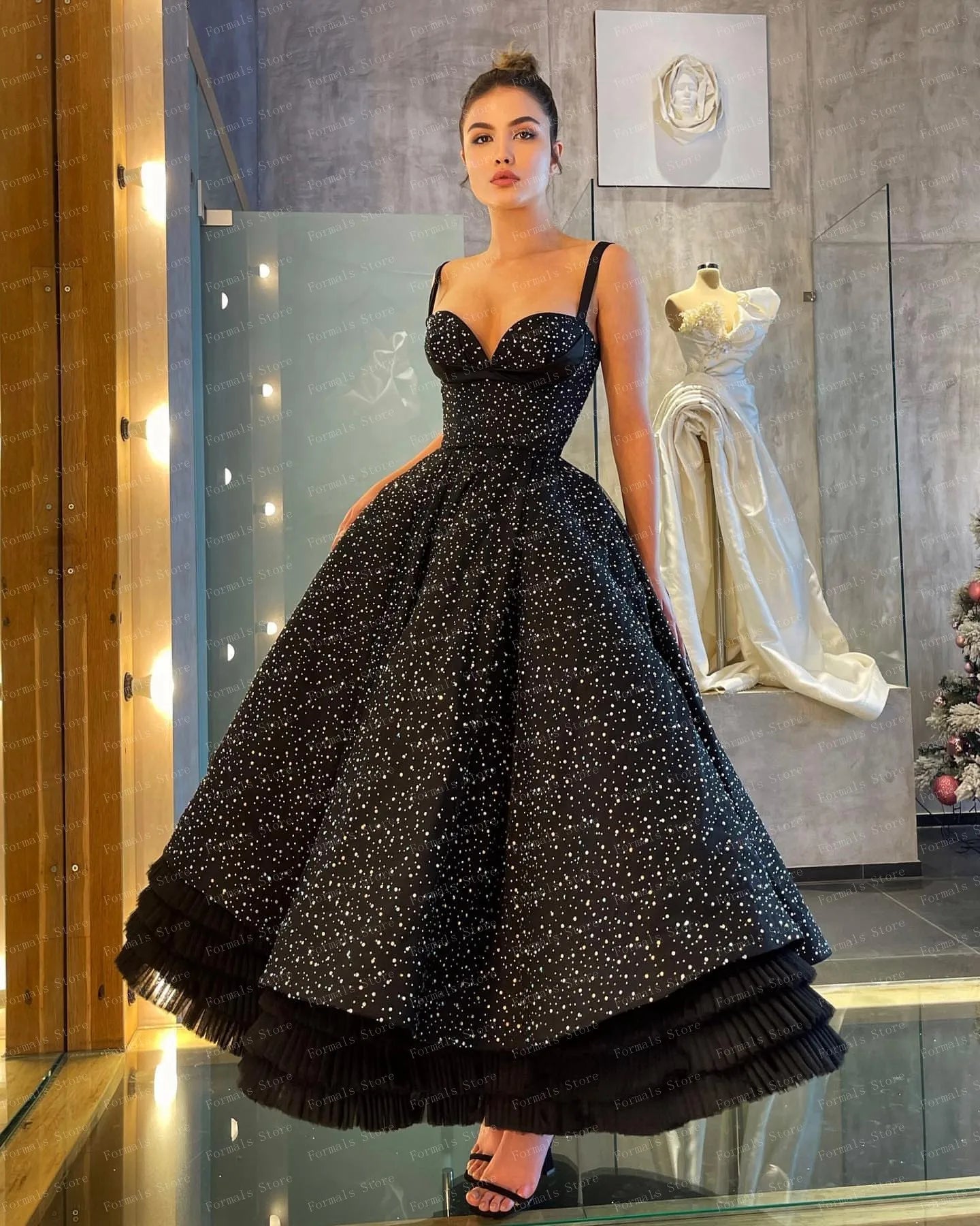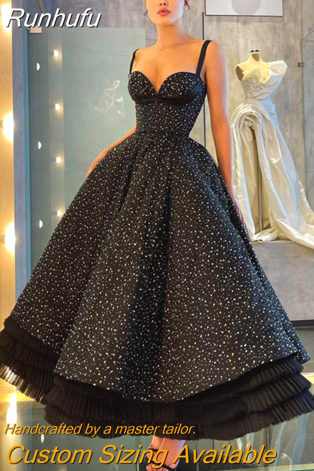 Runhufu Dresses For Women Black Dress Ankle Length Evening Dresses Ruffles Prom Dresses A-line Women's Dress Celebrity Dresses