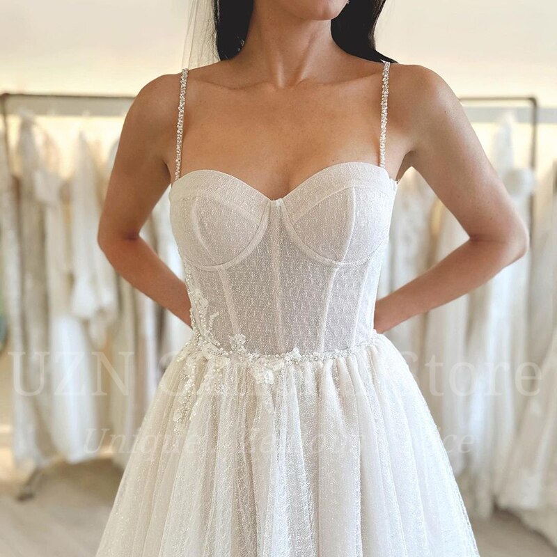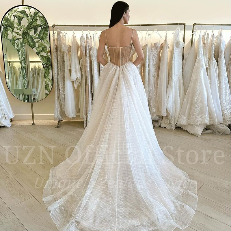 Runhufu Elegant A-Line Wedding Dresses Spaghetti Straps Appliques Split Bridal Gowns Boho Beach Evening Wedding Gowns Custom Size