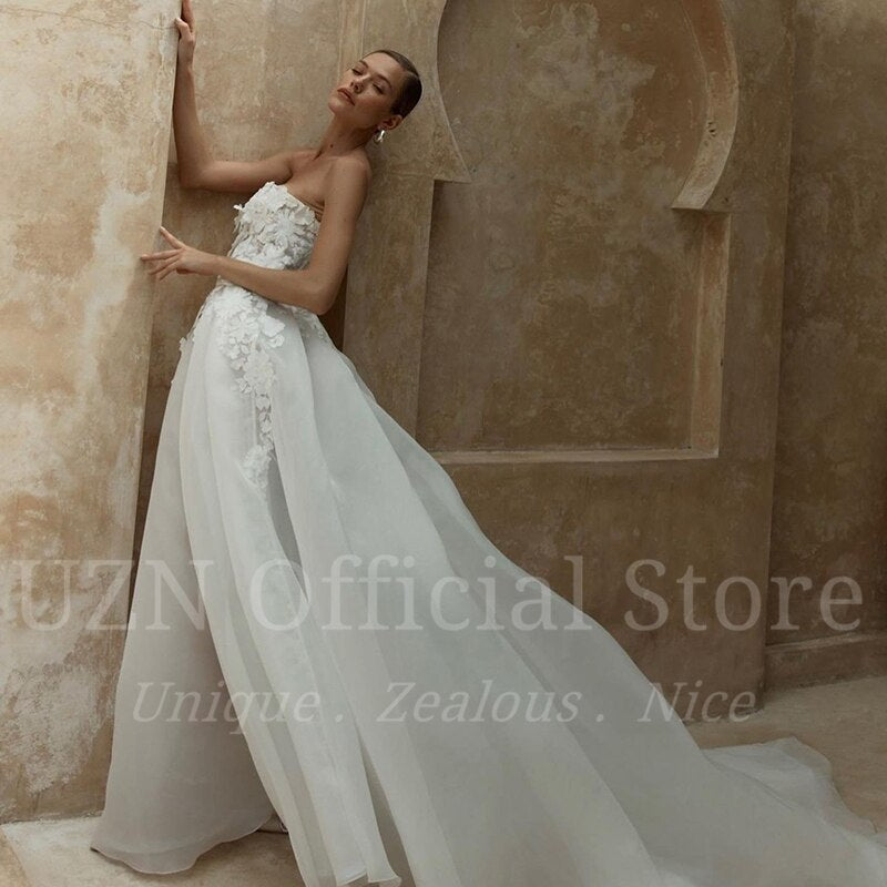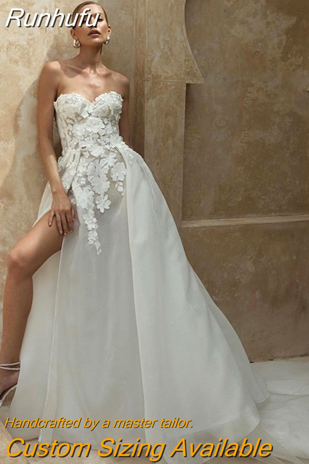 Runhufu Elegant A-Line Wedding Dresses White Sweetheart Appliques Bridal Gowns Boho Beach Side Slit Evening Wedding Gown Custom Size