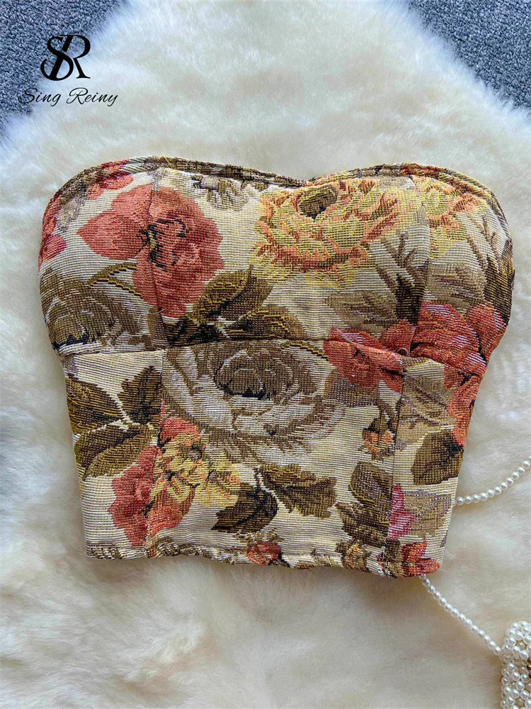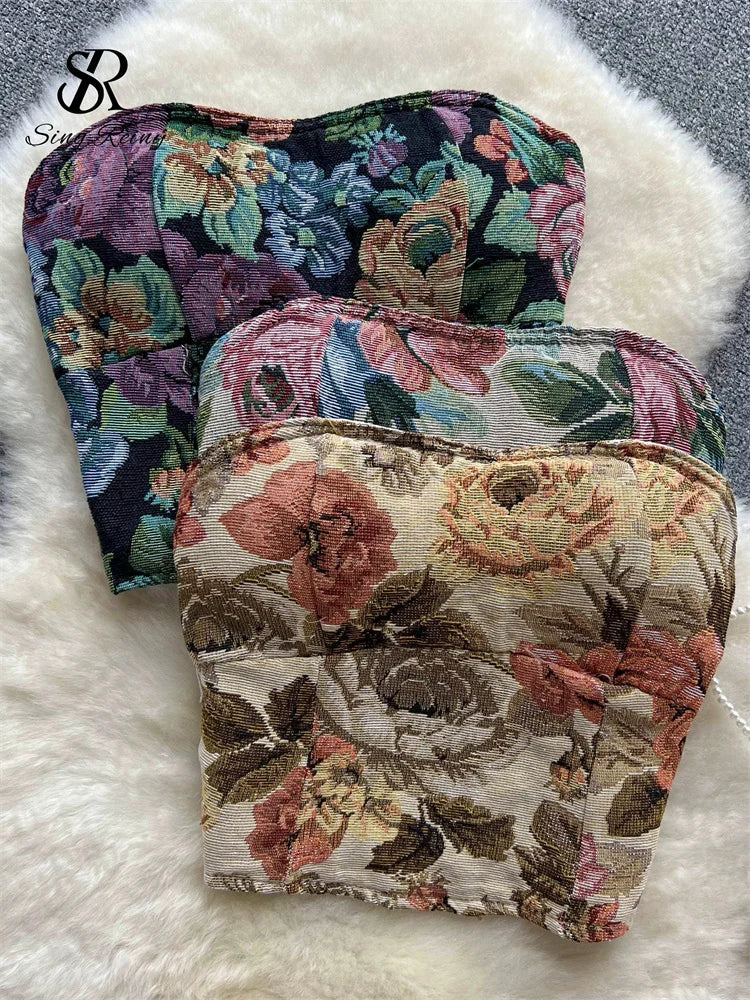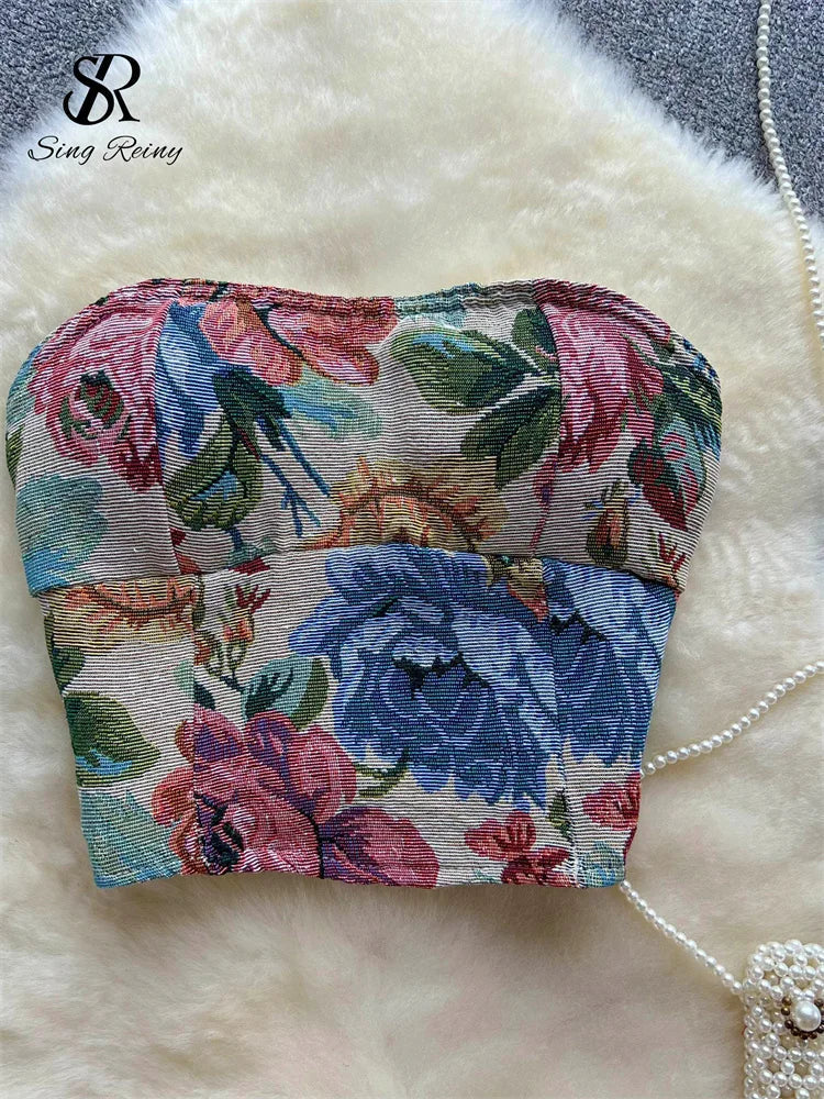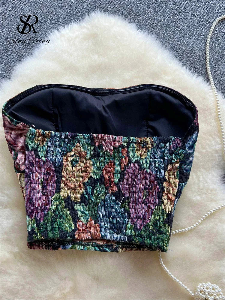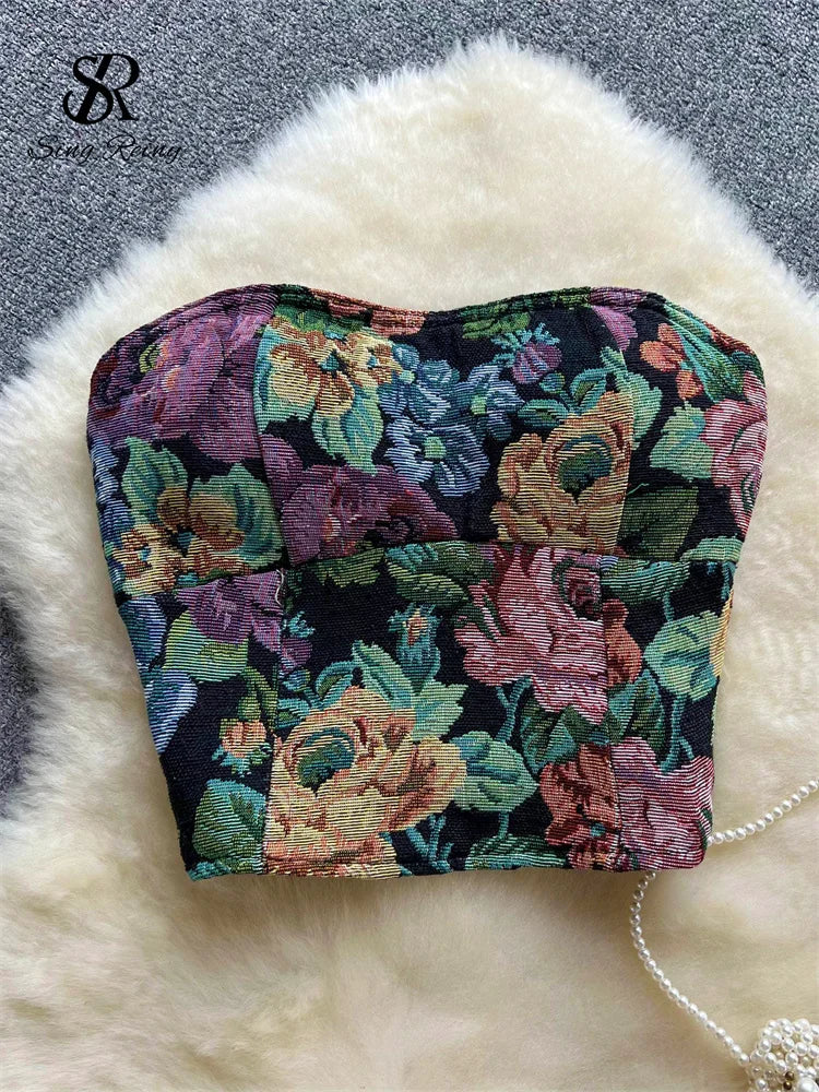 Runhufu Fashion Strapless Sexy Print Beach Top Summer Elastic Ruched Camsiole 2024 Streetwear Korean Floral Backless Tank Top