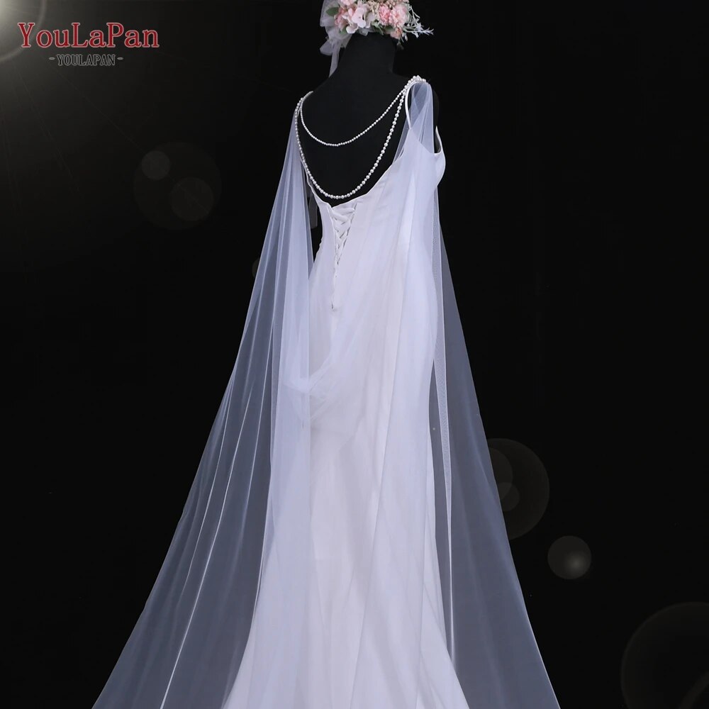 Runhufu G33 Wedding Cape Bridal Shawl White Tulle Long Cape Cloak Shawl Shrugs Women Party Jackets Wedding Accessories