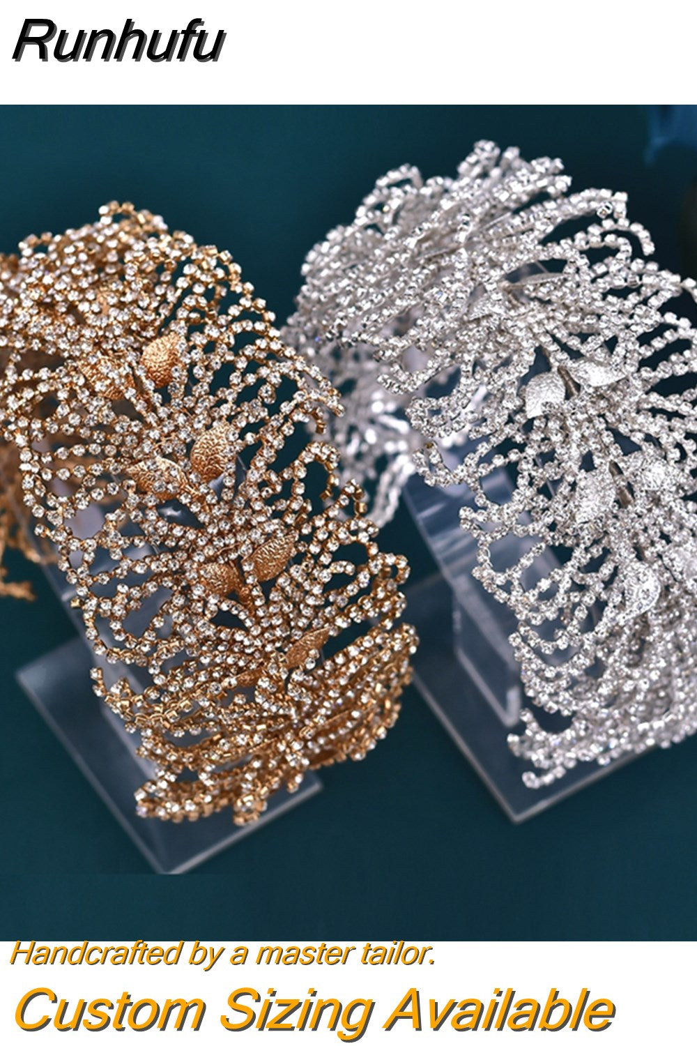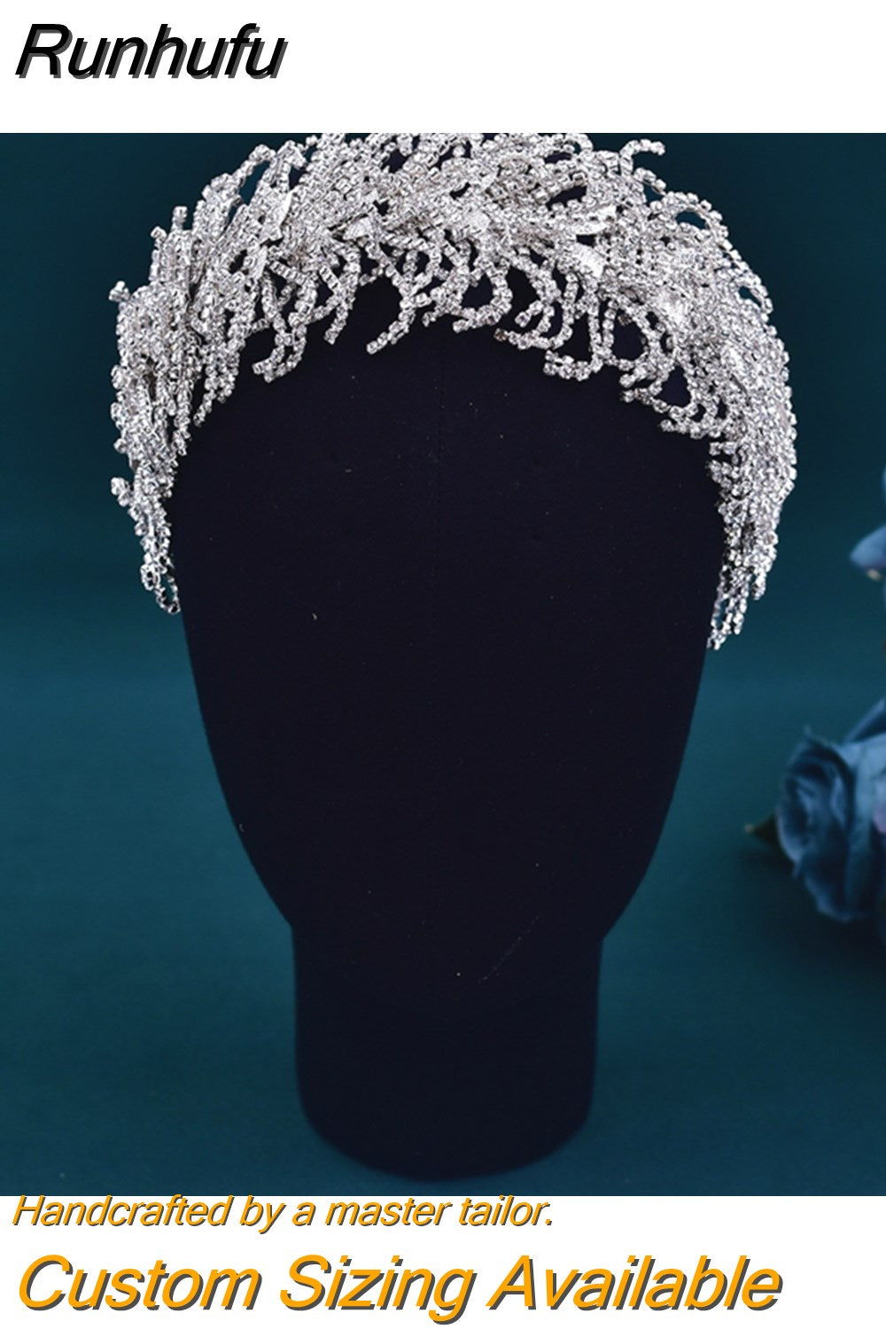 Runhufu Gorgeous Rhinestone Bridal Tiara Woman Headbands Wedding Hair Accessories Jewelry Handmade Bride Party Headpiece HP386