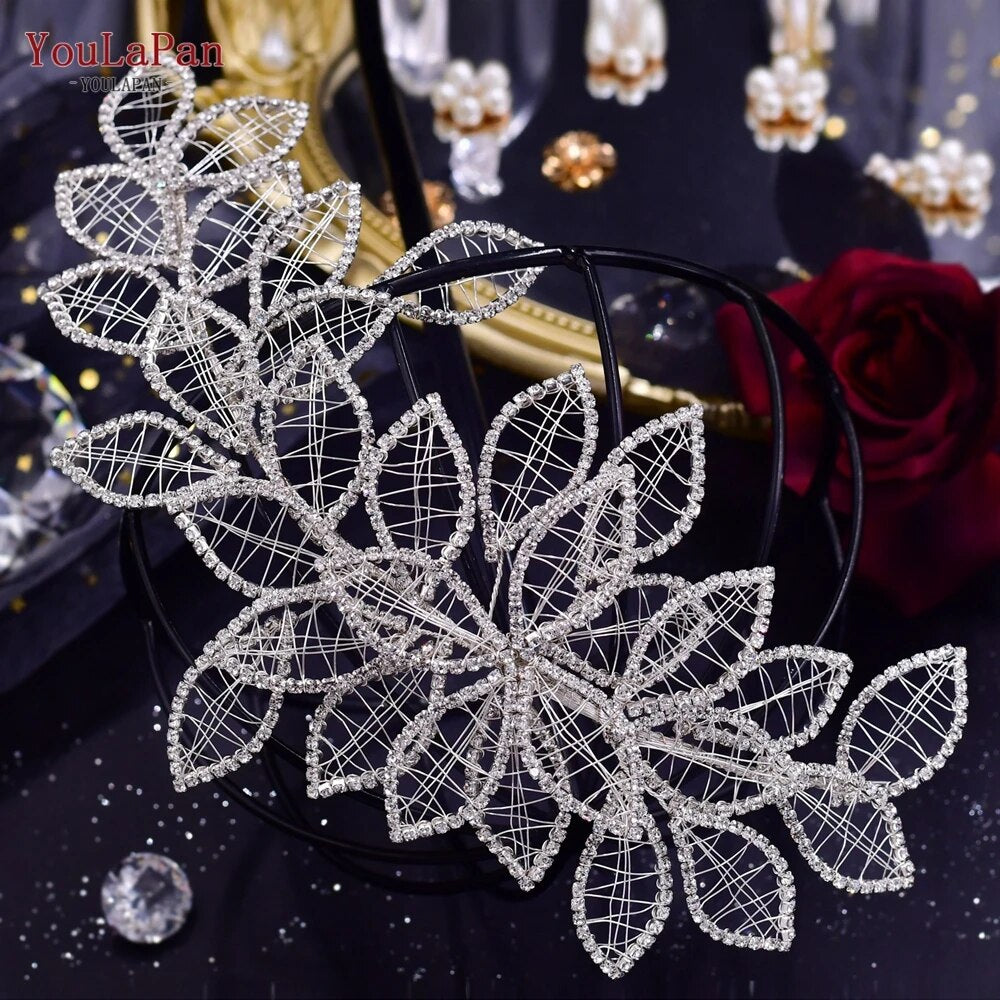 Runhufu Hollow Leaf Headband for Woman Rhinestone Bridal Headpiece Wedding Hair Accessories Bridesmaid Bride Headdress HP256A
