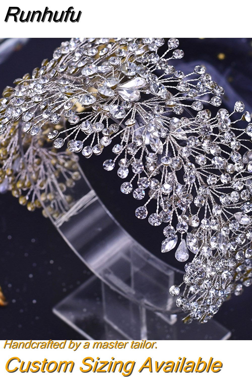 Runhufu HP243 Full Rhinestone Headband for Women Bridal Headpiece Wide Hair Band Handmade Headwear Wedding Hair Accessories