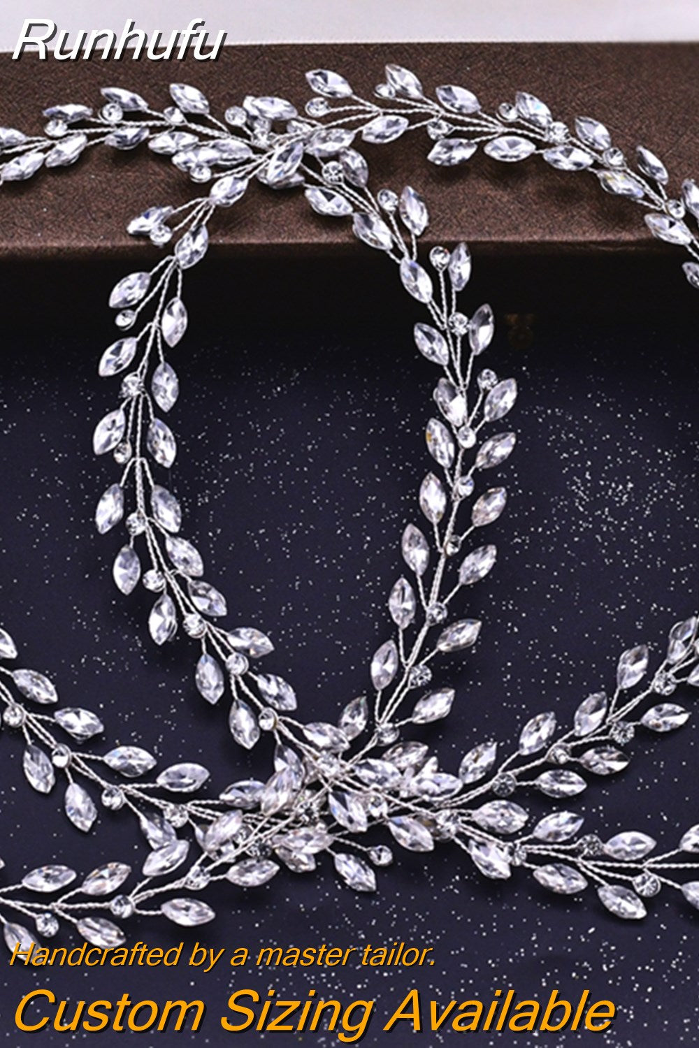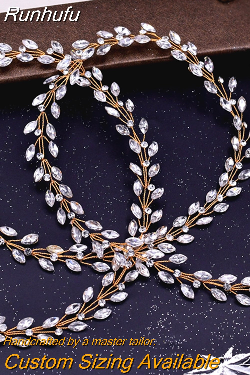 Runhufu HP394 Elegant Long Bridal Hair Vine Women Bun Decoration Headband Handmade Headdress Wedding Hair Accessories Headpiece