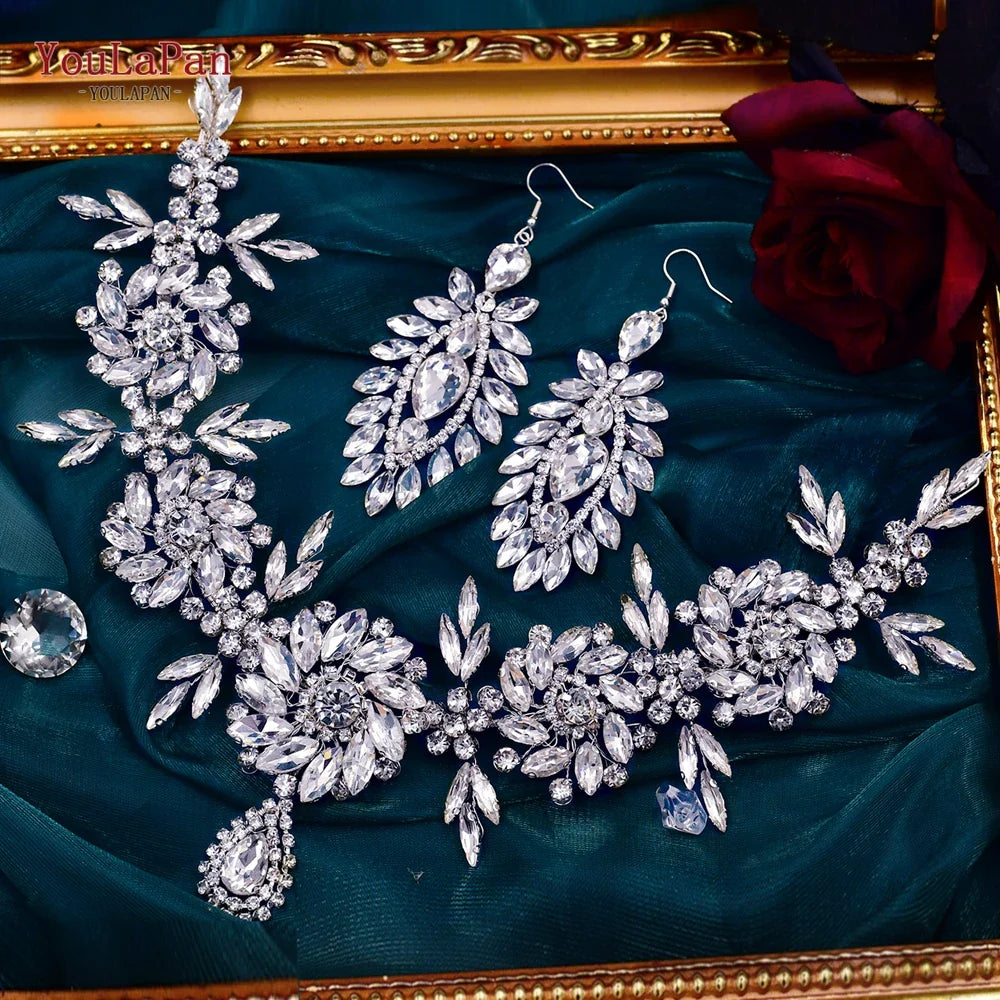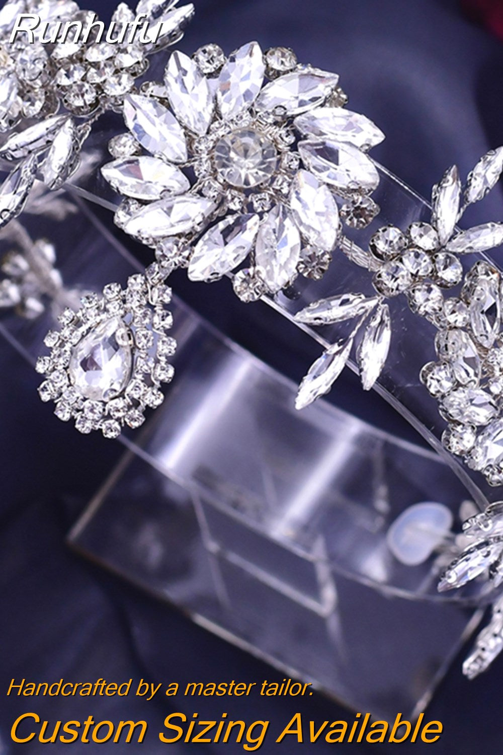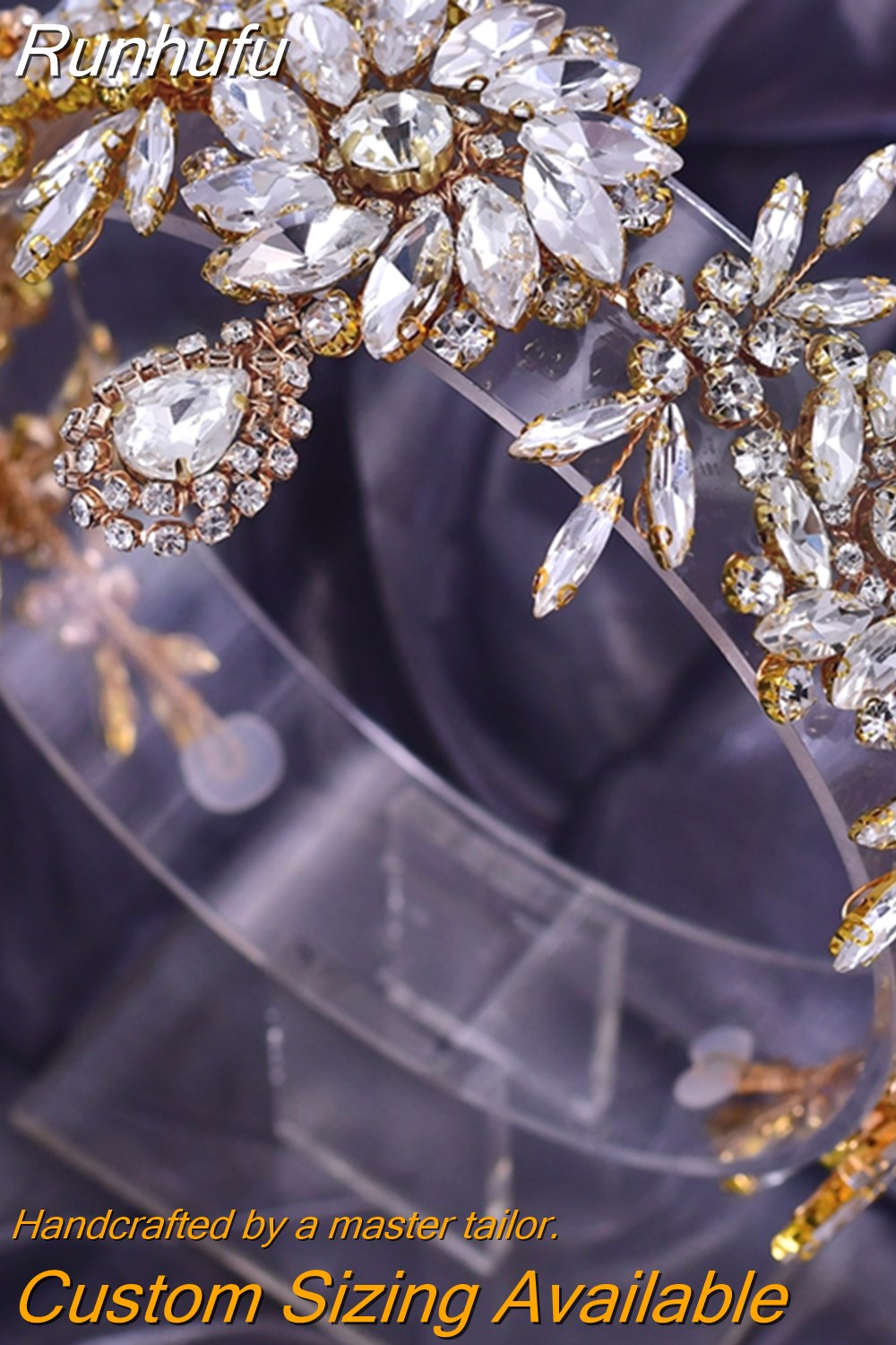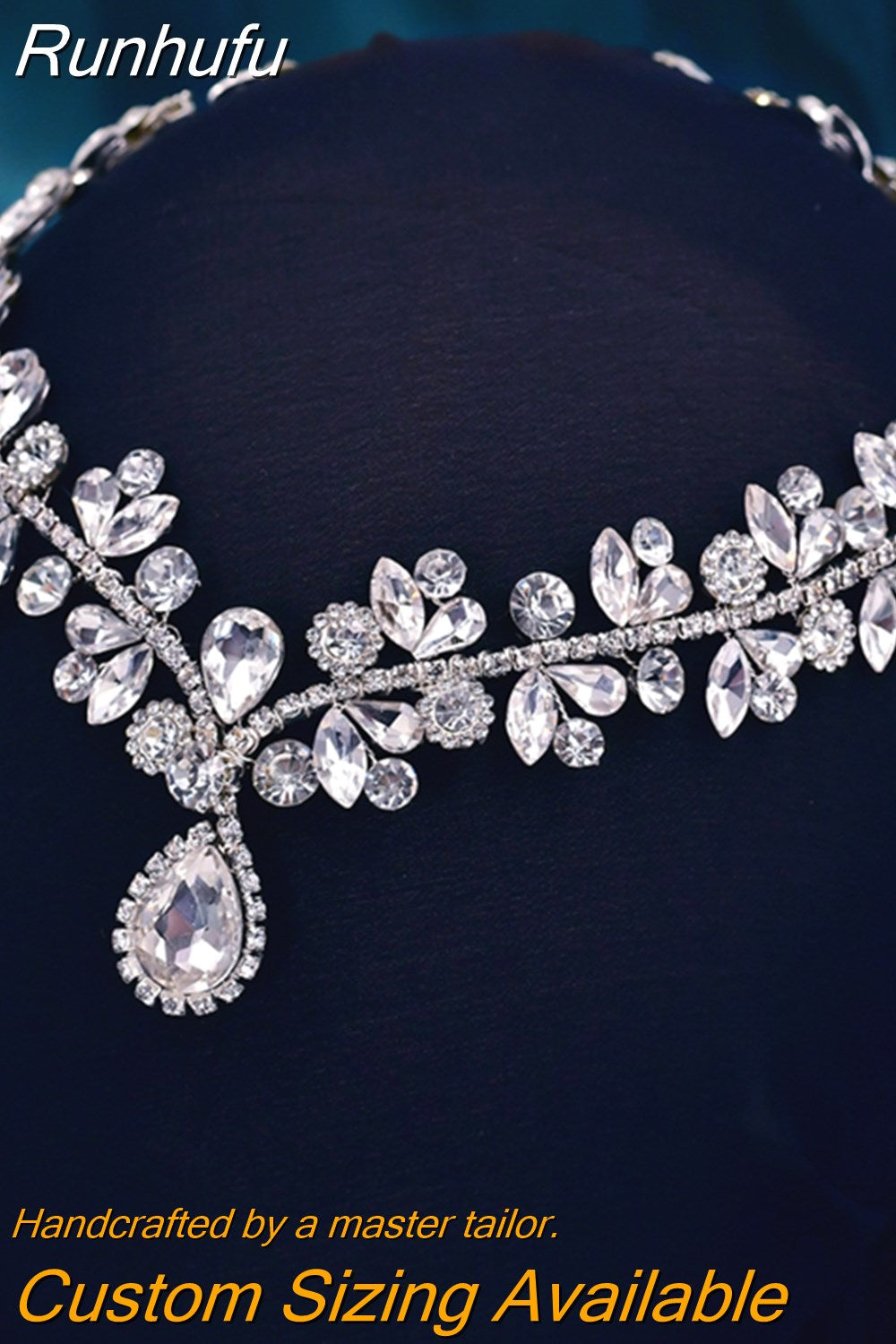 Runhufu HP440 Shiny Wedding Headband Forehead Bridal Crown Water Drop Rhinestone Head Tiara Flower Women Headdresses Gift