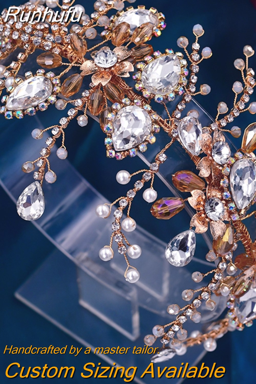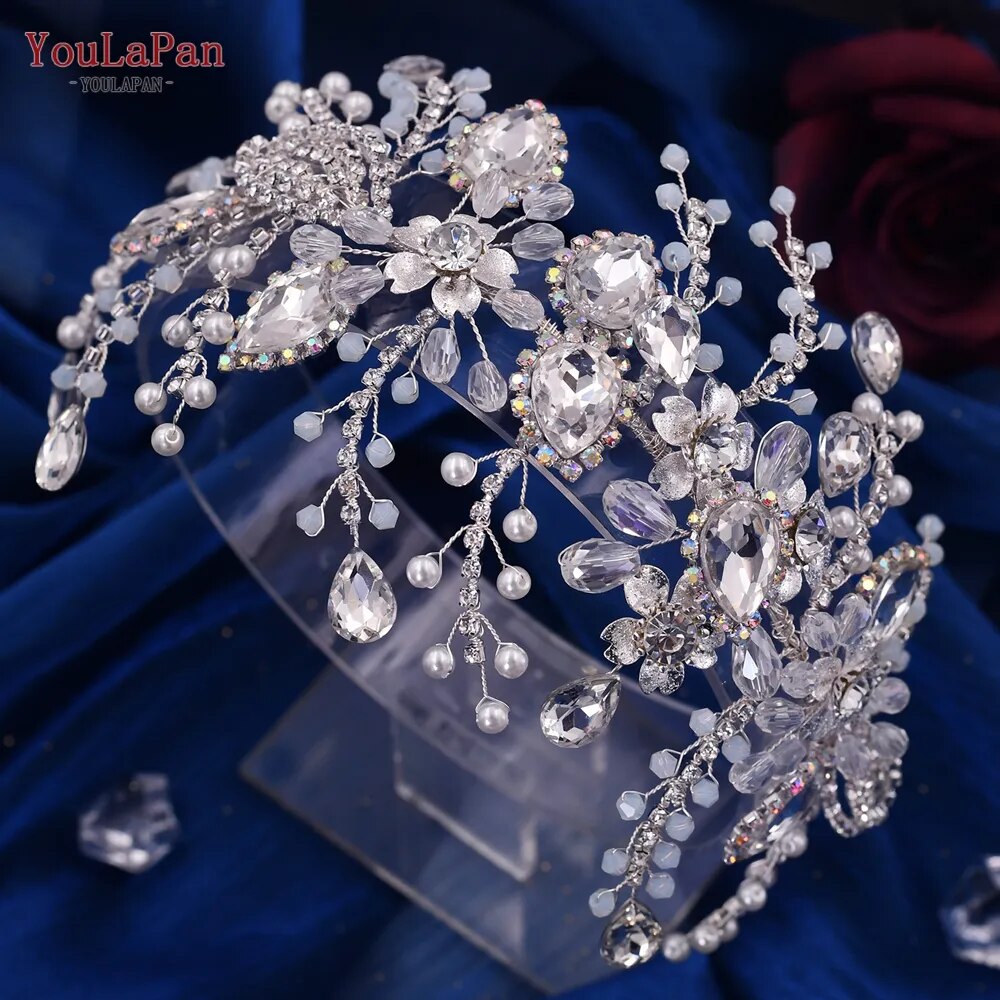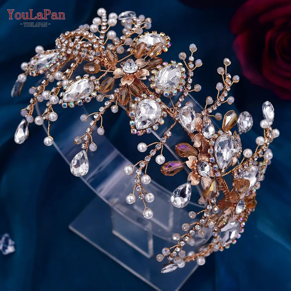 Runhufu HP453 Trendy Bridal Headband Wedding Crown Hair Accessories Bride Hair Ornaments Crystal Headdress Prom Tiara for Women