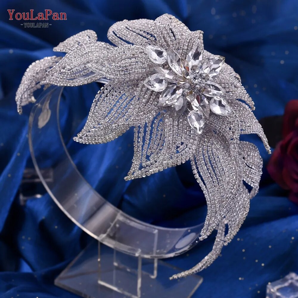 Runhufu HP455 Wedding Headpiece Crystal Flower Bridal Hair Accessories Bride Headwear Pageant Crown Women Hair Ornament Jewelry