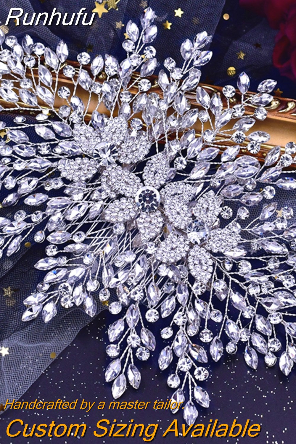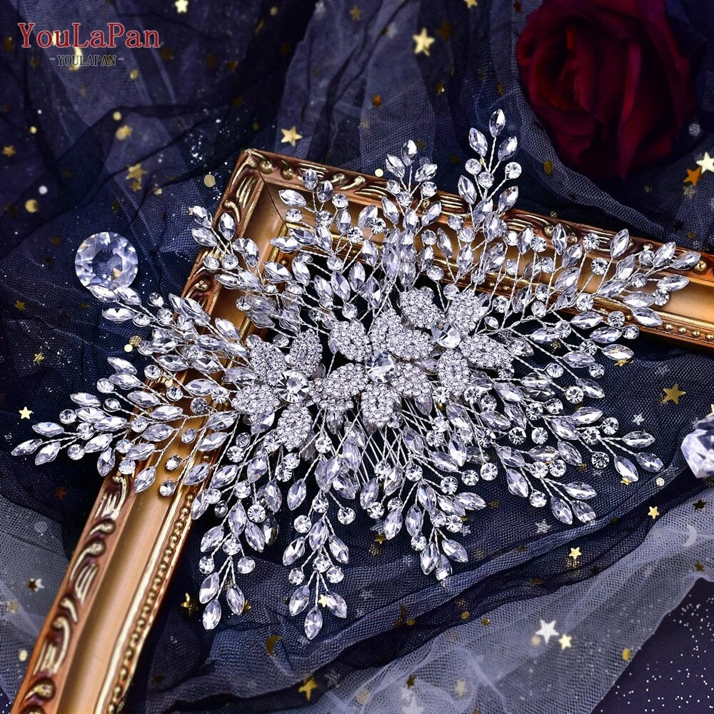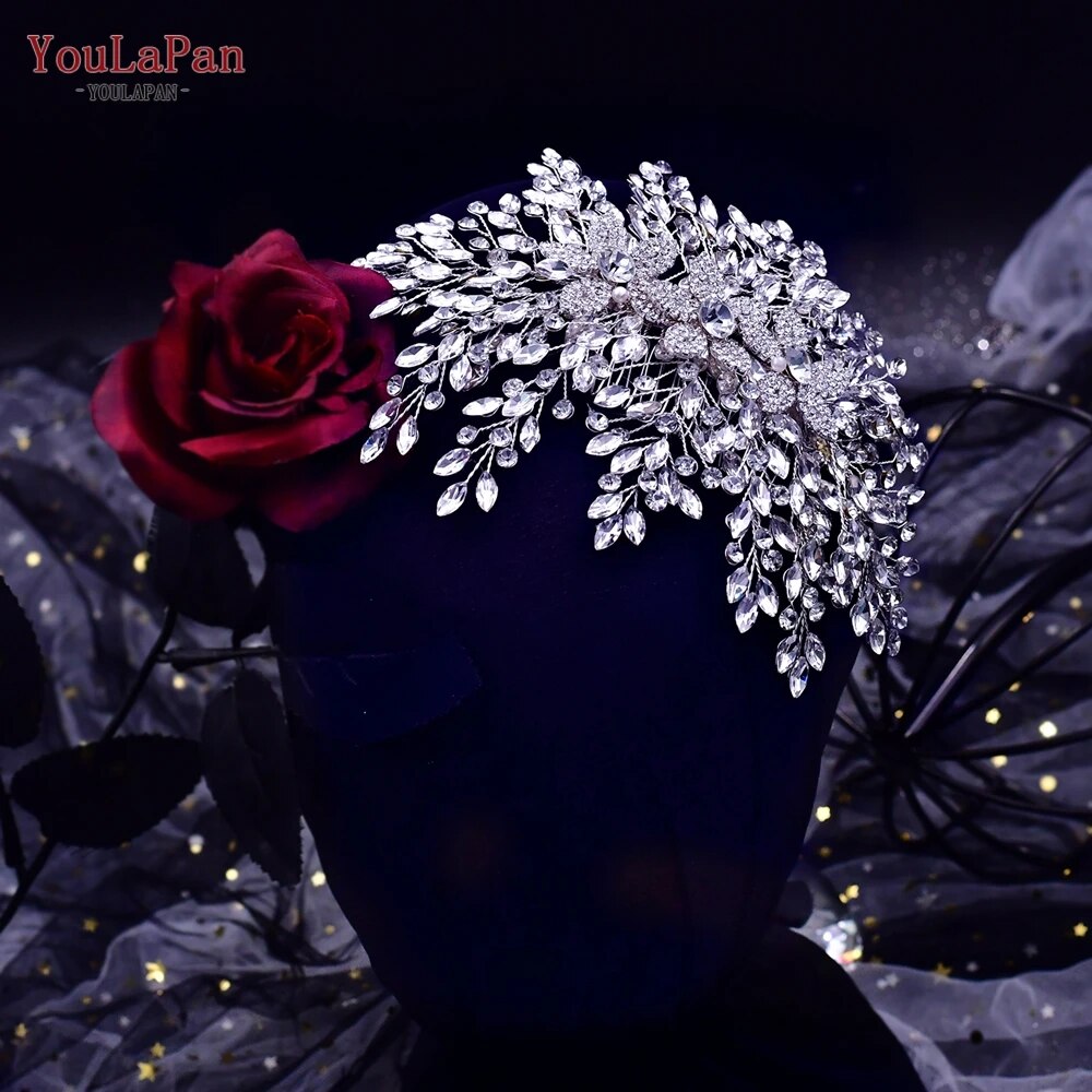 Runhufu HP462A Crystal Headpiece for Brides Hair Accessories Wedding Bridal Side Comb Head Jewelry Flower Woman Headdresses