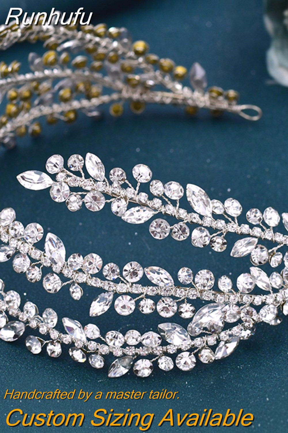 Runhufu HP496 Shiny Wedding Hair Accessories Jewelry Bridal Tiara Woman Headband Rhinestone Headpiece for Pageant Headdresses