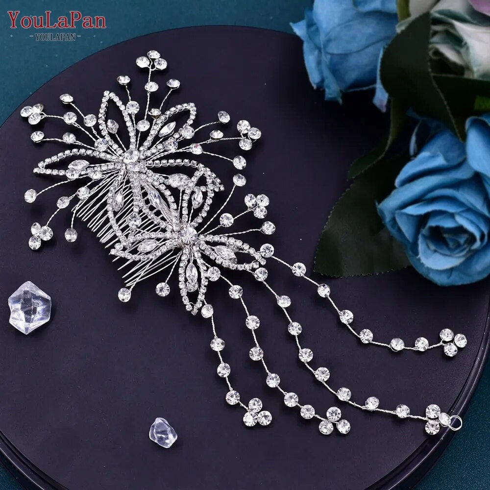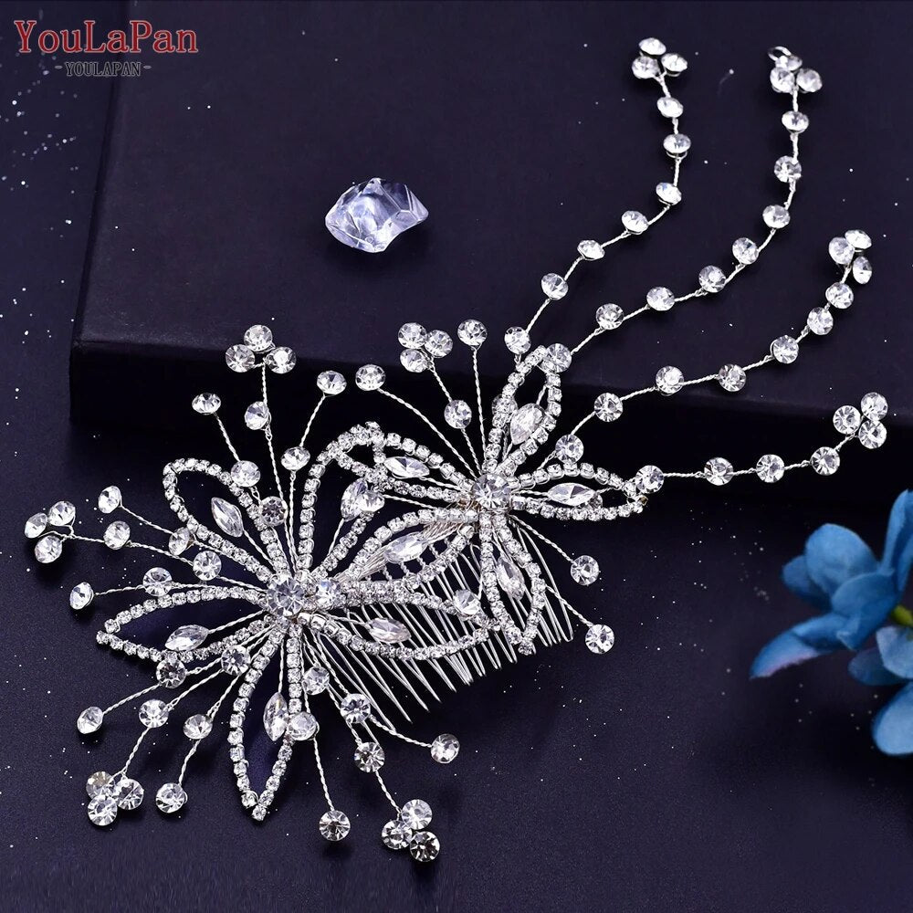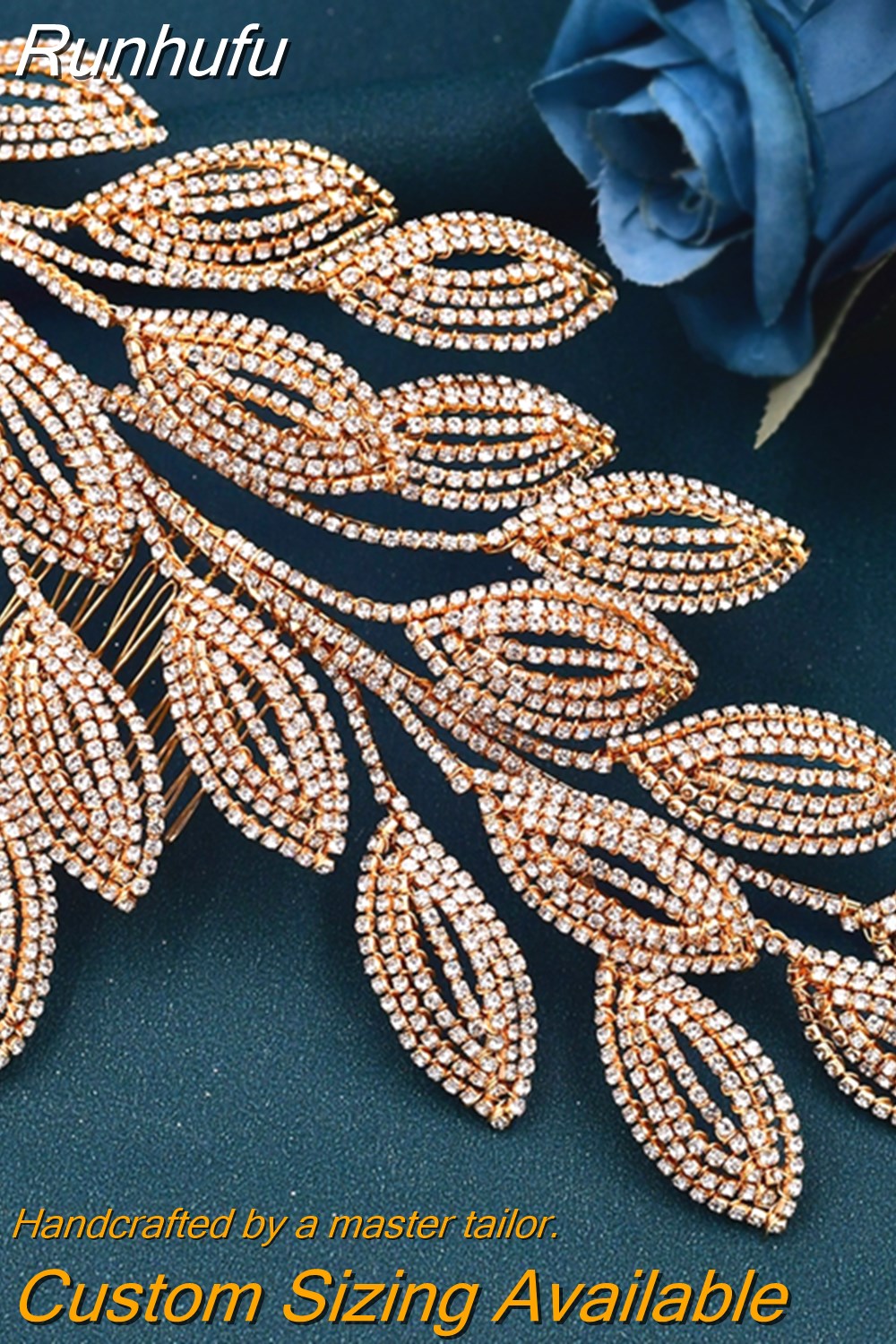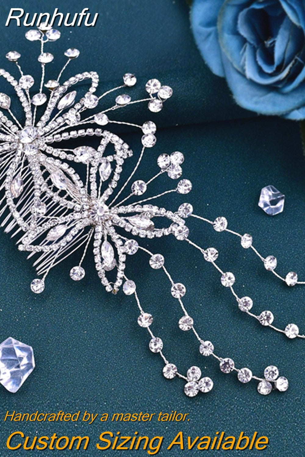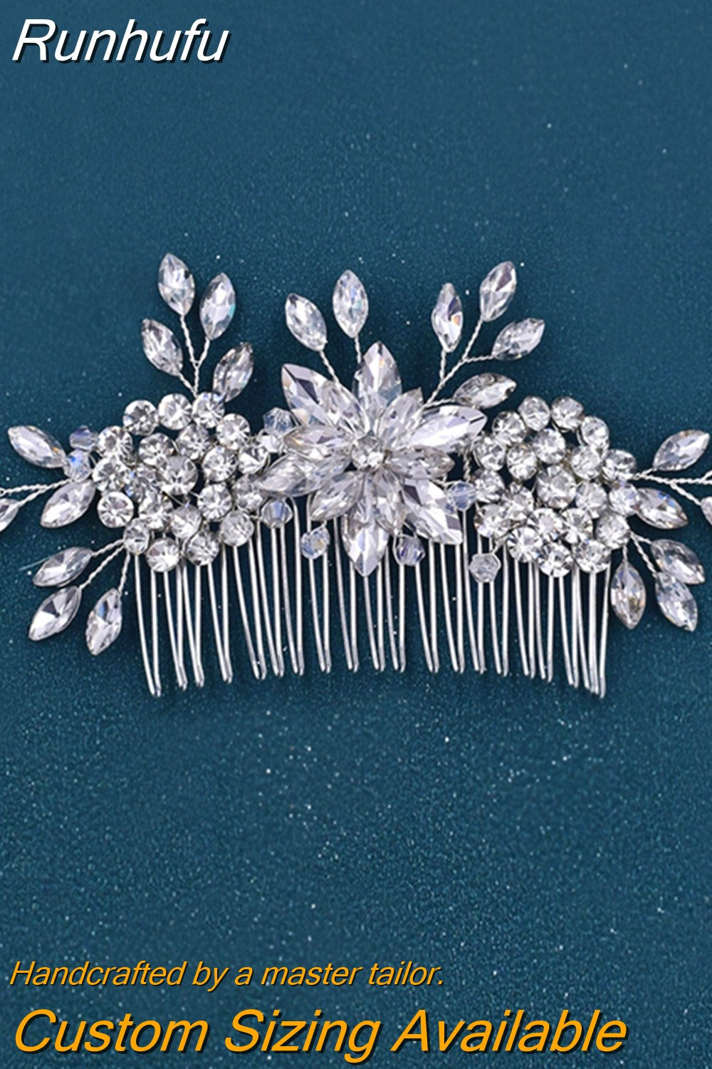 Runhufu HP499 Crystal Flower Bridal Comb Rhinestone Wedding Hair Accessories Bride Tiara and Headdress Pageant Hair Jewelry