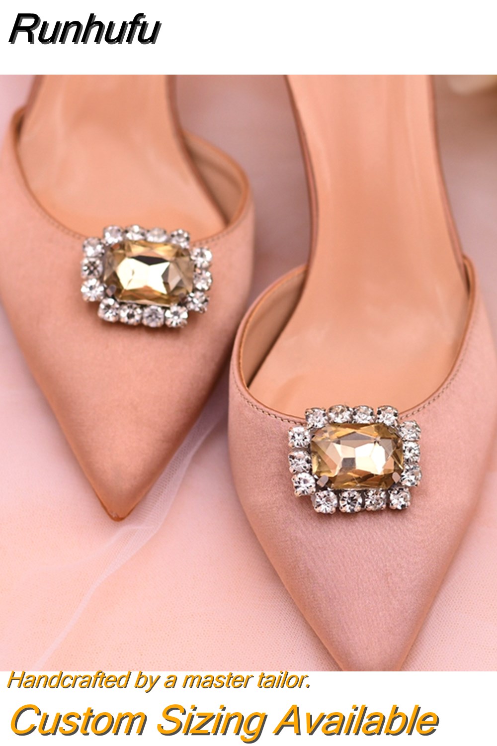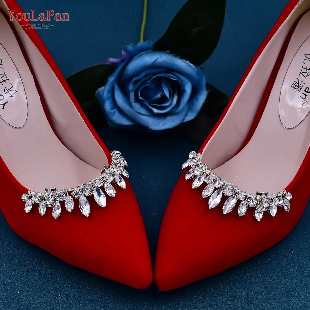Runhufu HX39 2pcs Rhinestones High Heel Buckle Decoration Women Bride Shoes Clips Charm Wedding Shoes Buckle Shoe Crystal Clip
