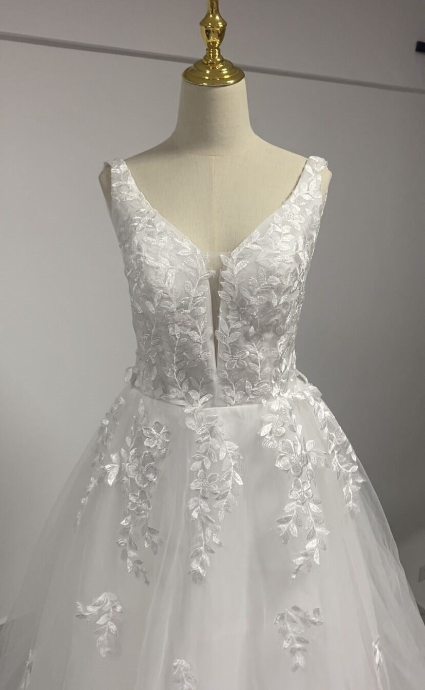 It is beautiful, I loved it... it is so beautiful the details of the chest part, I asked for it in white color and it is not very different from ivory. I am size M and I ordered size 12 I had a little loose waist. But it can be adjusted and if it is a little long from the front but I will also adjust it according to my shoes that I will wear that day! But it is beautiful, but I recommend my expectations to make your purchase of your dress.