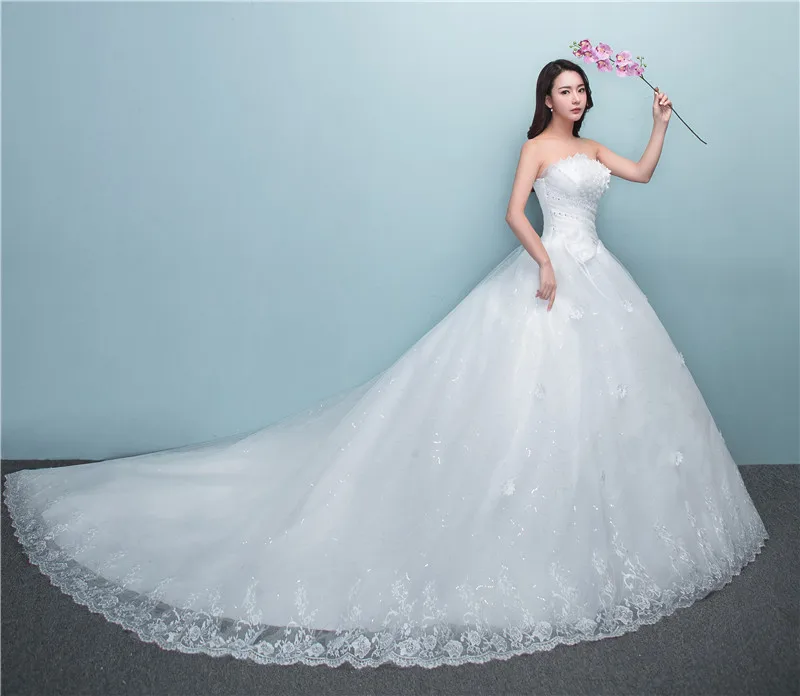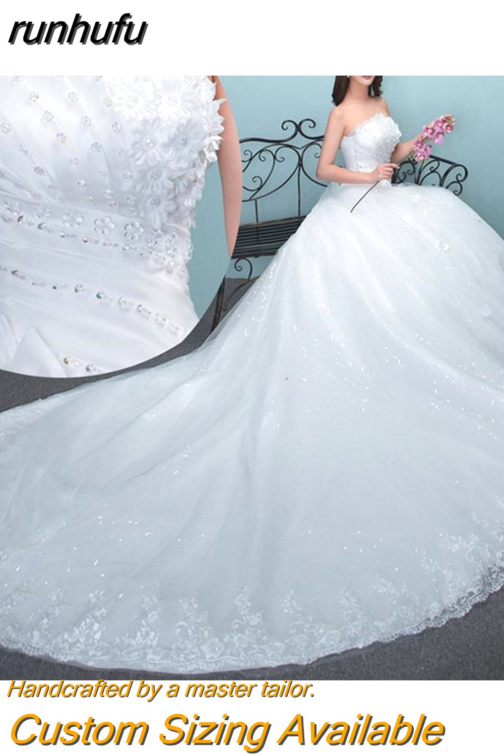 runhufu Luxe Kralen Borstel Trein Lace Up Trouwjurk Sexy Strapless Applique Maat Plus Size Bruidsjurk Vestido De Noiva