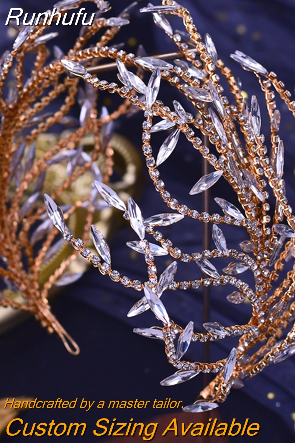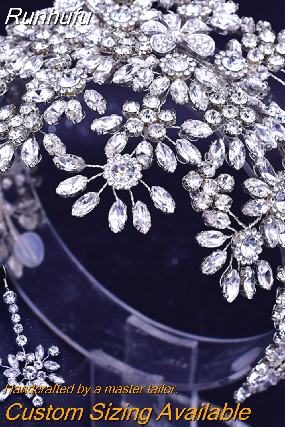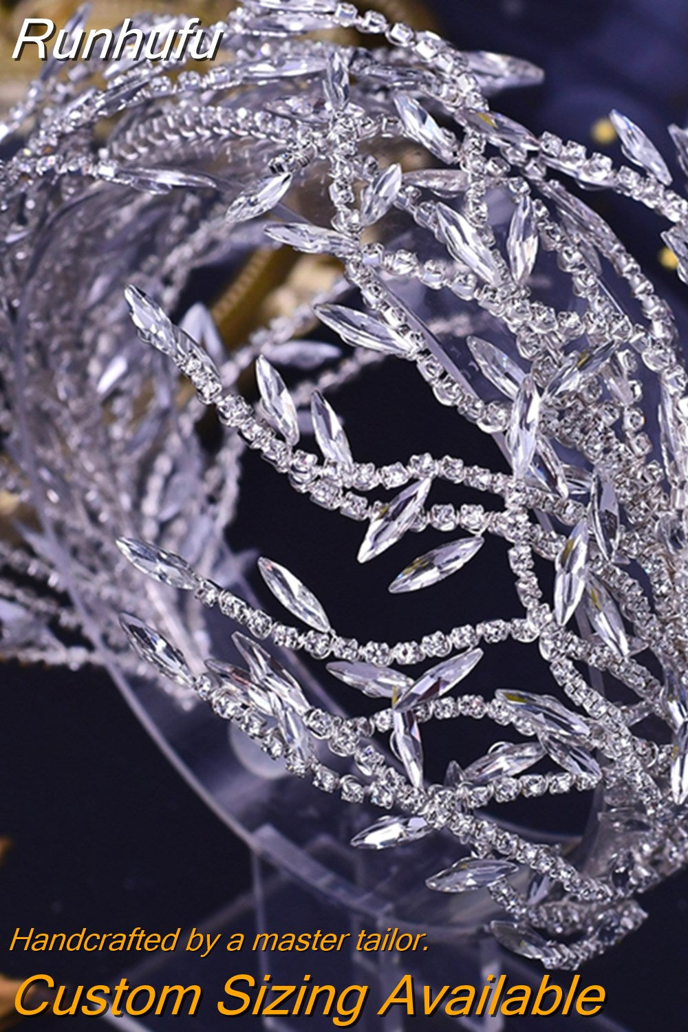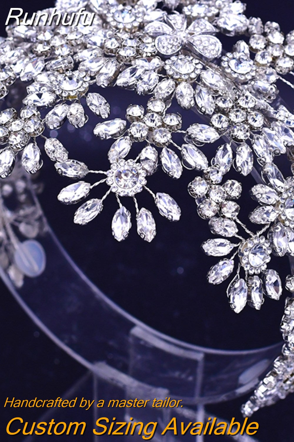 Runhufu Luxury Bridal Hair Tiara Rhinestone Headband Handmade Wedding Hair Accessories Women Headdress Pageant Headpiece HP398