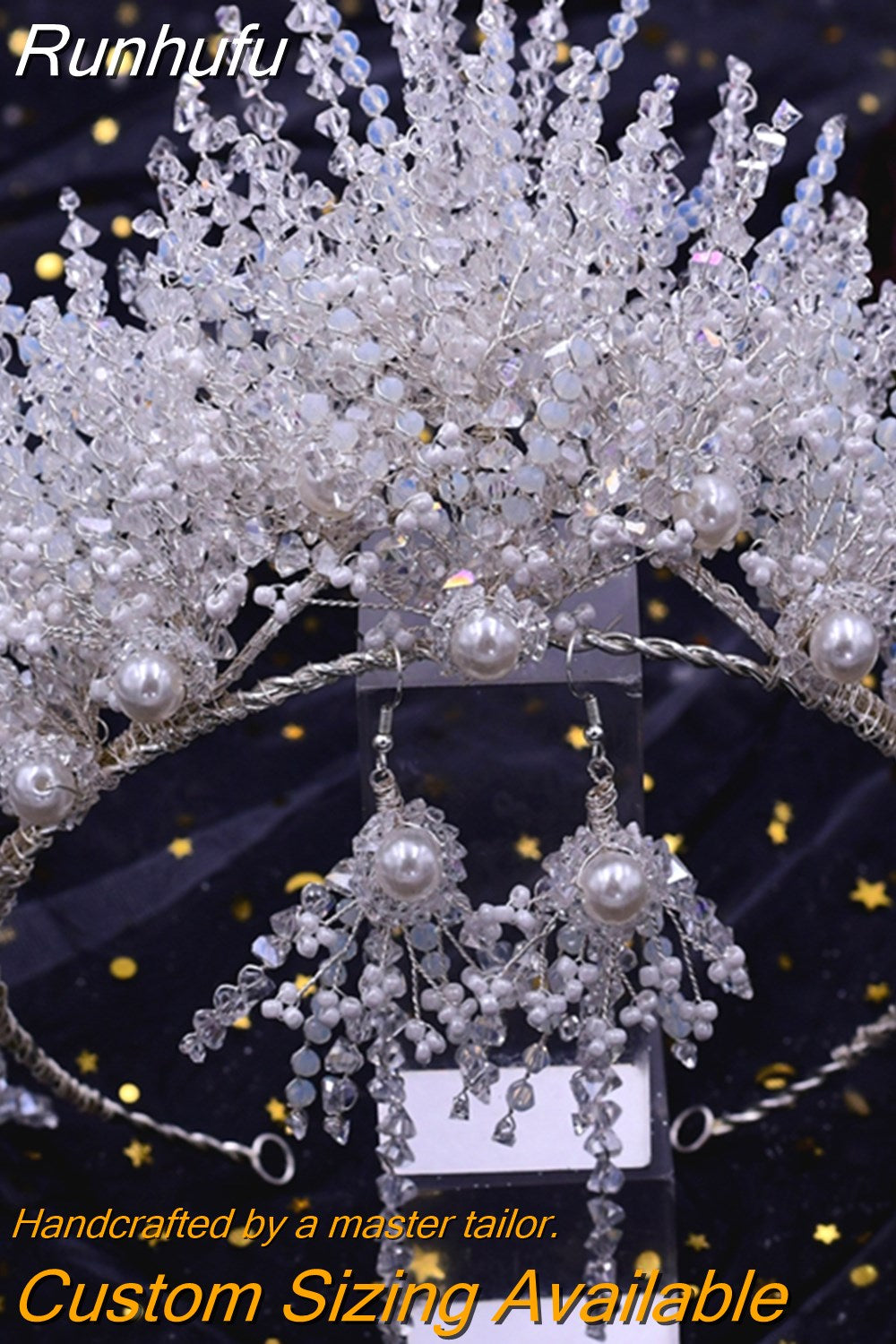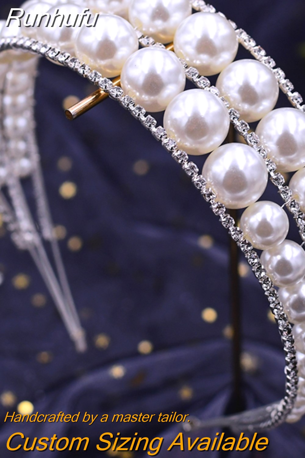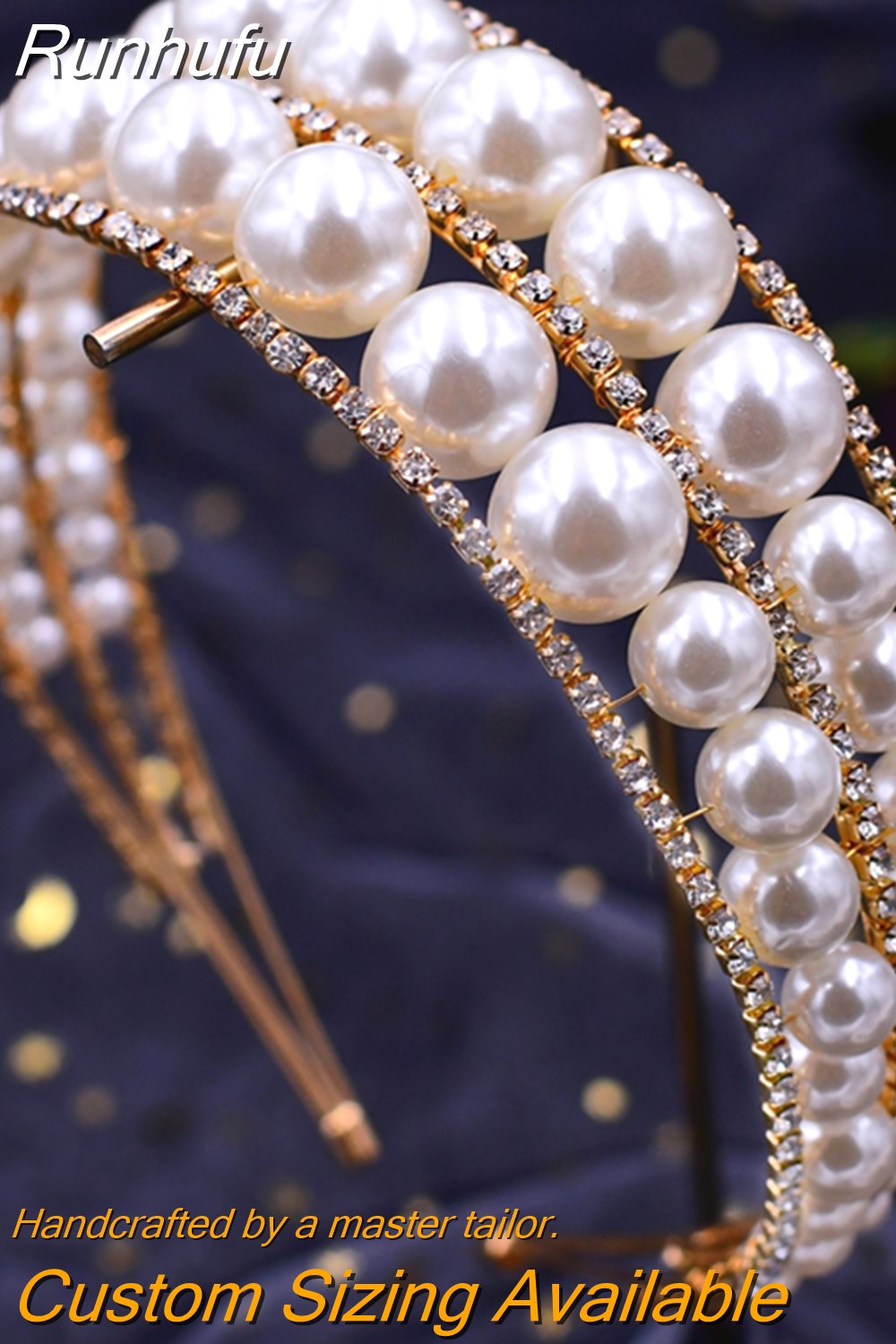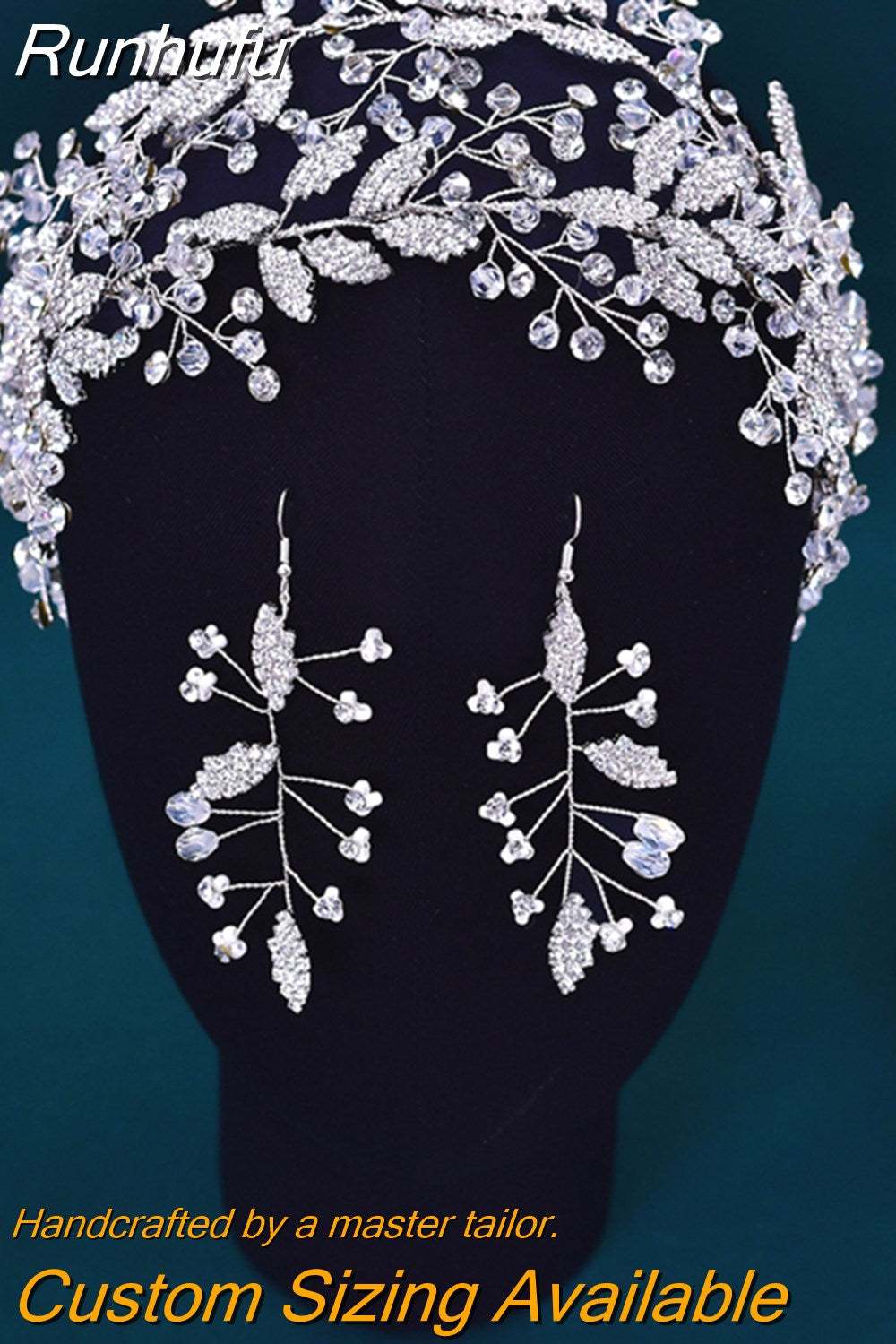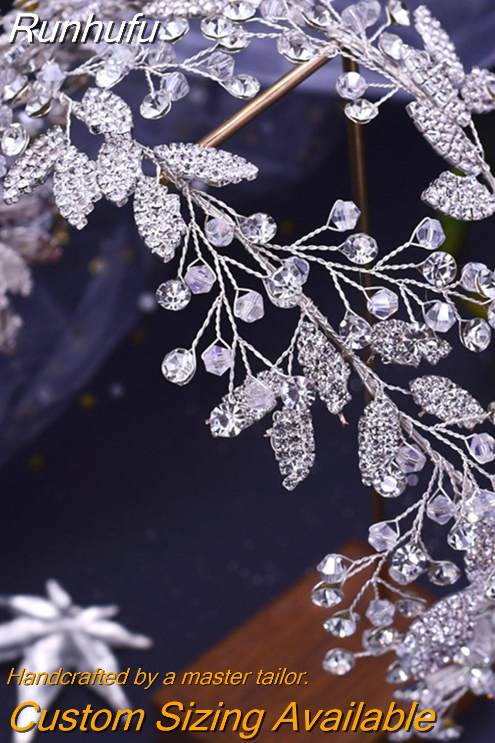 Runhufu Luxury Bridal Hair Tiara Rhinestone Headband Handmade Wedding Hair Accessories Women Headdress Pageant Headpiece HP398