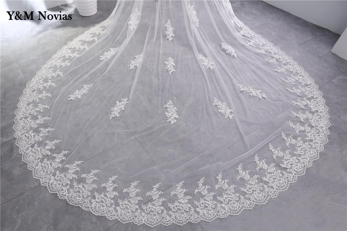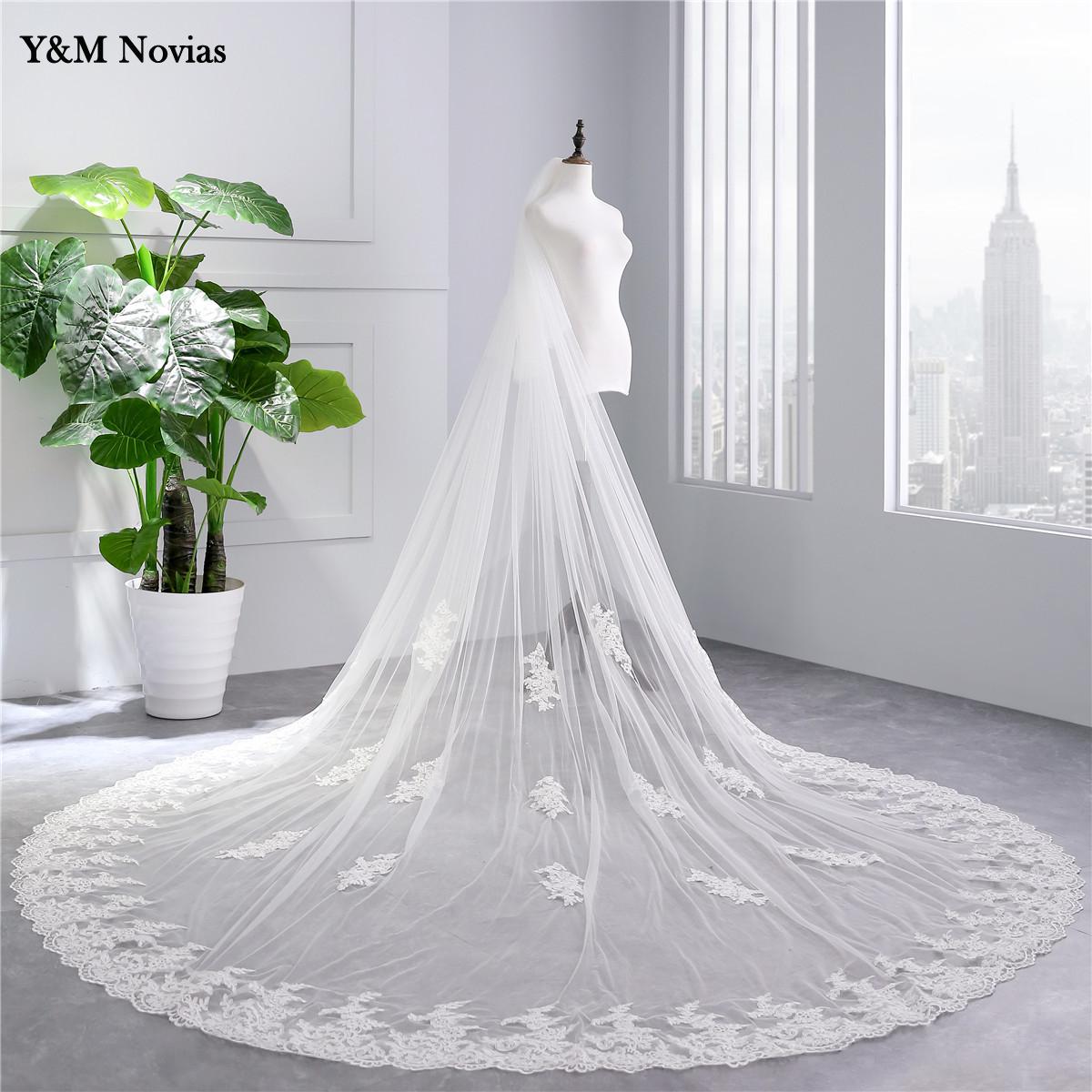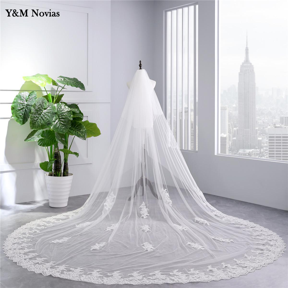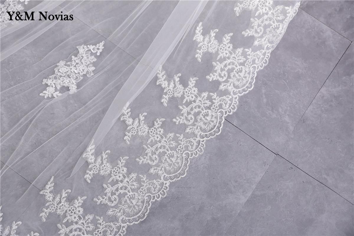 runhufu Luxury Lace Long Tulle Wedding Veils Two Layer With Comb White Ivory Bridal Veil for Bride Marriage Wedding Accessorie