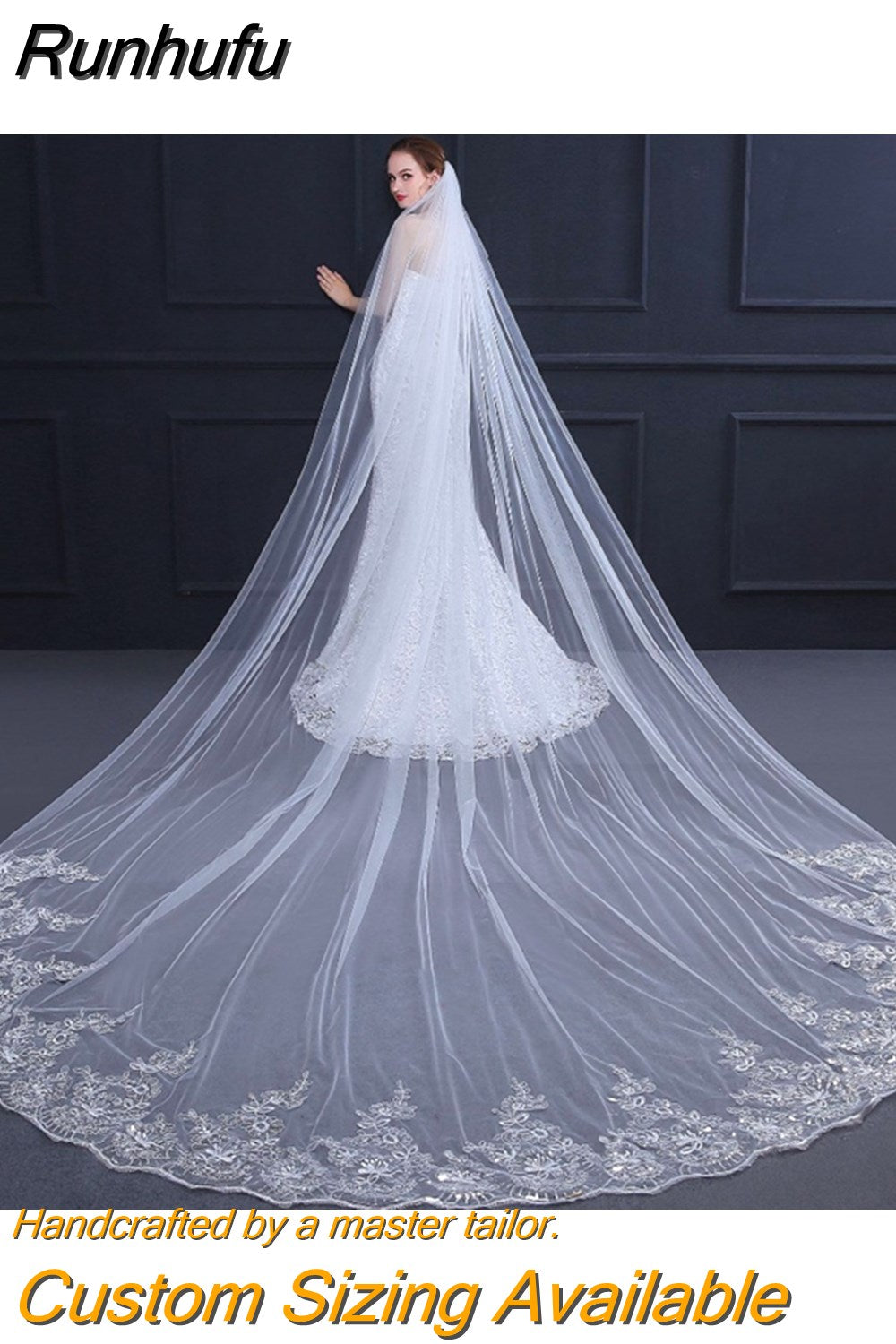 Runhufu New Fashion 3 Meter Cathedral Wedding Veils Long Lace Edge Bridal Veil Wedding Accessories