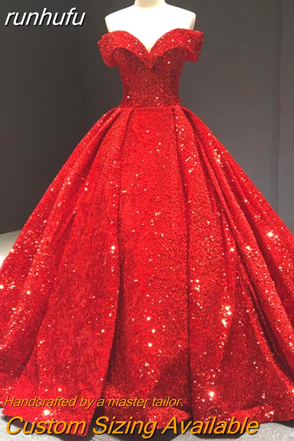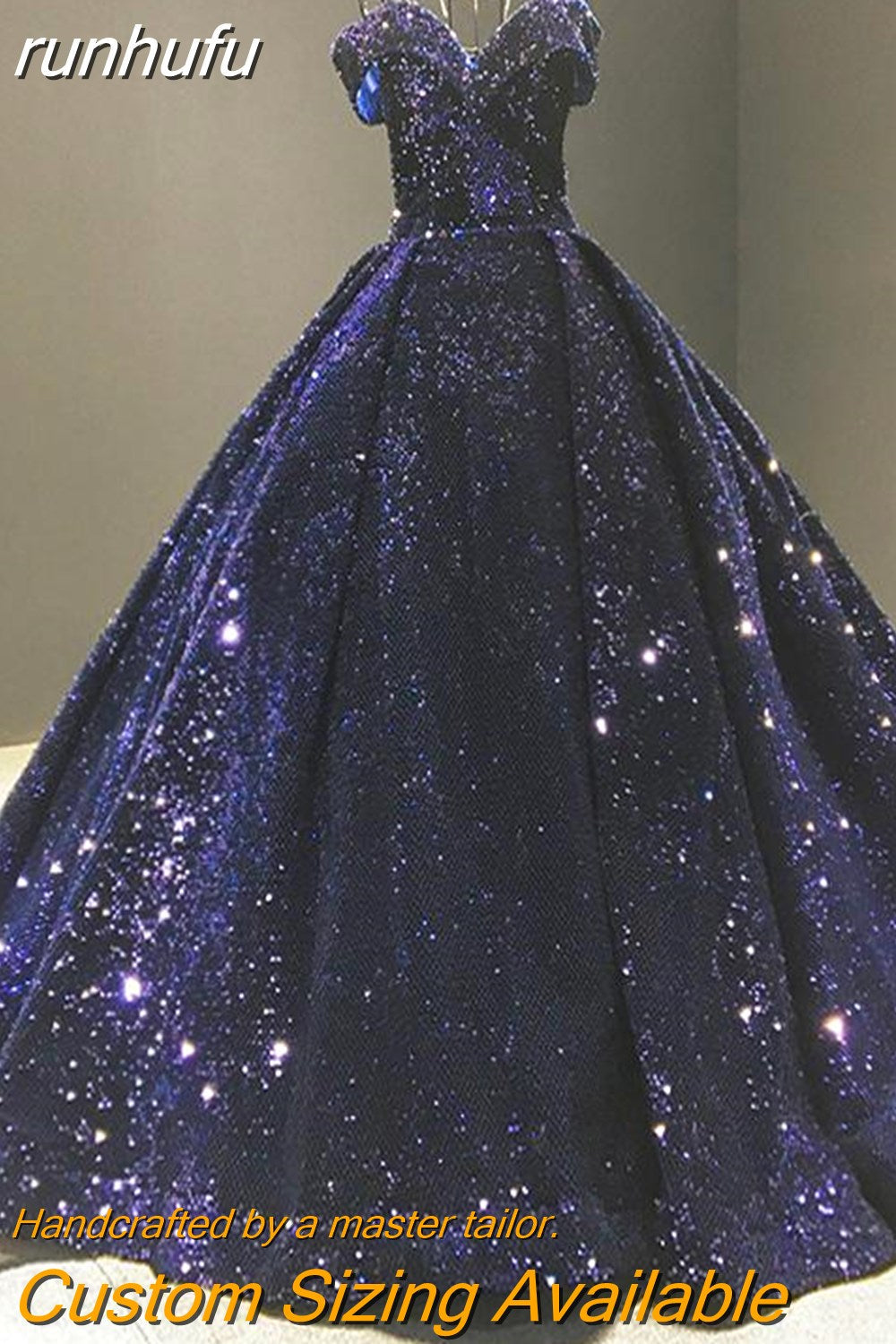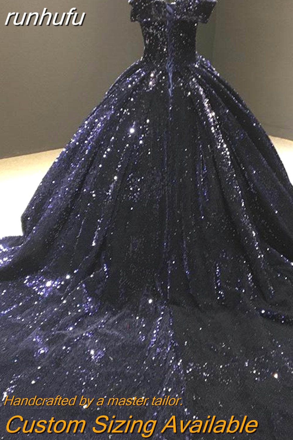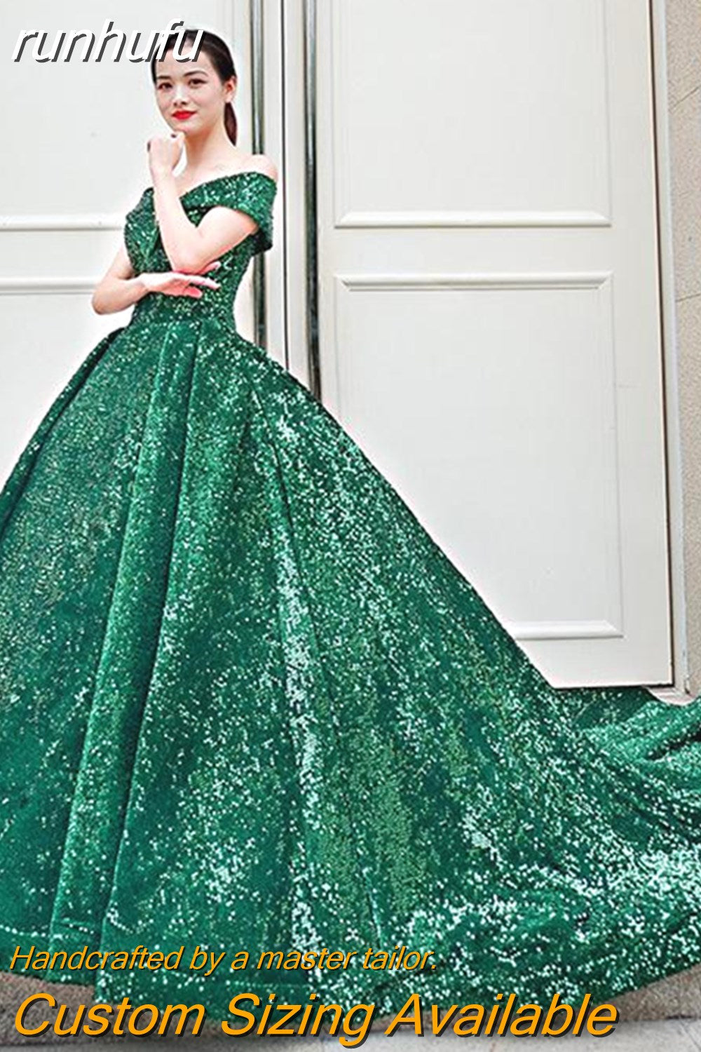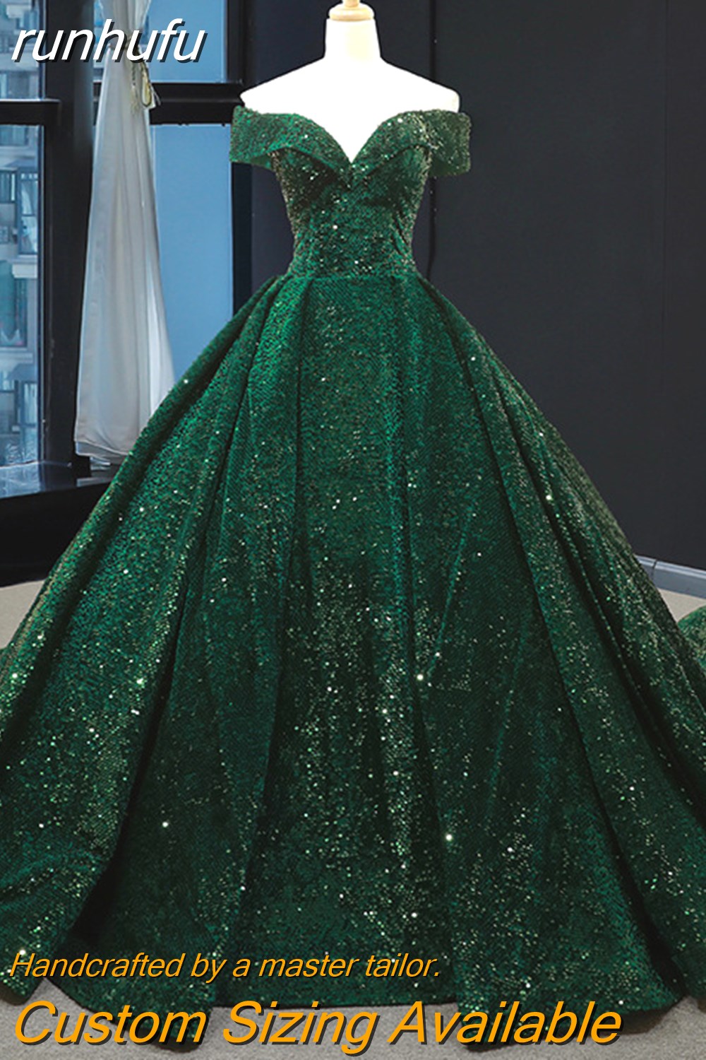 runhufu New Performance Quinceanera Dresses Off The Shoulder Green Dream Dress Prom Dress Big Train Bling Ball Gown Dresses