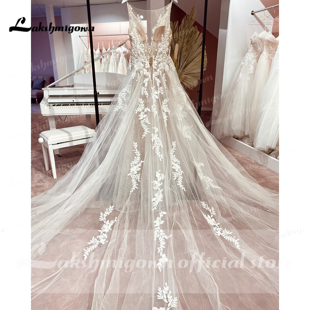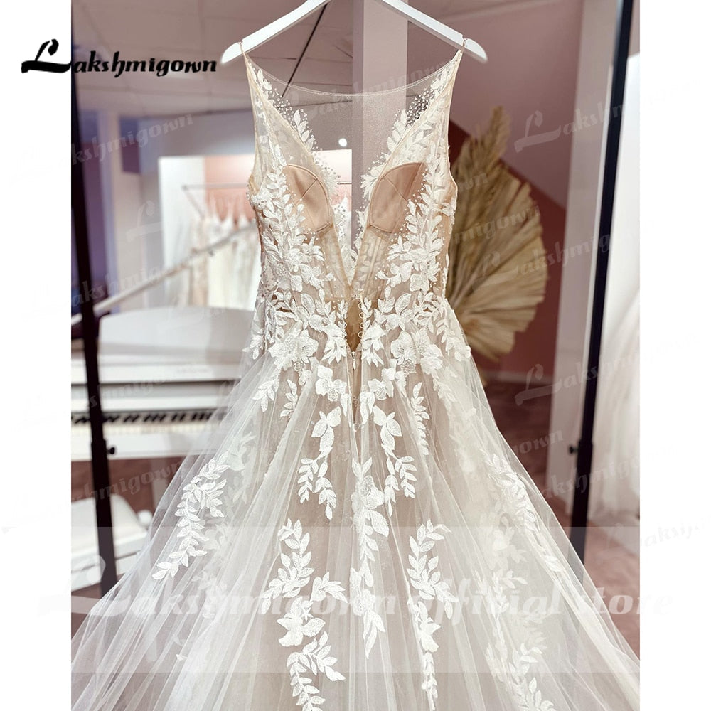 runhufu New V-Neck Tulle Wedding Dress 2023 A-Line Backless Sleeveless Bridal Gown For Women Vestido De Novia Lakshmigown