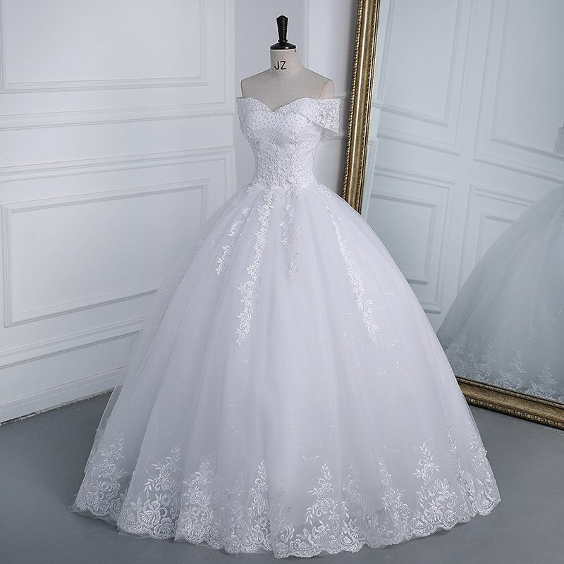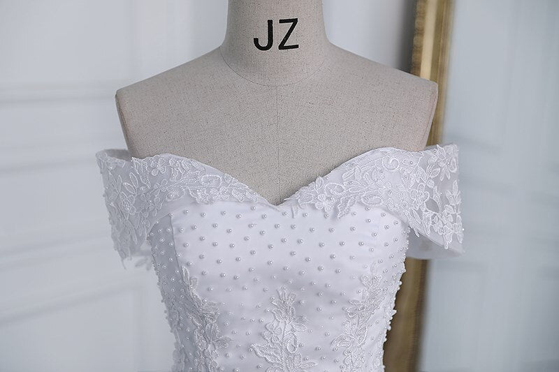 runhufu Novia 2023 Off The Shoulder Plus Size Lace Wedding Dress Long Train Appliqes Pearls Bridal Tulle Mariage Vestido De Noiva