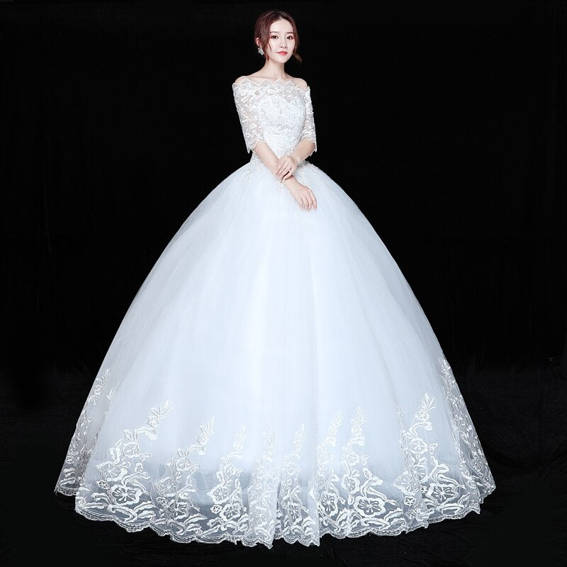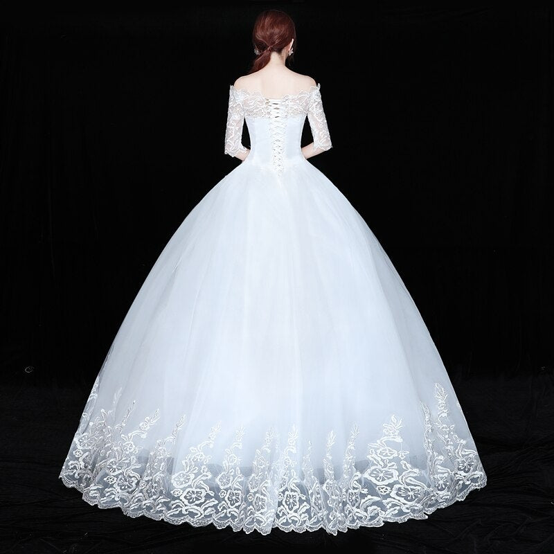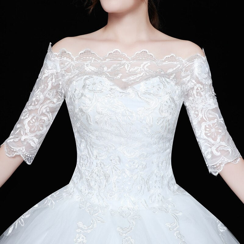 runhufu Novias Vestidos de Noiva Ball Gown Lace Wedding Dress Half Sleeves Off Shoulder Tulle Puffy Bride Gowns Simple Elegant Dress
