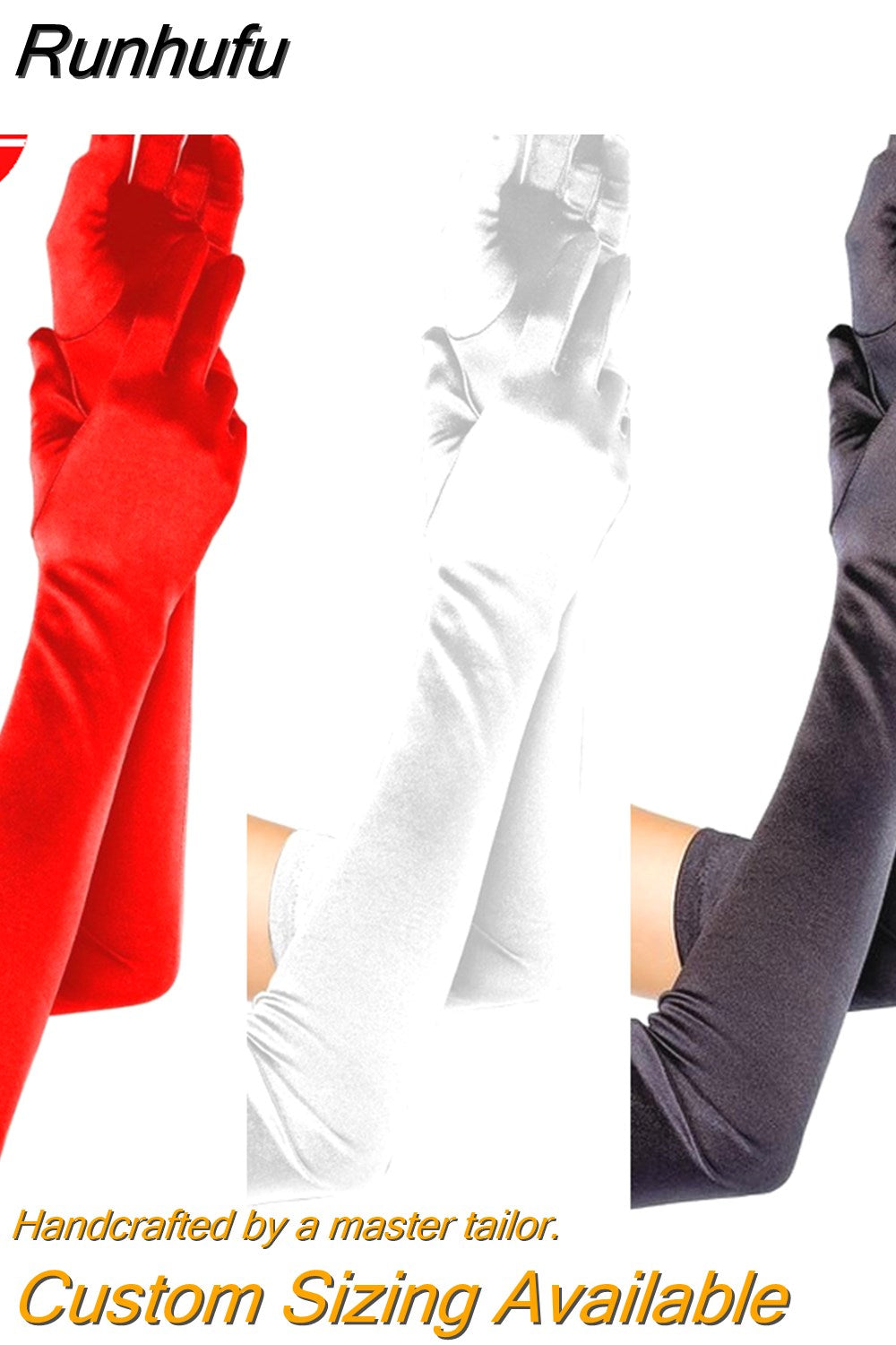 Runhufu Party Dance Gloves Mariage White/Black/Red Finger Satin Boda Opera For Bridal Wedding Accessories