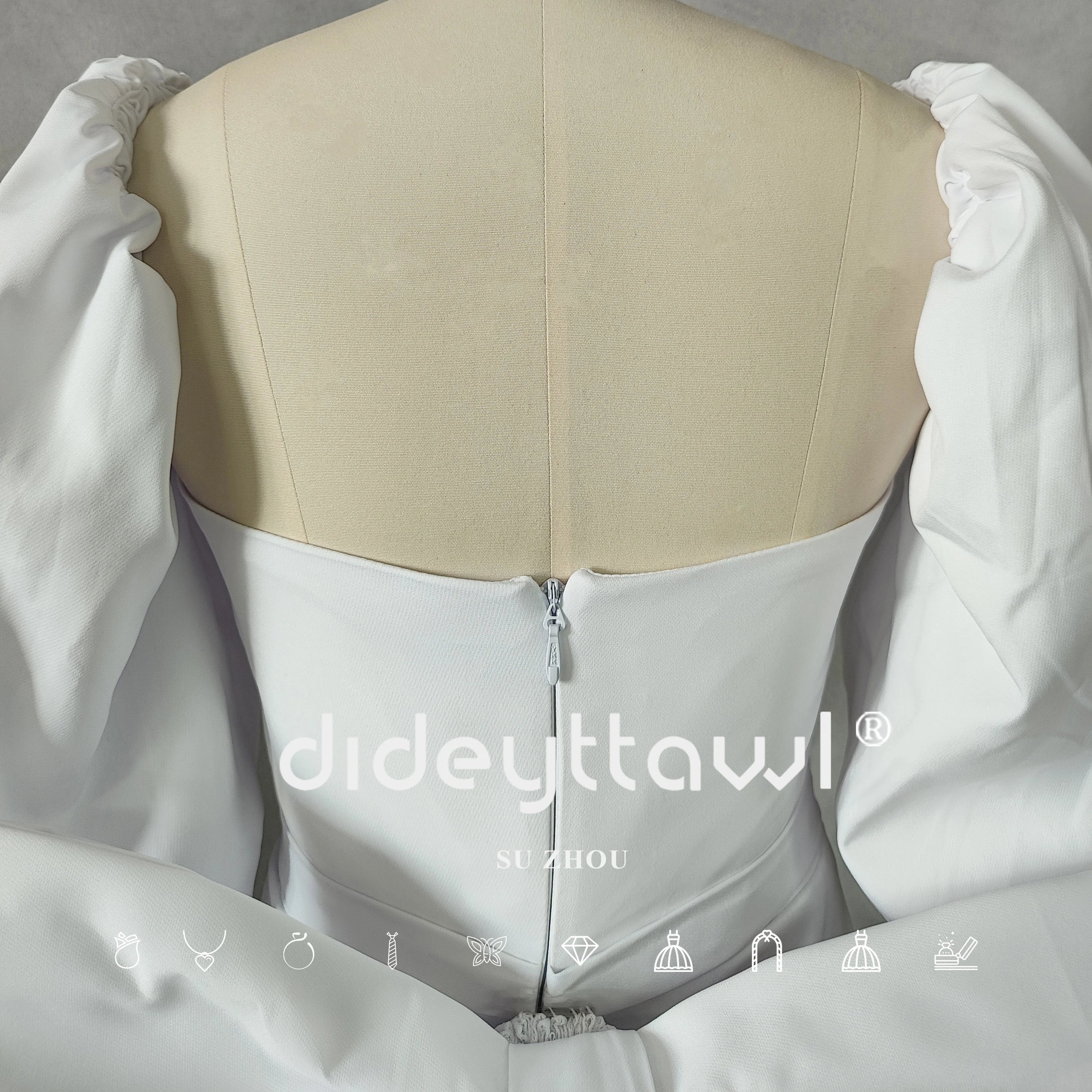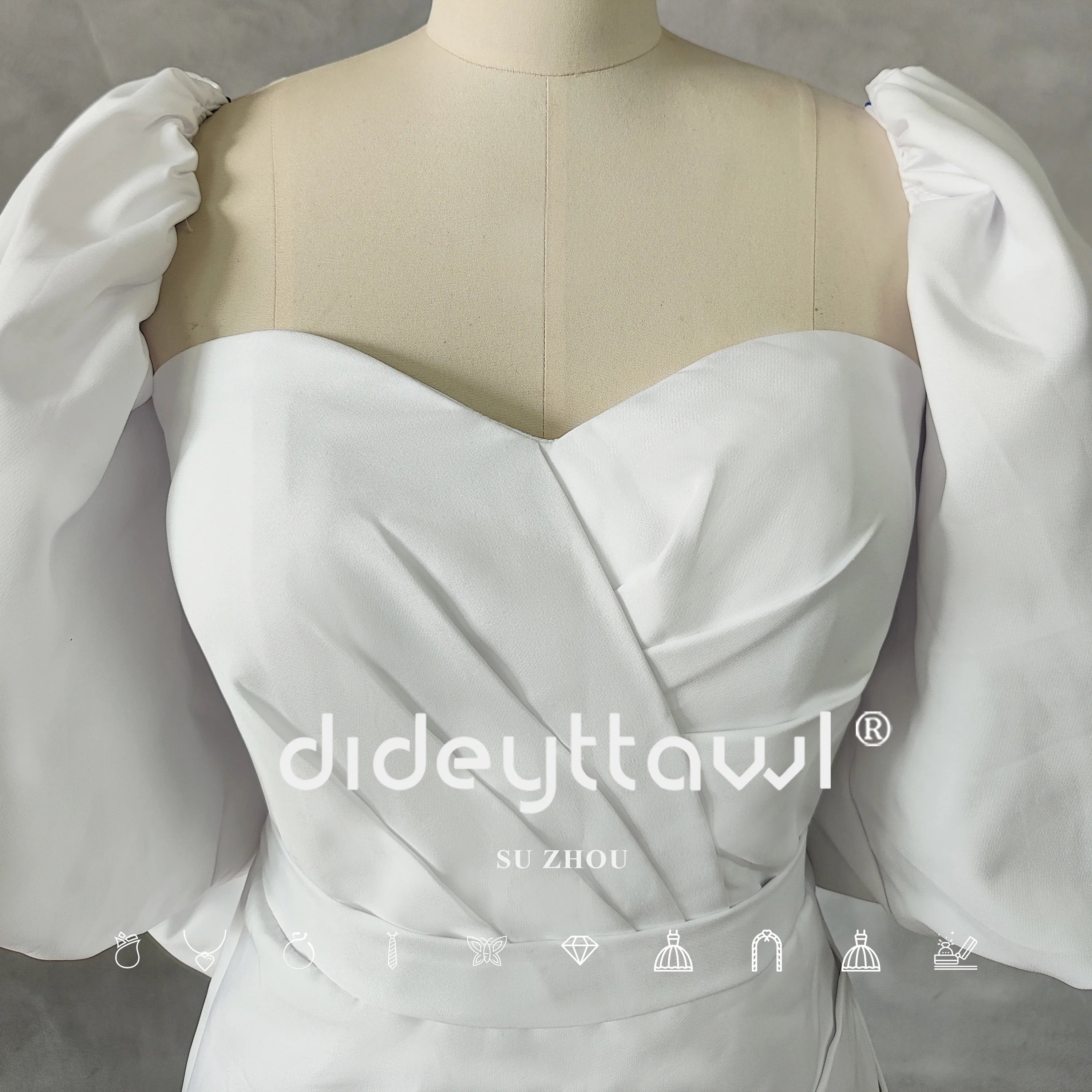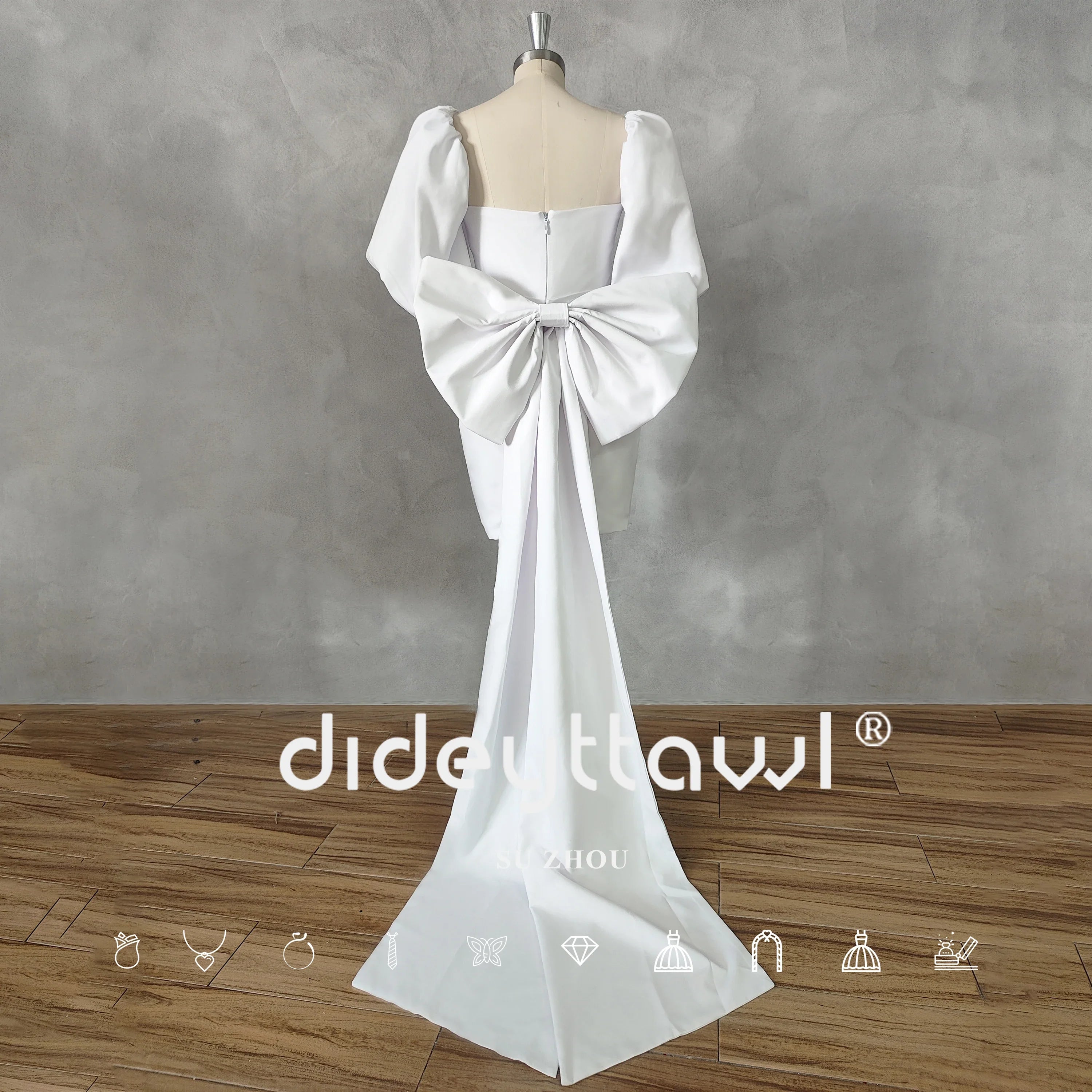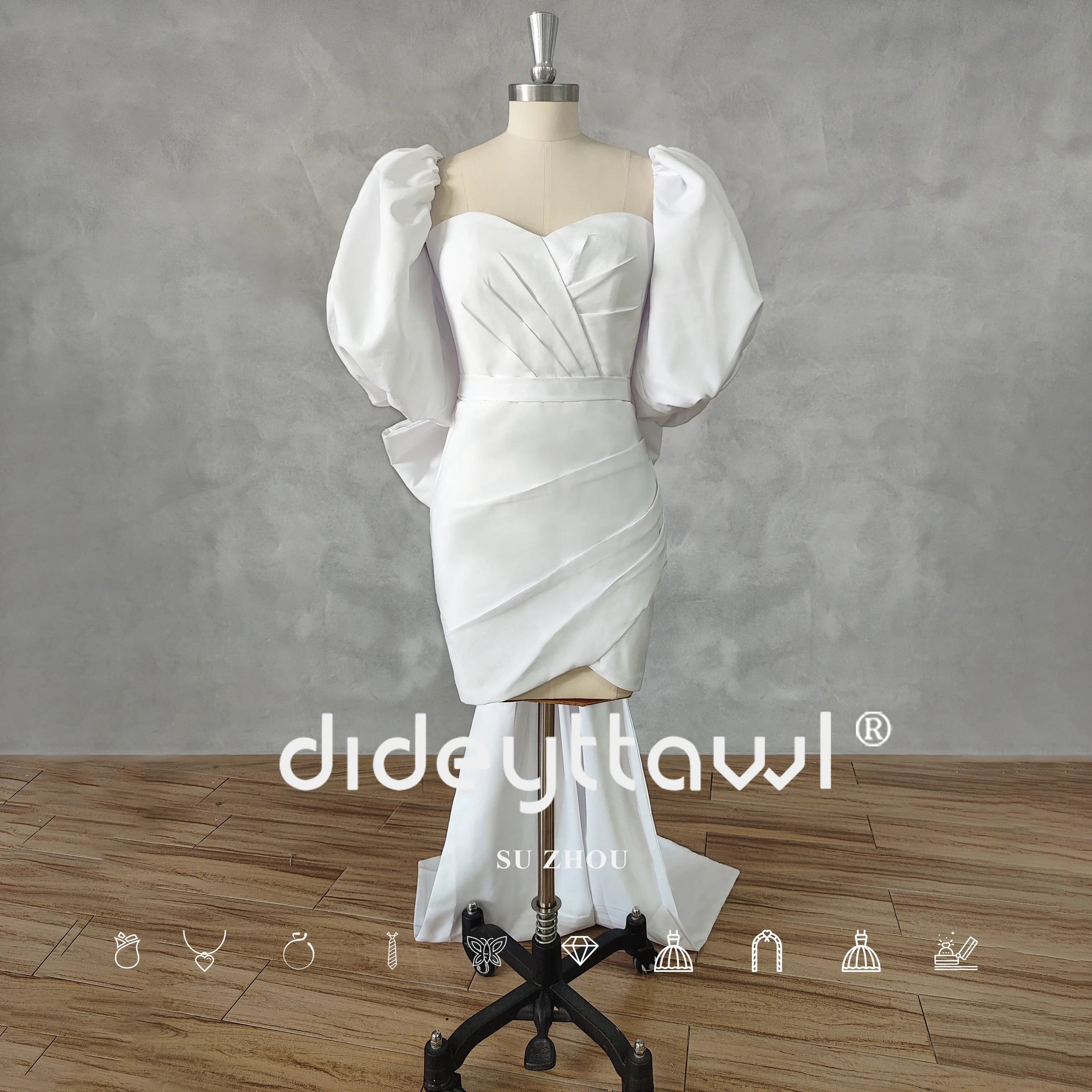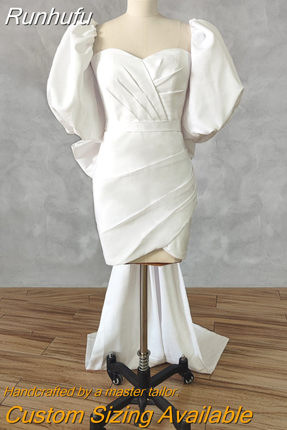 Runhufu Real Picture Sweetheart Puff Sleeves Pleats Short Wedding Dress Bow Sheath Above Knee Mini Bridal Gown Custom Made