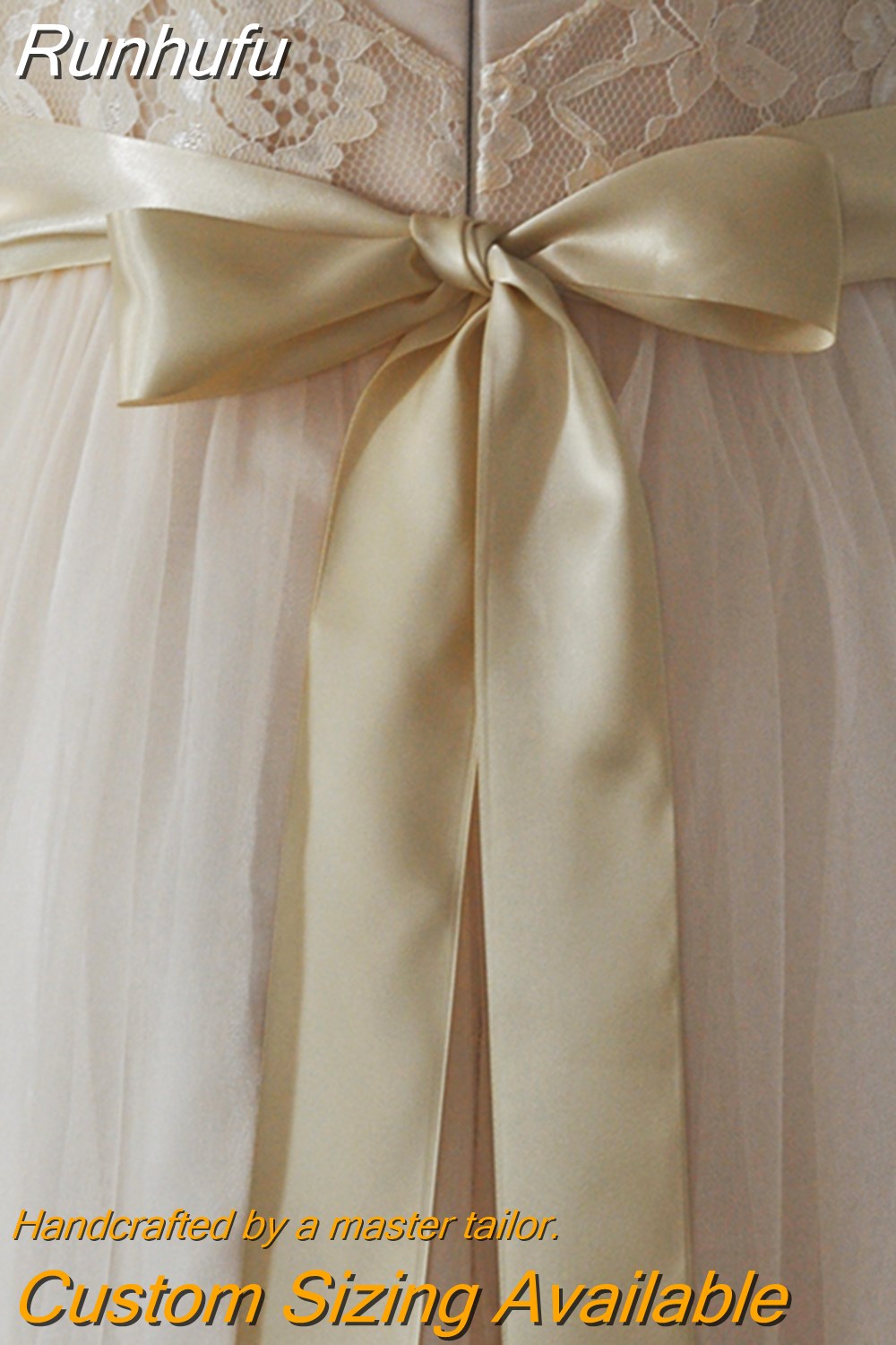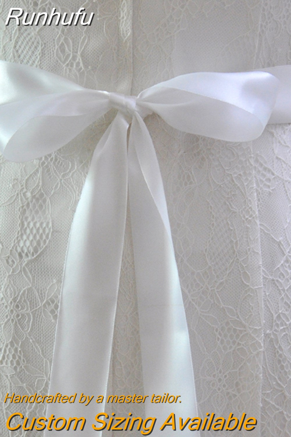 Runhufu NICEB 3/4 Lace Sleeves Wedding Dresses With Pocket Satin Sweep Train свадебное платье Bridal Ball Gowns Simple Customized