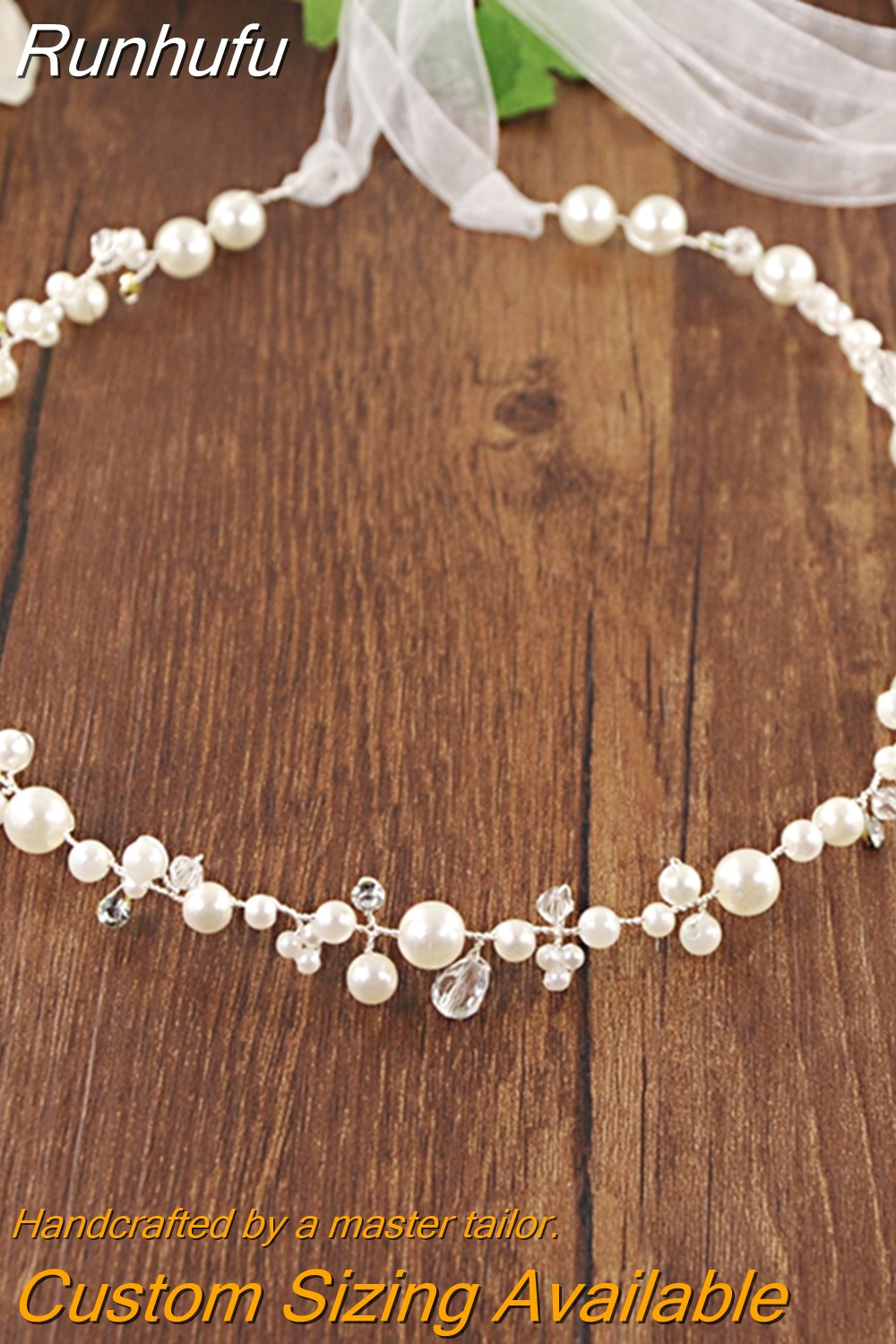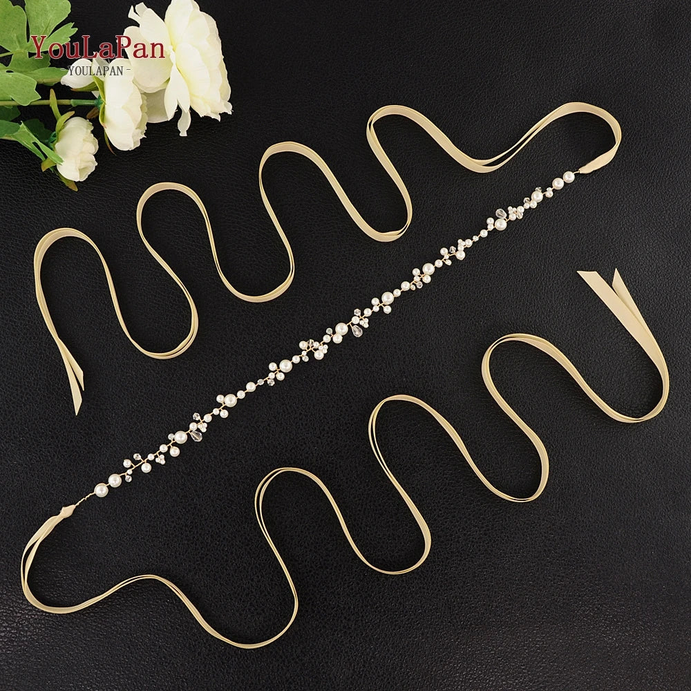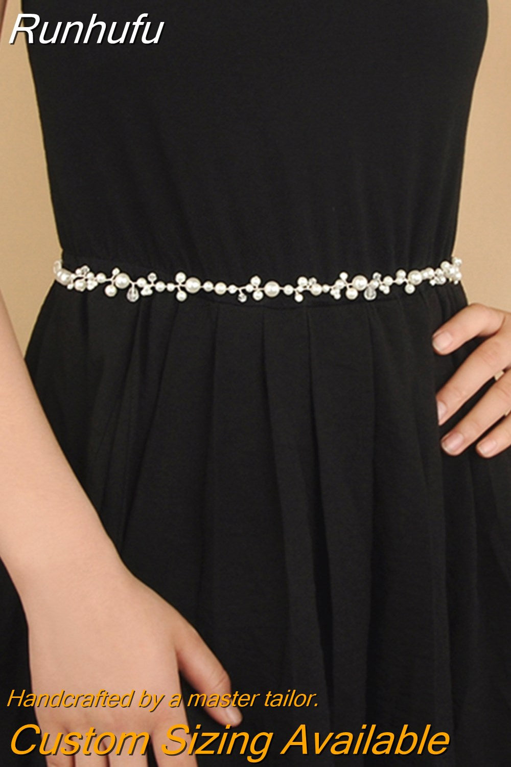 Runhufu SH03 Silver Golden Crystal Bridal Belts Handmade Wedding Thin Belts for Dress Pearl Wedding Sash Belt Women Waistband