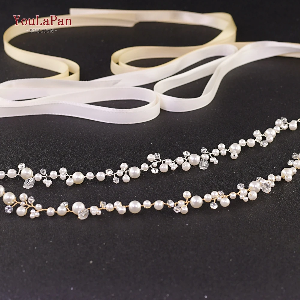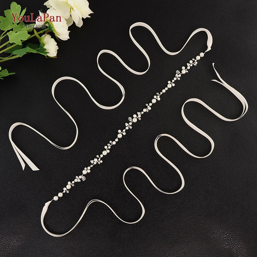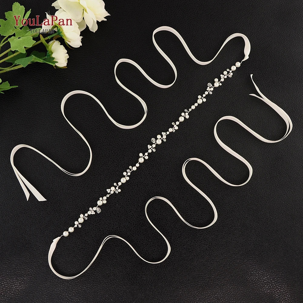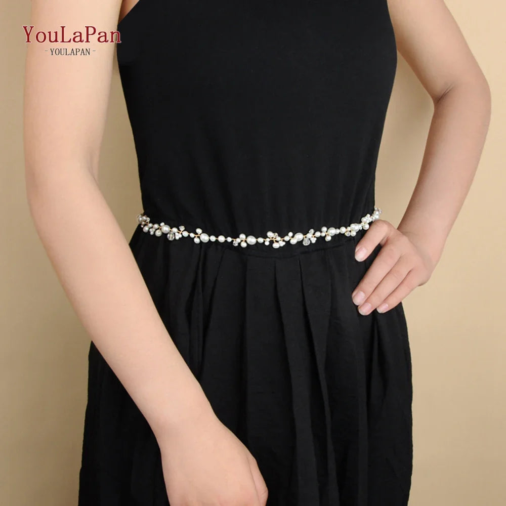 Runhufu SH03 Silver Golden Crystal Bridal Belts Handmade Wedding Thin Belts for Dress Pearl Wedding Sash Belt Women Waistband