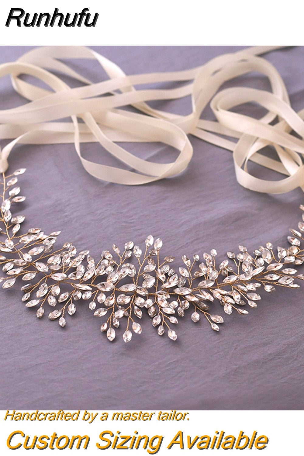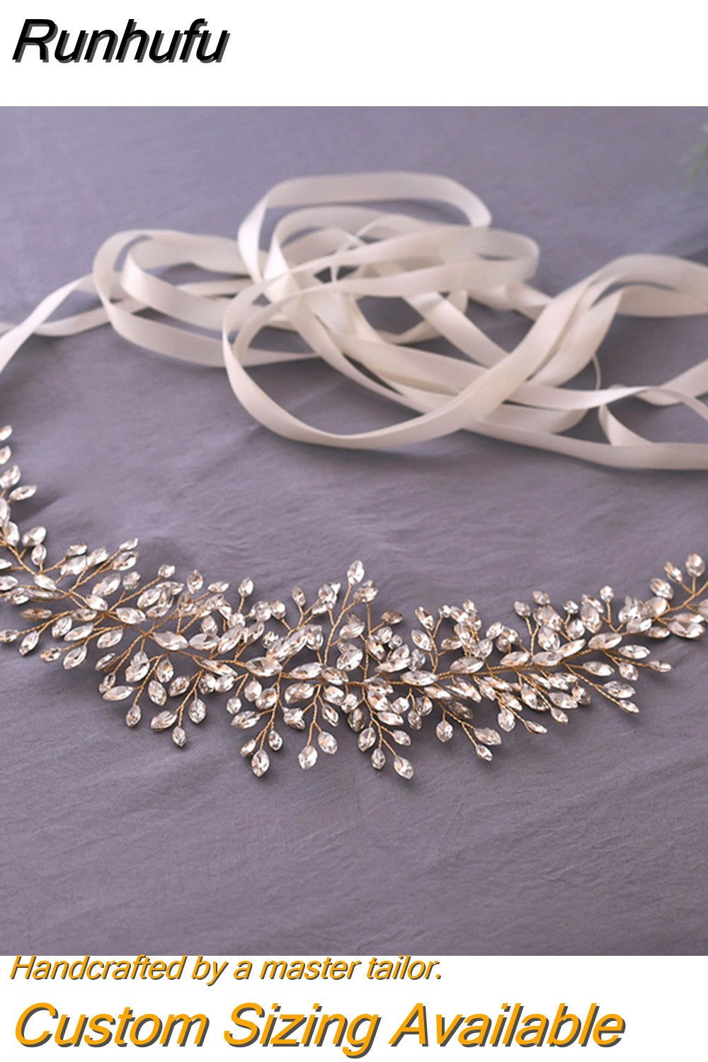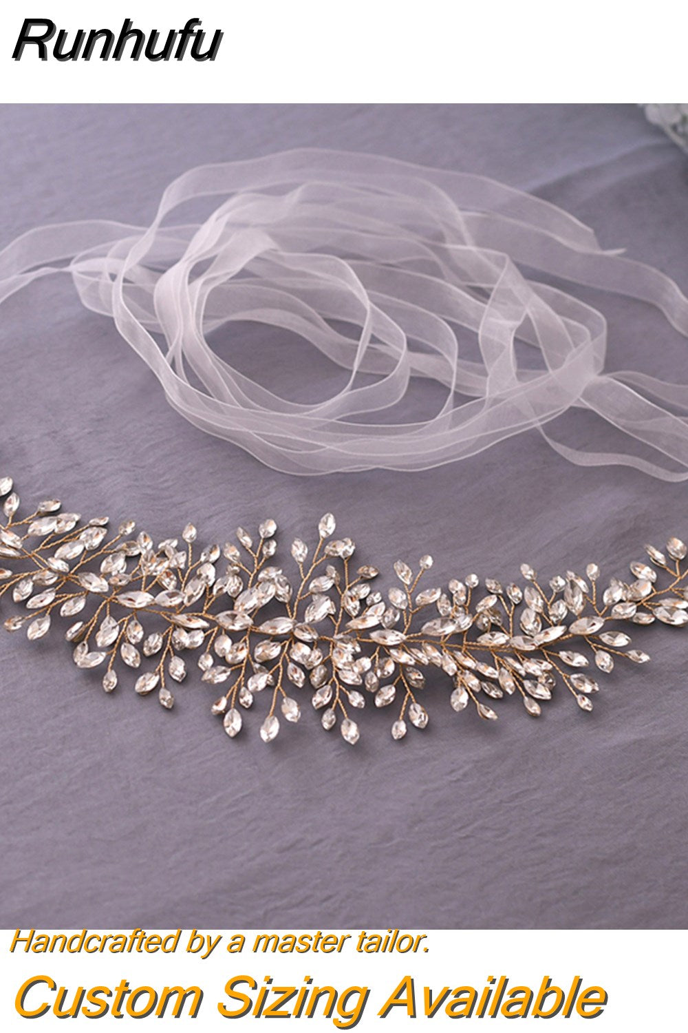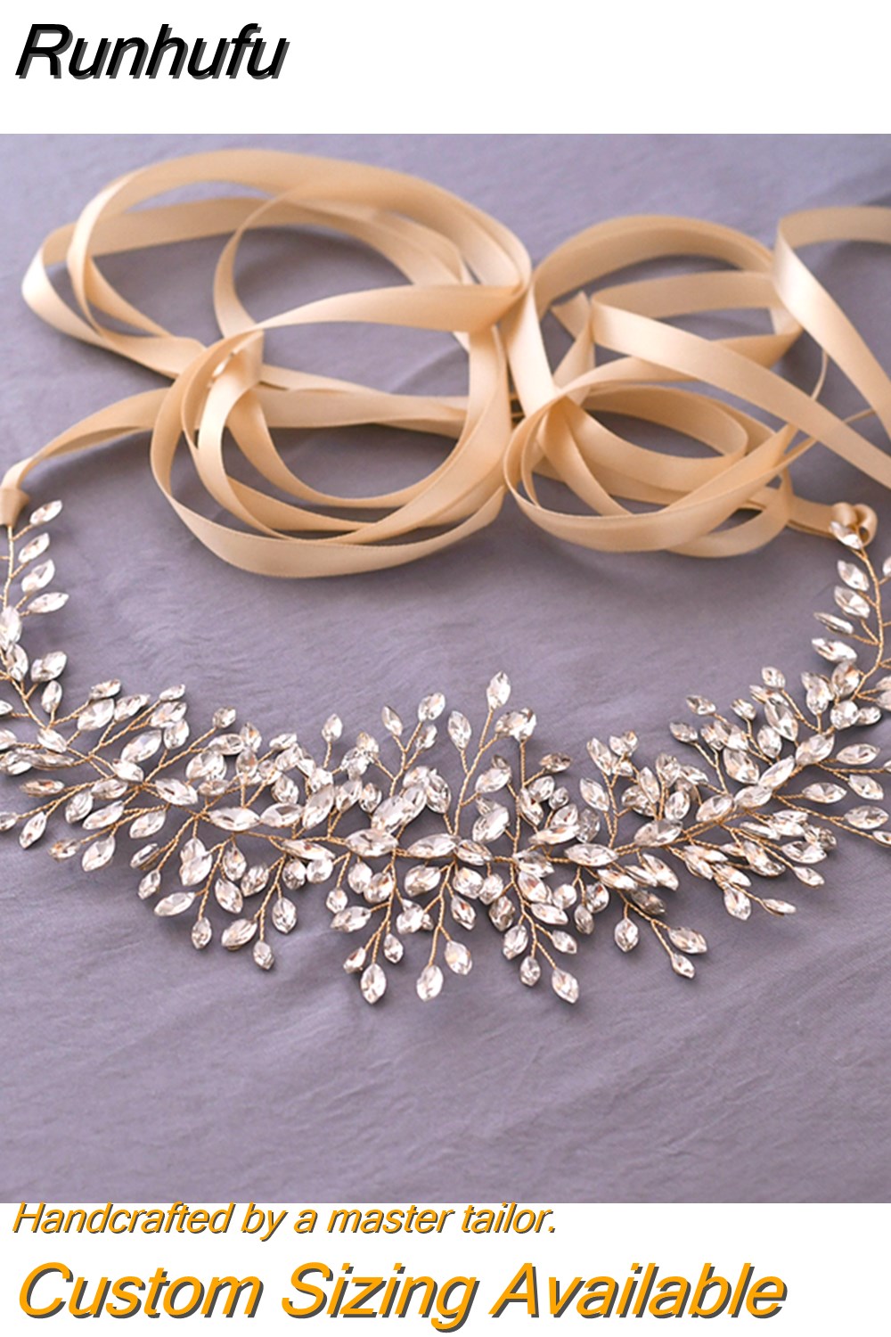 Runhufu SH237-G Golden Bridal Belt with Rhinestone Fashion Bead Belt Thin Sash Belt Western Belts Wedding Applique Sash Belt