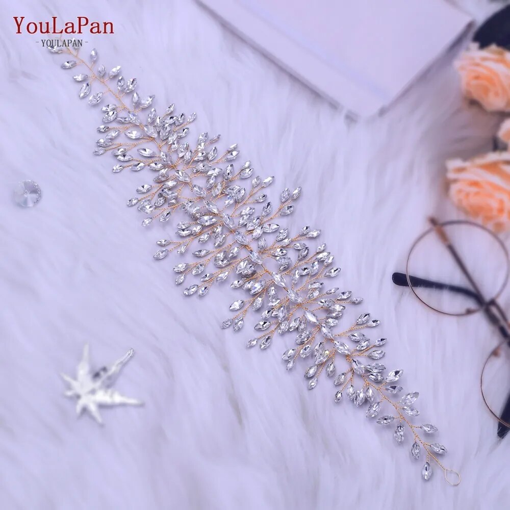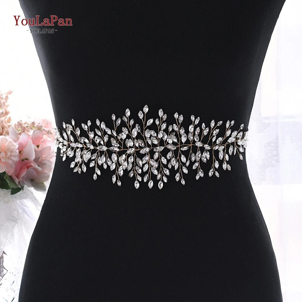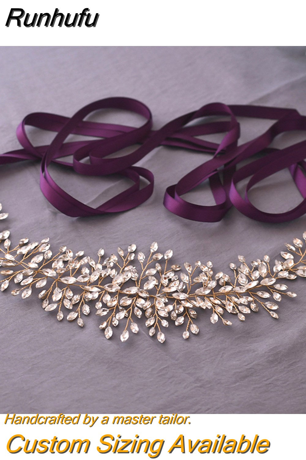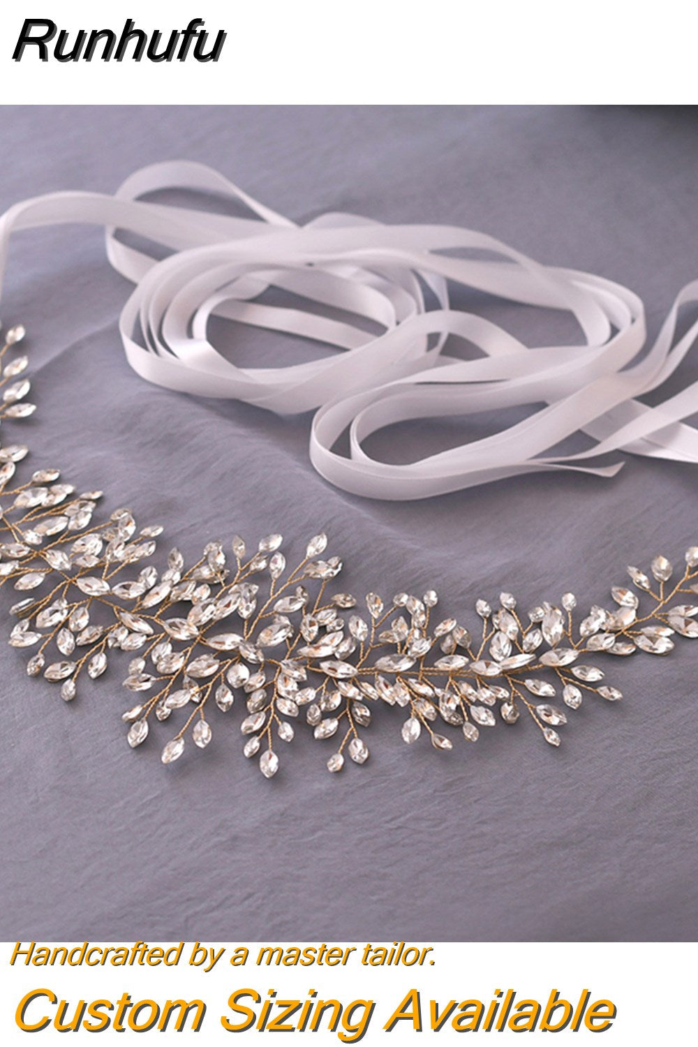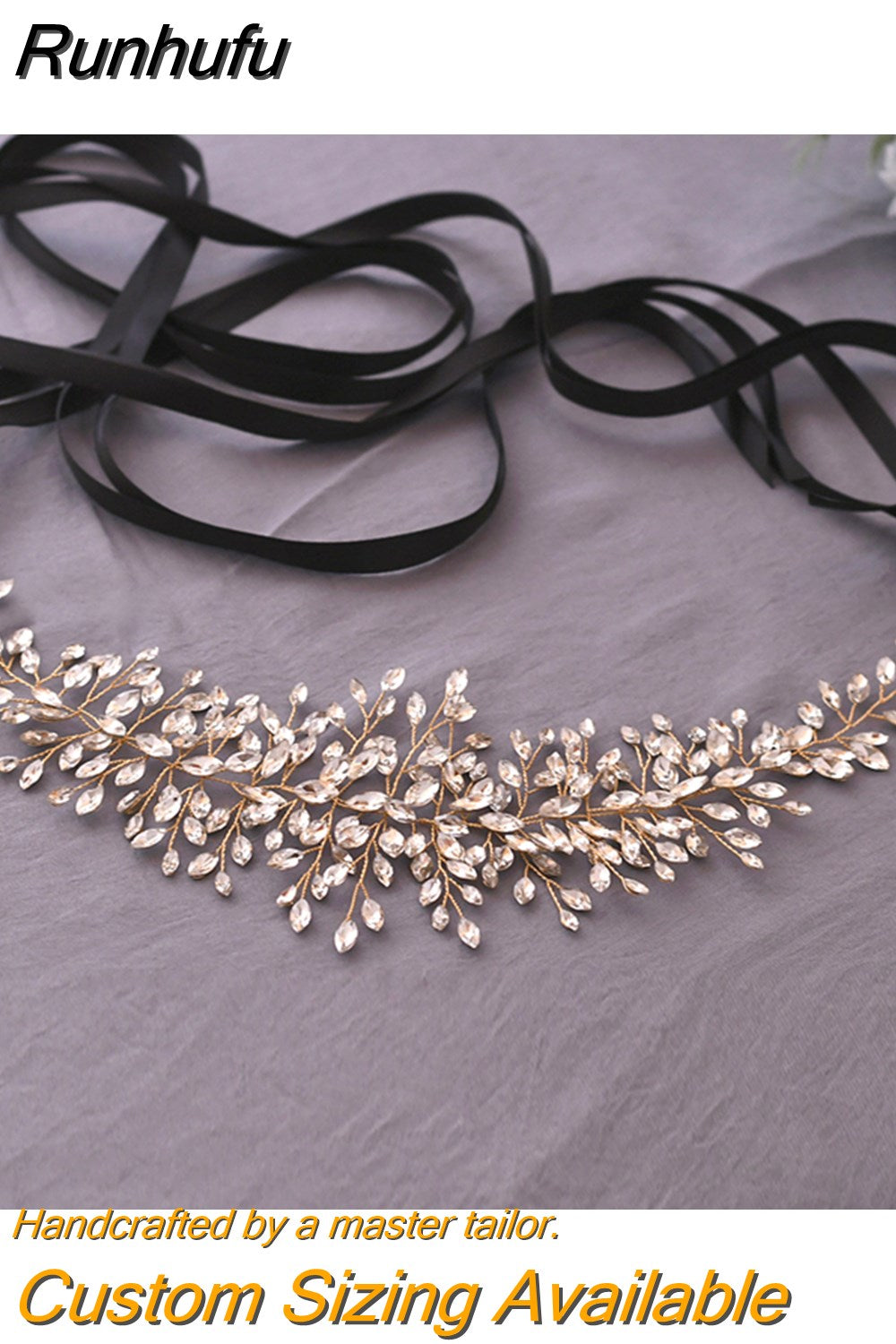 Runhufu SH237-G Golden Bridal Belt with Rhinestone Fashion Bead Belt Thin Sash Belt Western Belts Wedding Applique Sash Belt