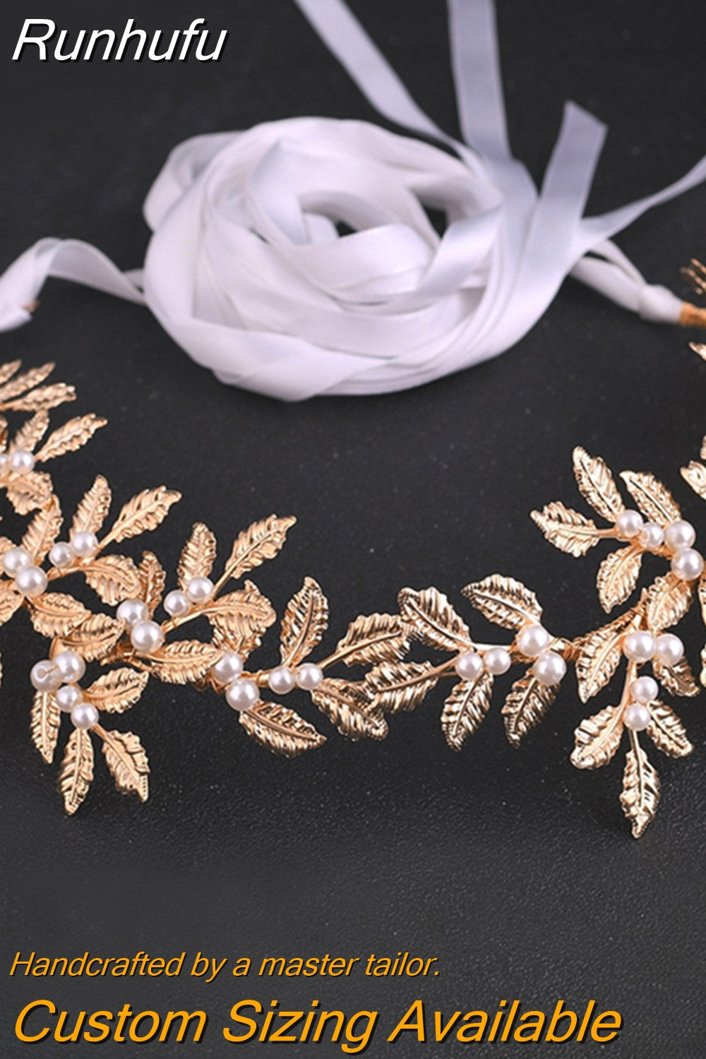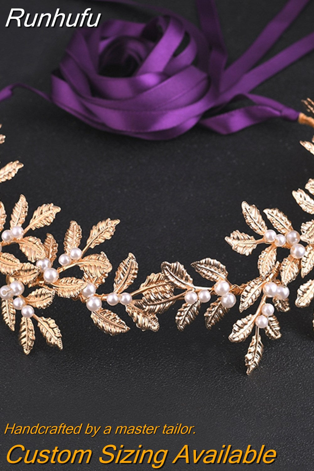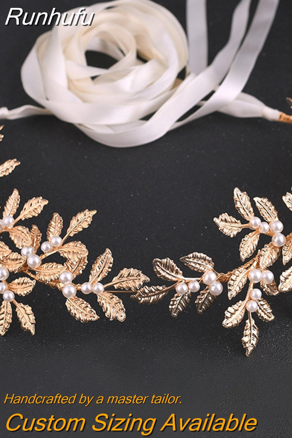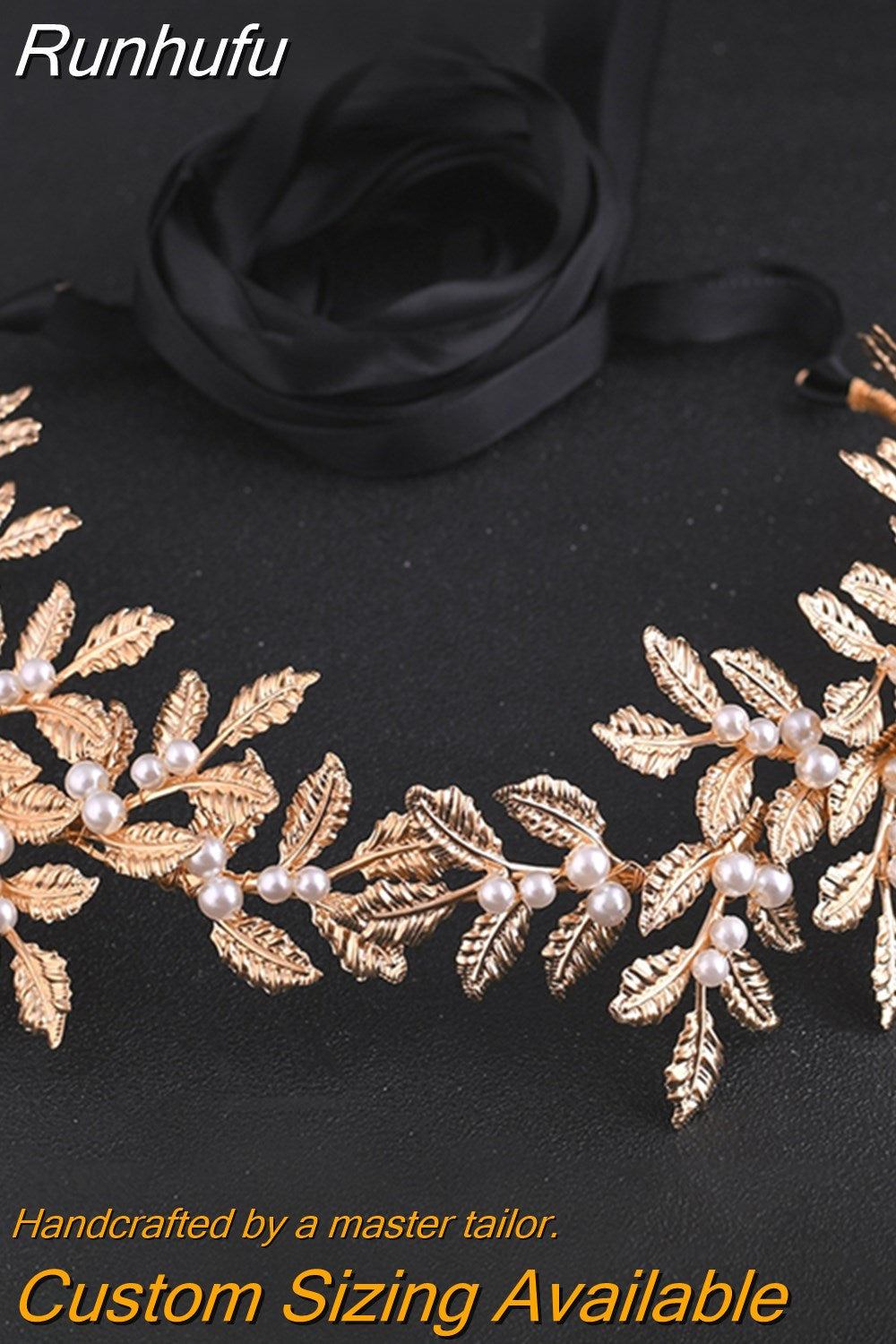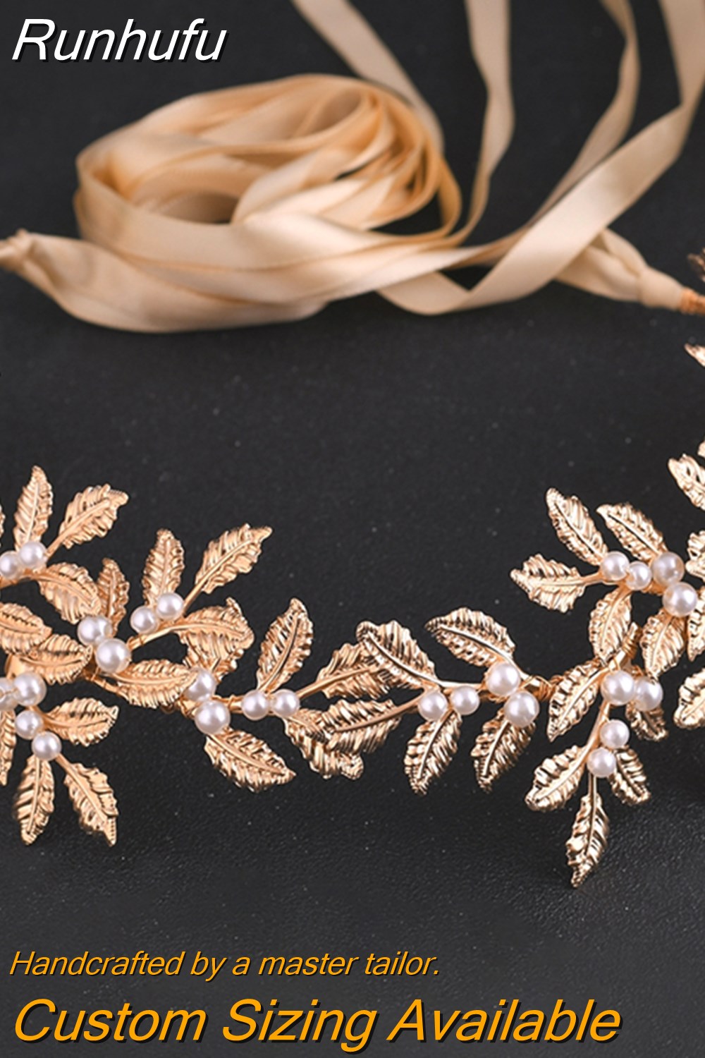 Runhufu SH353 Sparkly Skinny Belt Gold Leaf Wedding Belt with Pearls Womens Formal Belts Wedding Waist Belt Jeweled Dress Belt