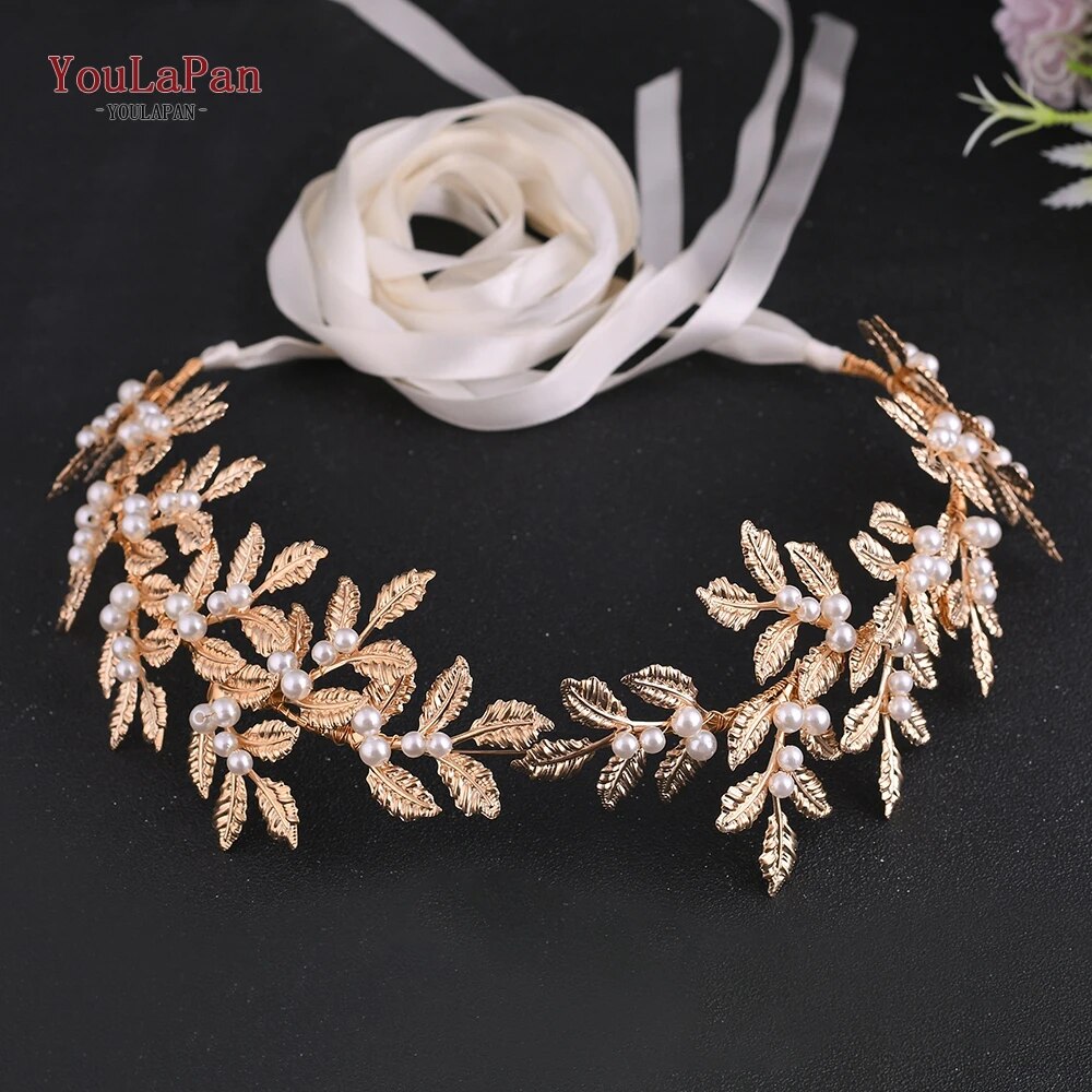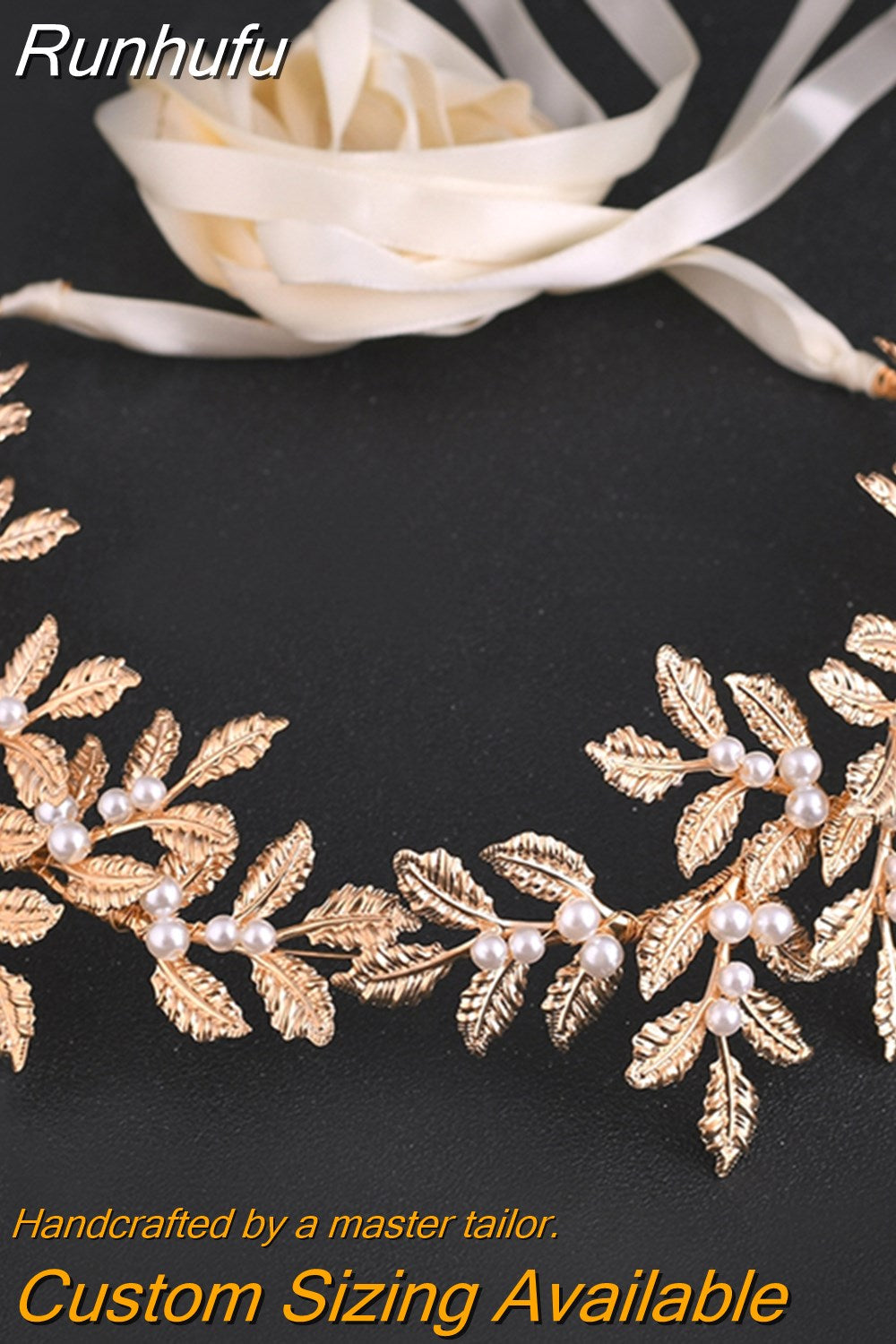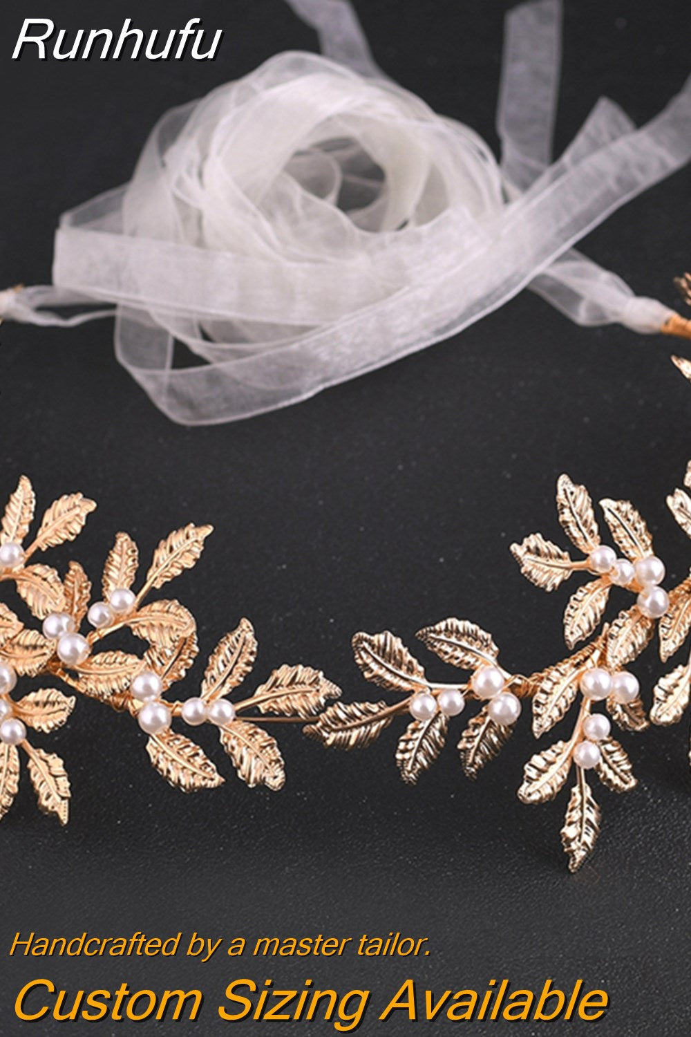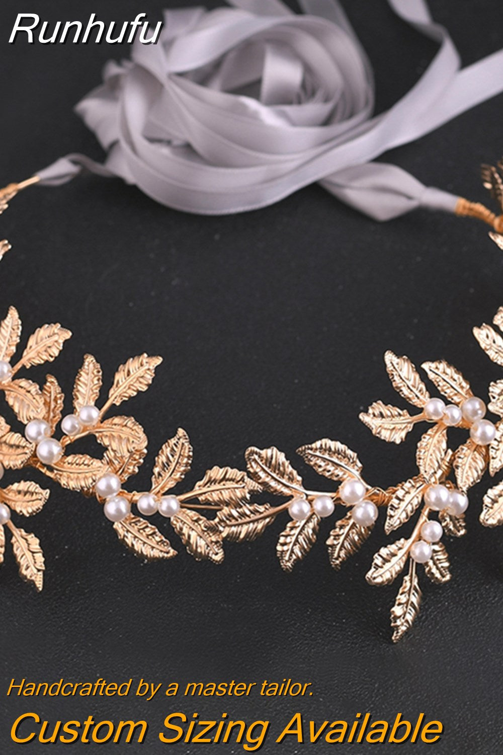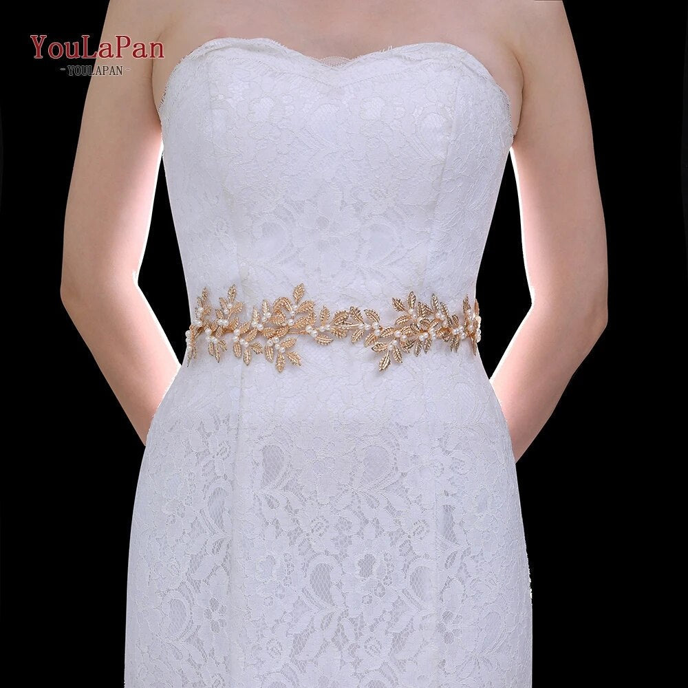 Runhufu SH353 Sparkly Skinny Belt Gold Leaf Wedding Belt with Pearls Womens Formal Belts Wedding Waist Belt Jeweled Dress Belt