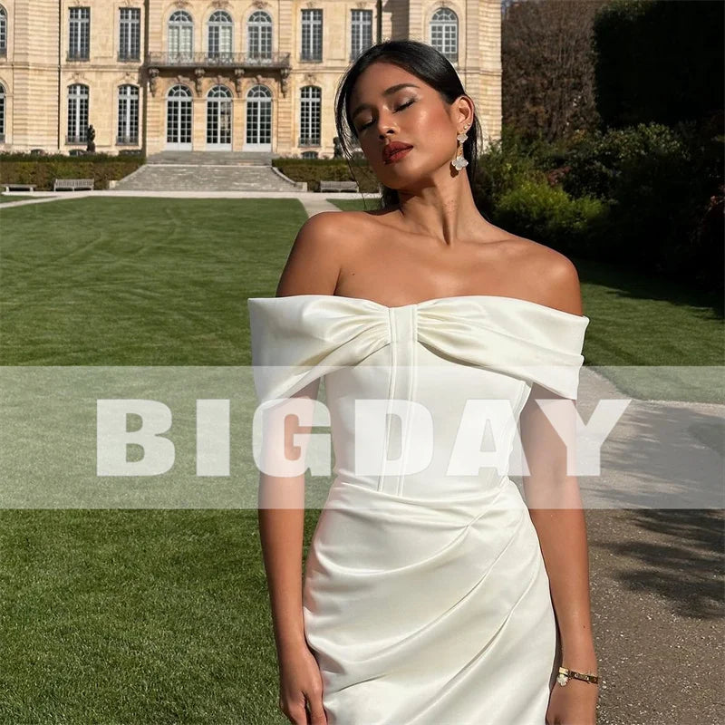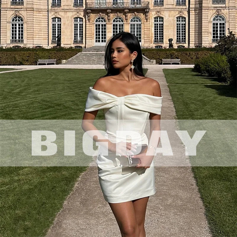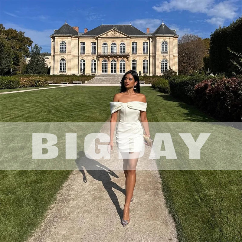 Runhufu Short Wedding Dress Women 2024 Open Back Off The Shoulder Strapless Pleat Satin Bridal Gown Above Knee Vestido De Noiva