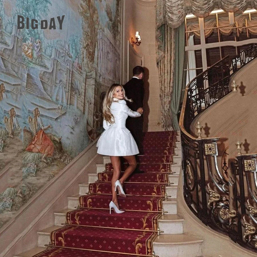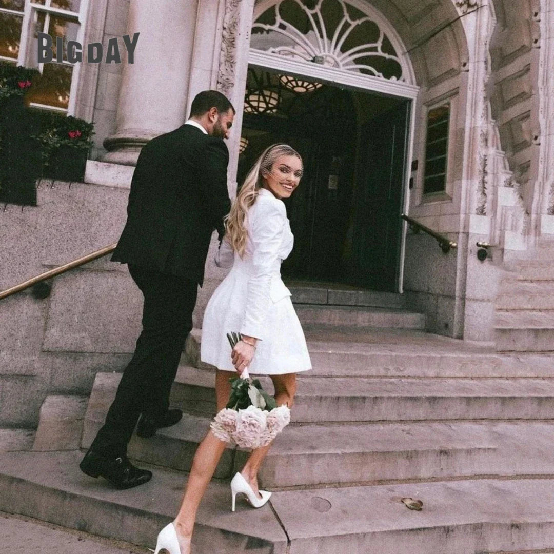Runhufu Short Wedding Dresses For Woman 2024 A-Line V-Neck Full Sleeves Above Knee Bride Gowns Satin Vestido de Novia Custom Made