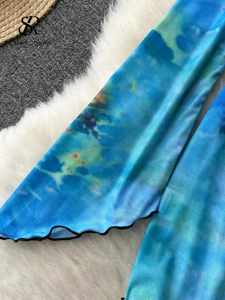 Runhufu Summer Hollow Out Beach Dress Women Long Sleeves Bow Slim Bodycon Sundress Hliday 2024 Transparent Sexy Short Dress