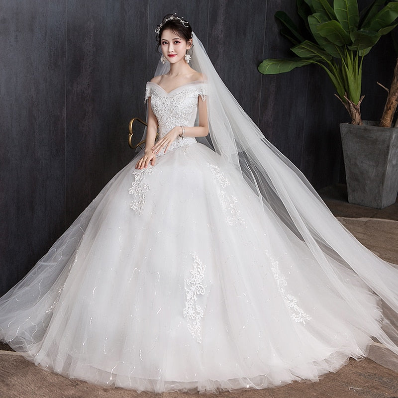 Runhufu Ball Gown Wedding Dress 2023 vestido de noiva Off the Shoulder robe de mariee Lace Appliques Wedding Bridal Gown