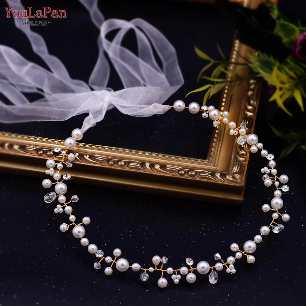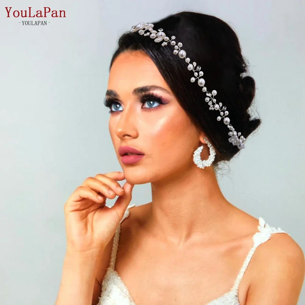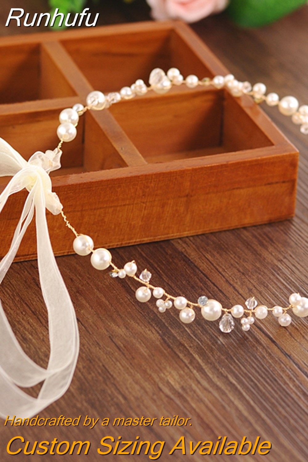 Runhufu Trendy Pearl Hair Jewelry Crystal Woman Headpiece Wedding Hair Accessories Headwear Bridal Headdress Bridal Tiara HP03